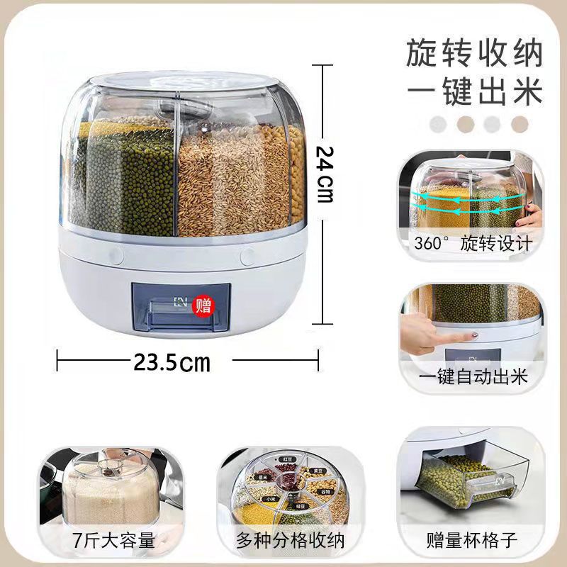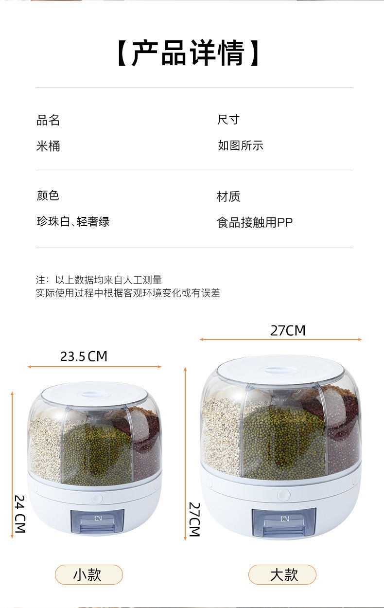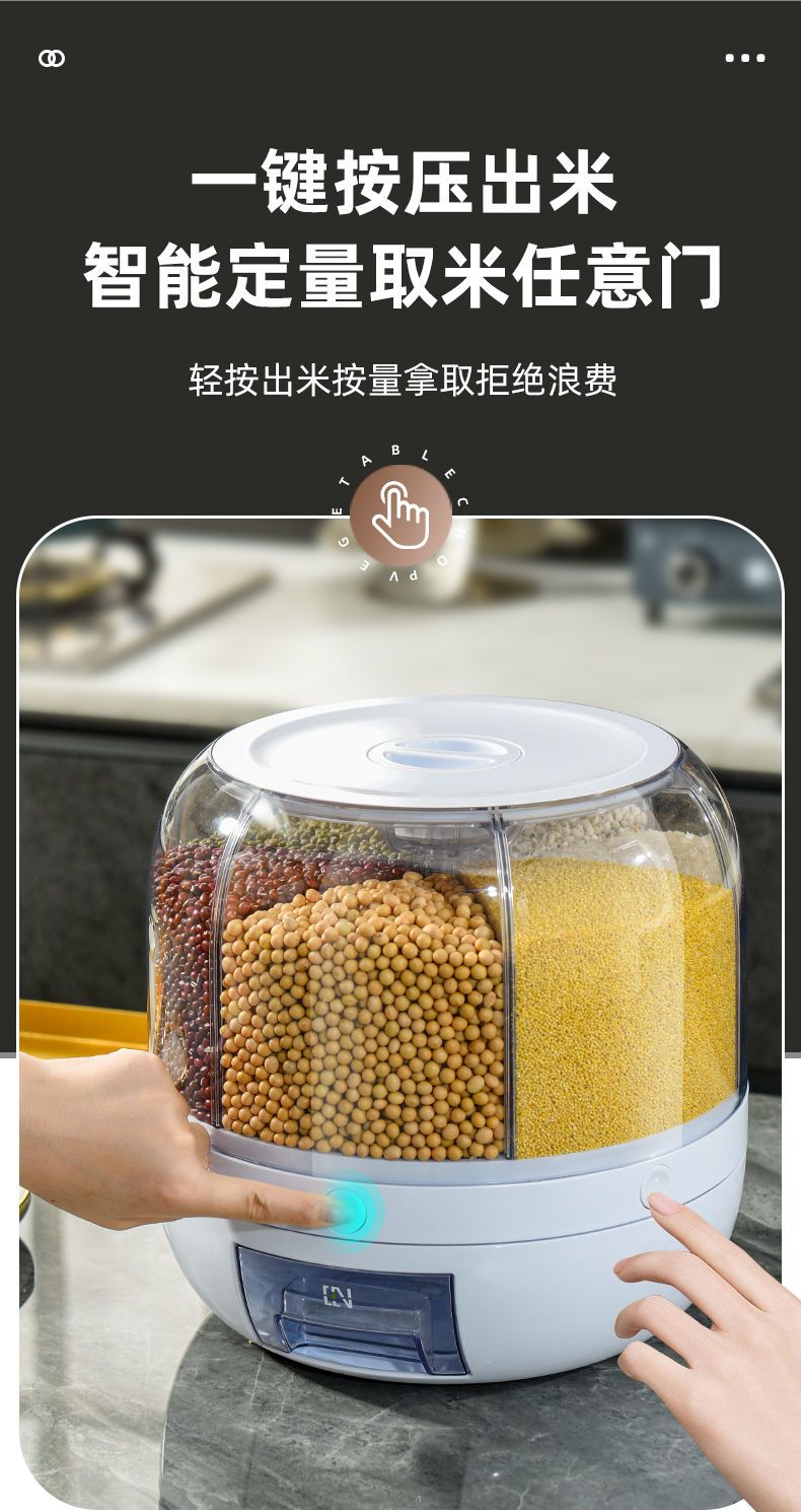 旋转米桶密封防虫防潮分类收纳盒五谷杂粮透明加厚按压出米储米箱