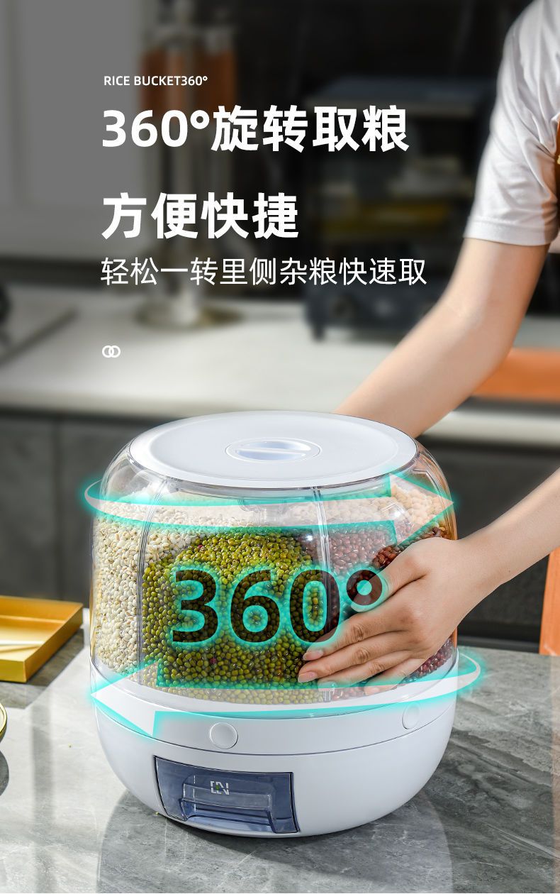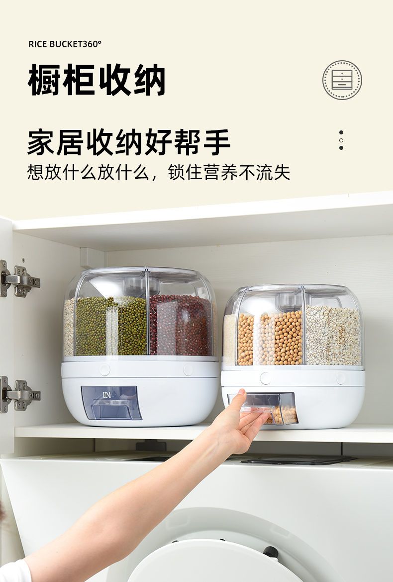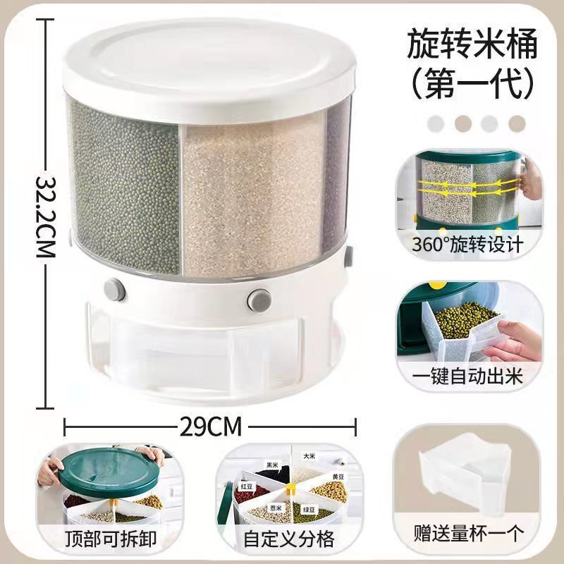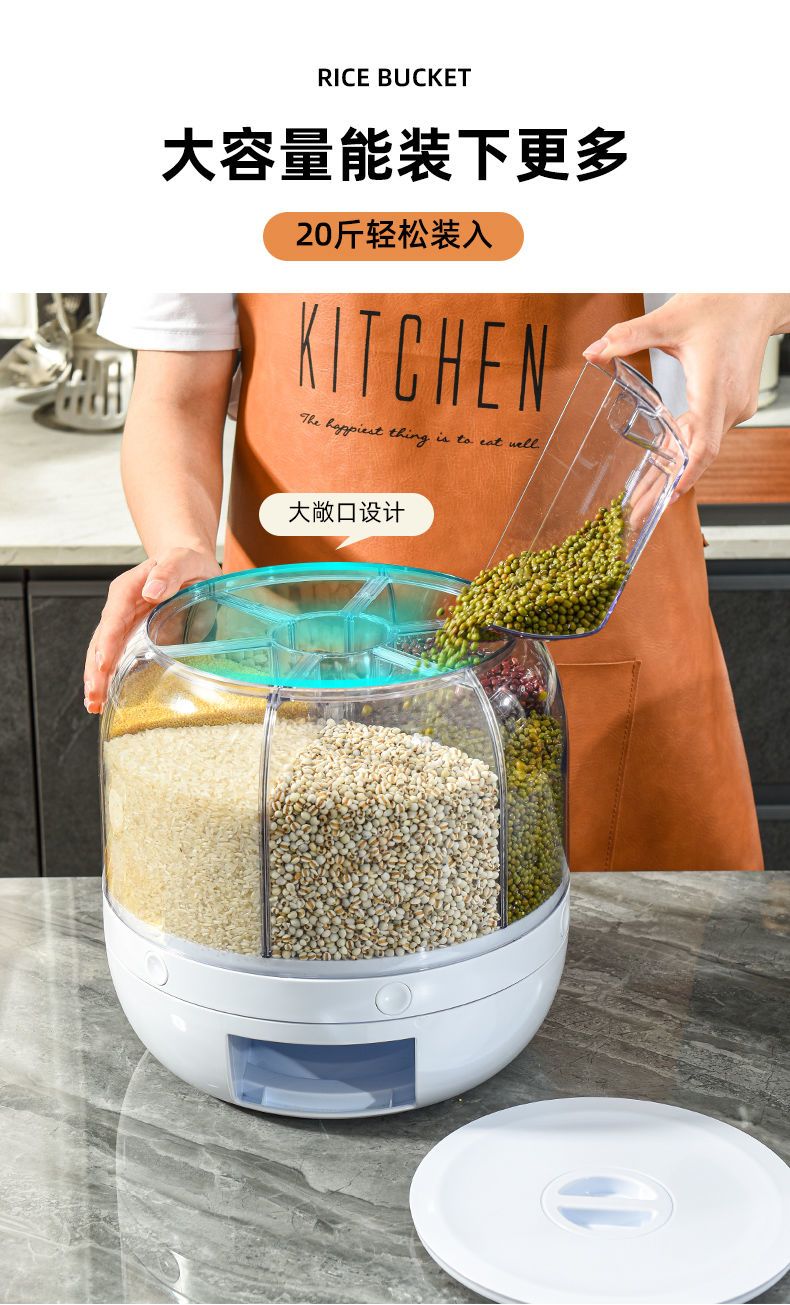 旋转米桶密封防虫防潮分类收纳盒五谷杂粮透明加厚按压出米储米箱