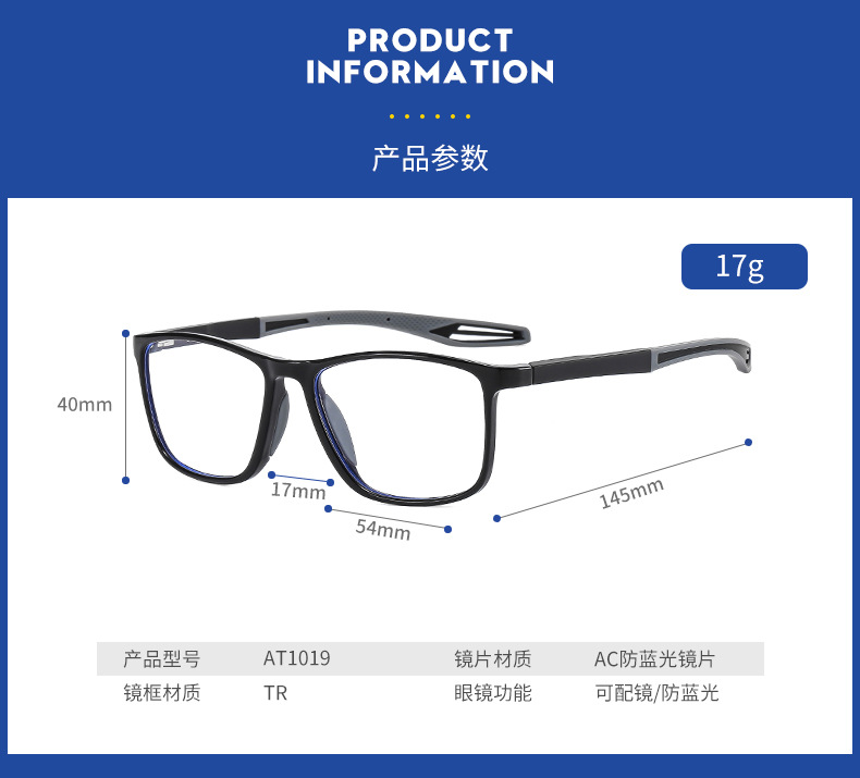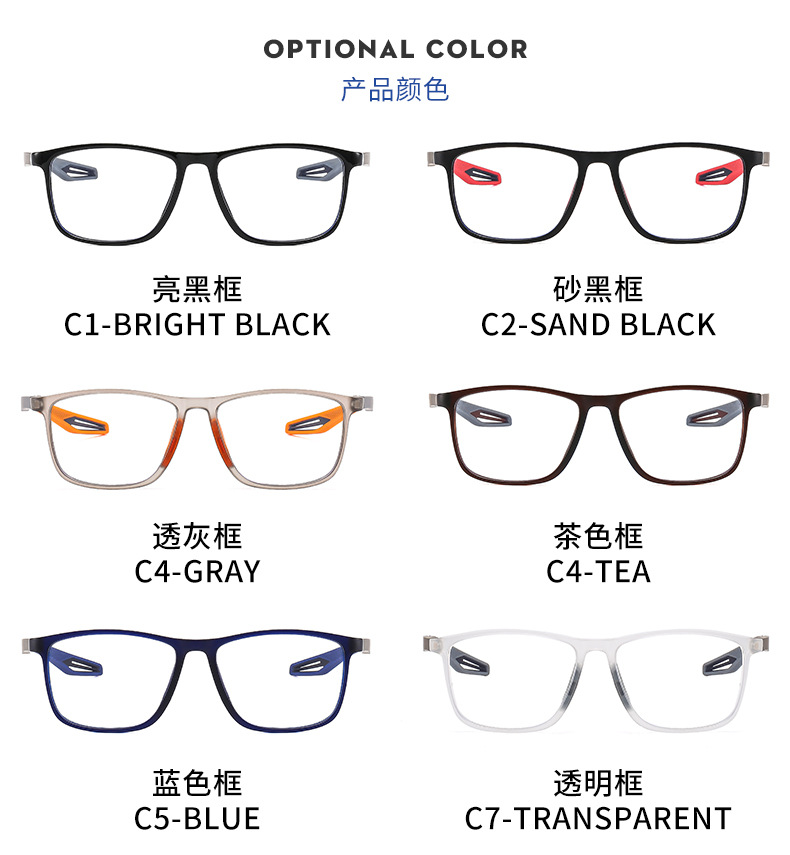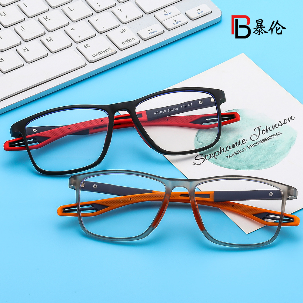 1019潮流硅胶TR90轻盈运动风眼镜框 时尚跨境男女款防蓝光平光镜