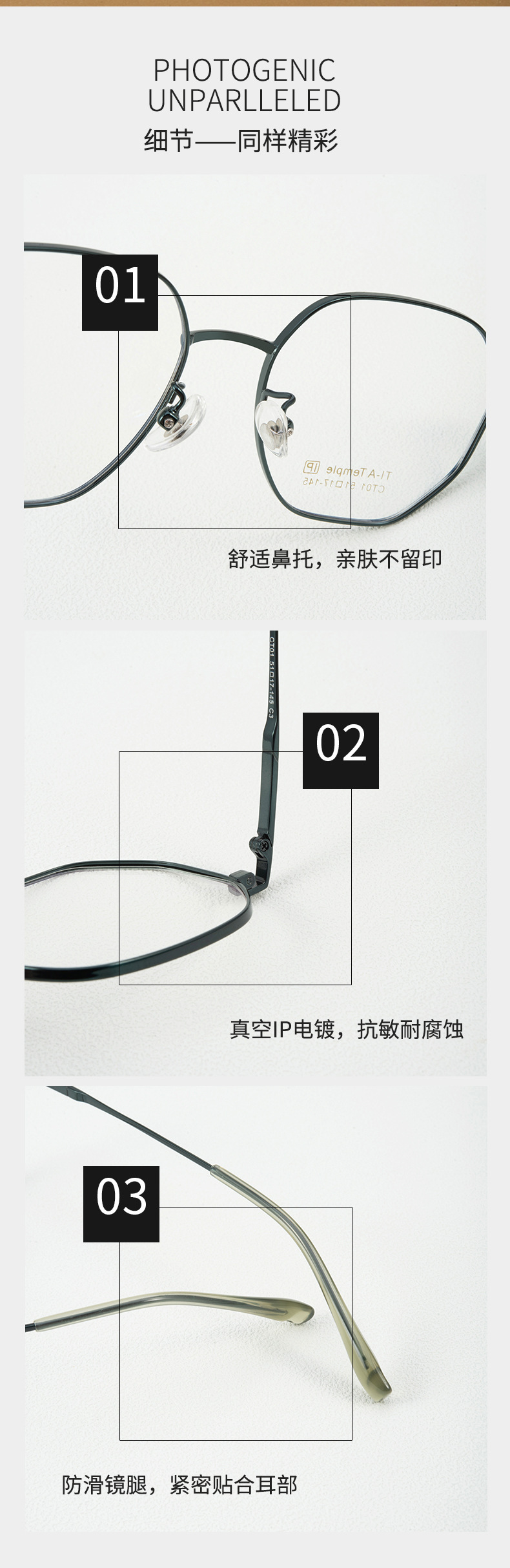 百世芬新款多边形钛架复古网红潮流近视镜架批发丹阳眼镜框玫瑰金