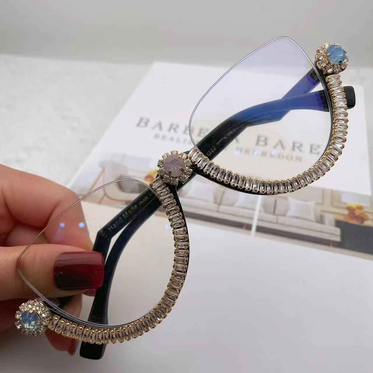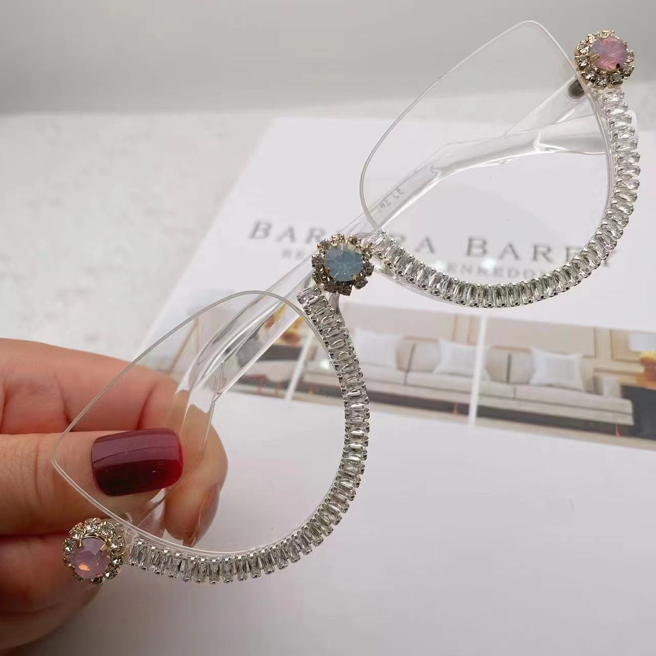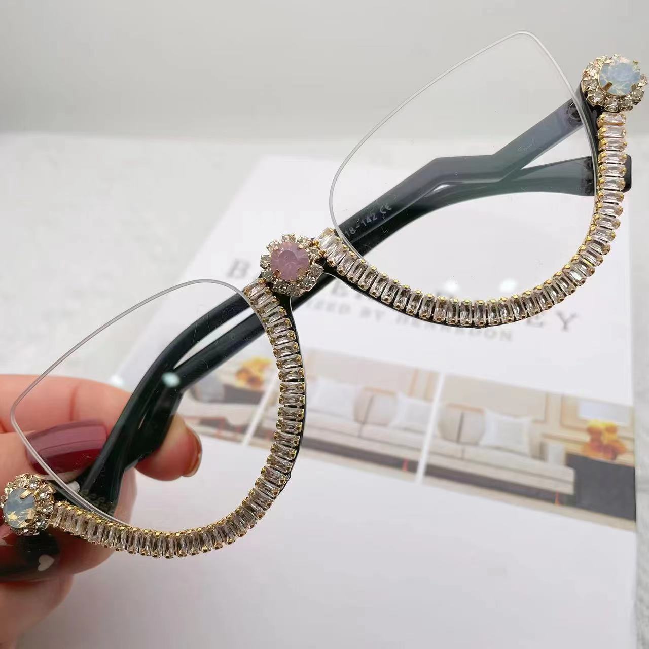 跨境专供2023热卖半框猫眼镶钻防蓝光平光镜欧美爆款潮流设计搭配