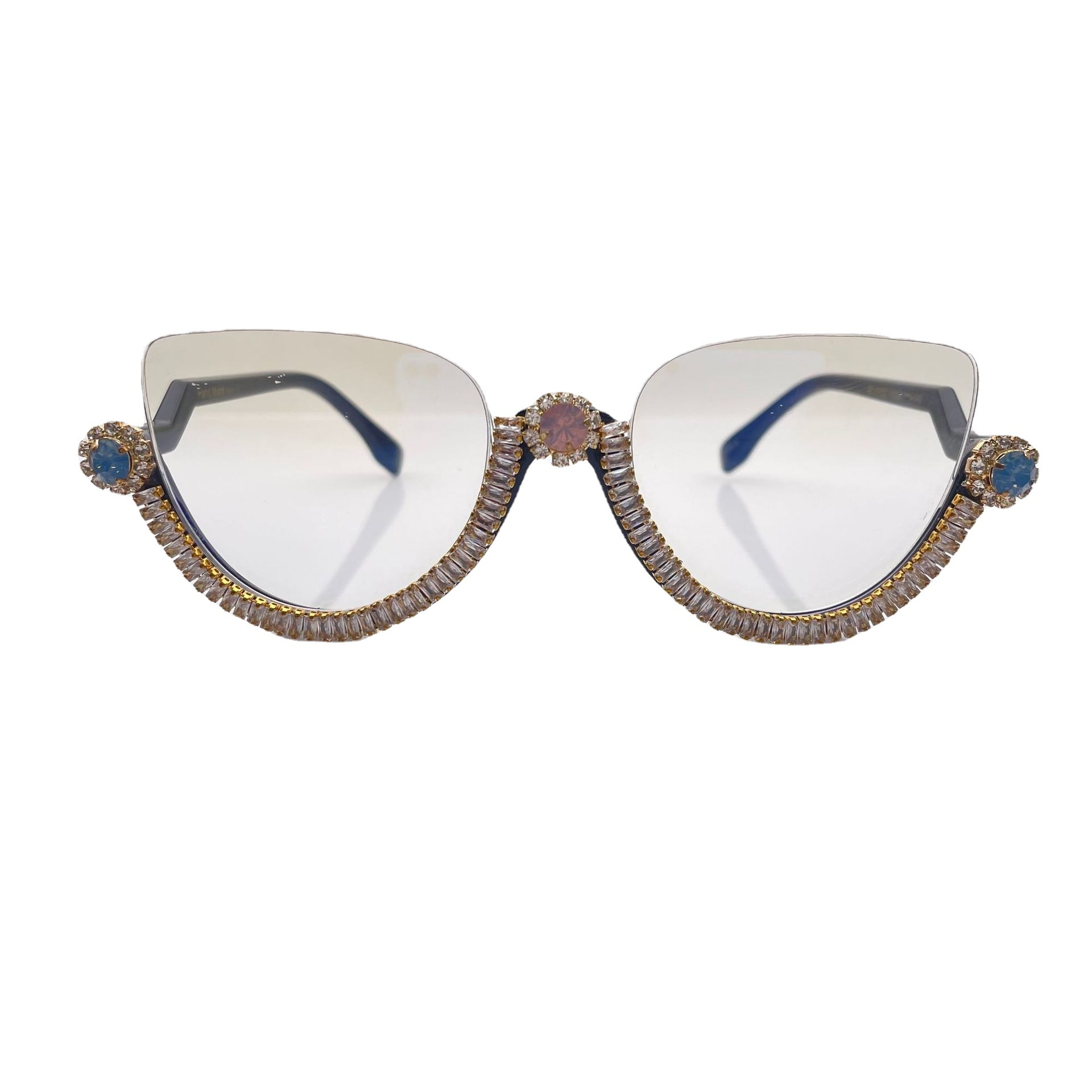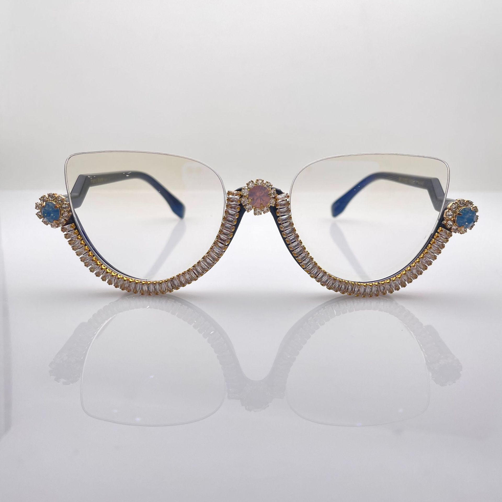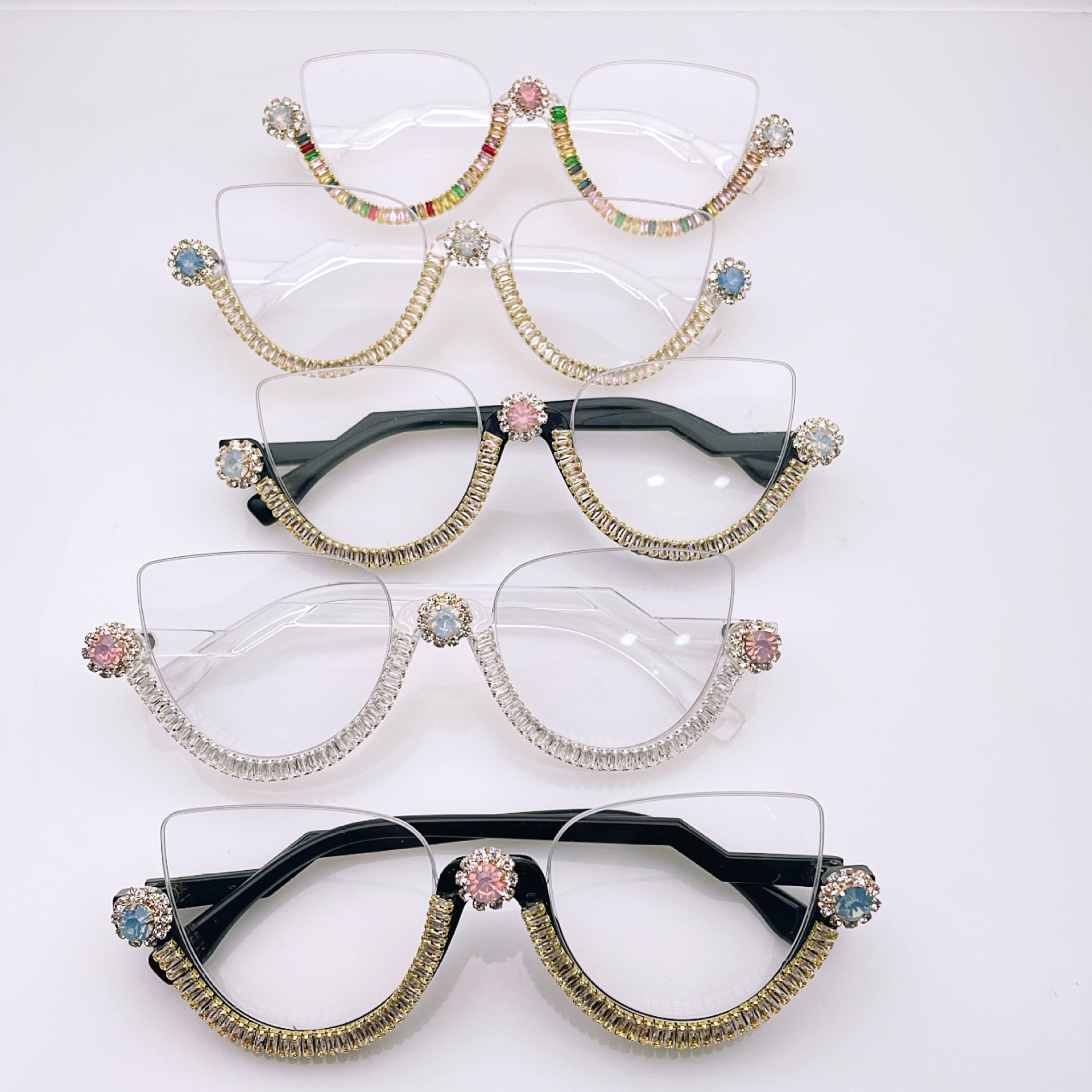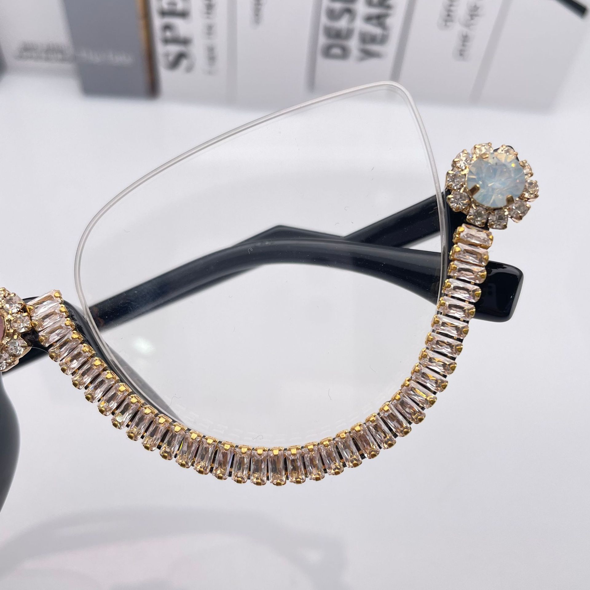 跨境专供2023热卖半框猫眼镶钻防蓝光平光镜欧美爆款潮流设计搭配