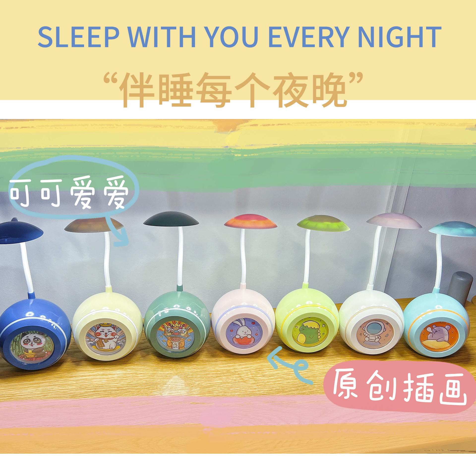 新品卡通太空舱削笔刀台灯 USB充电学生书桌小夜灯 国潮插画LED台