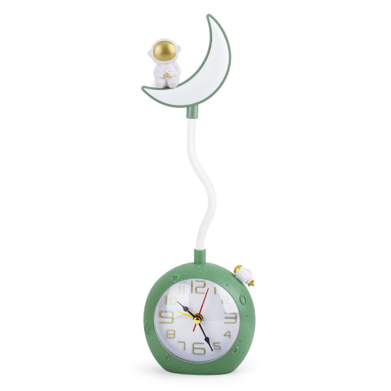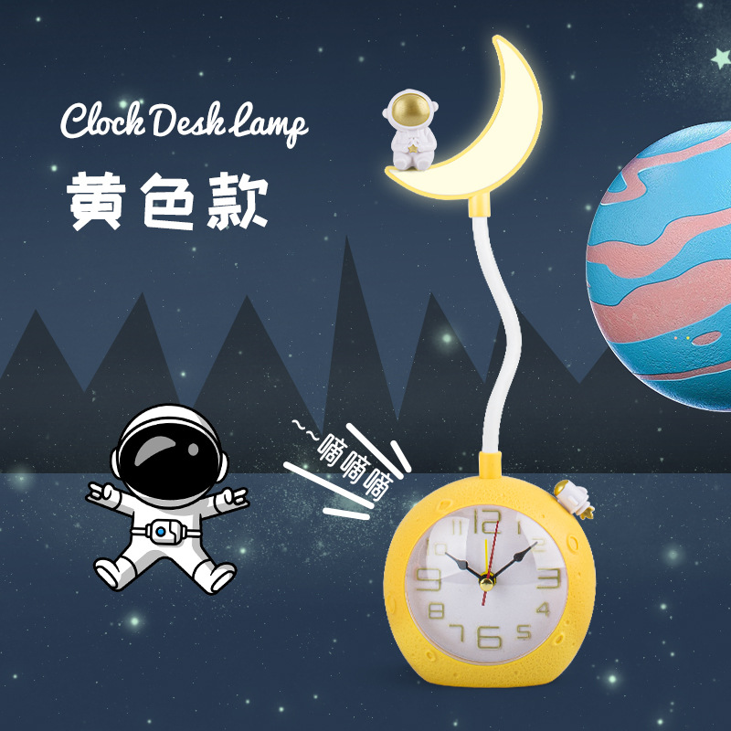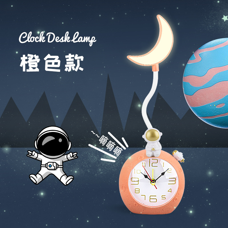 新品宇航员台灯带闹钟 学生宿舍床头闹钟 迷你台式LED充电小夜灯