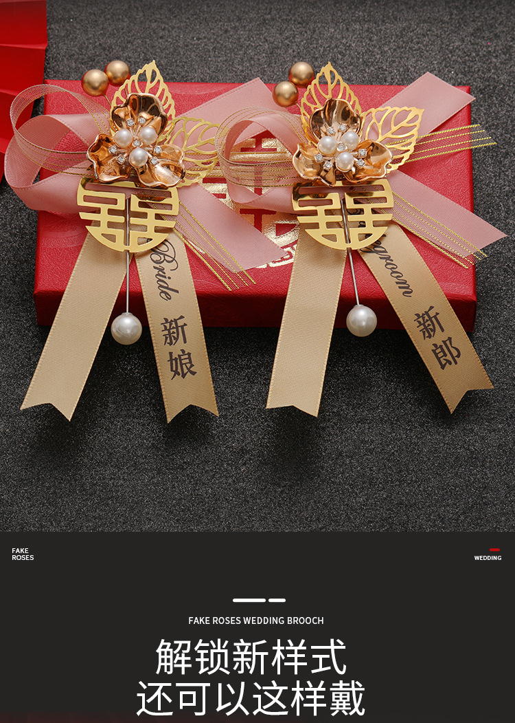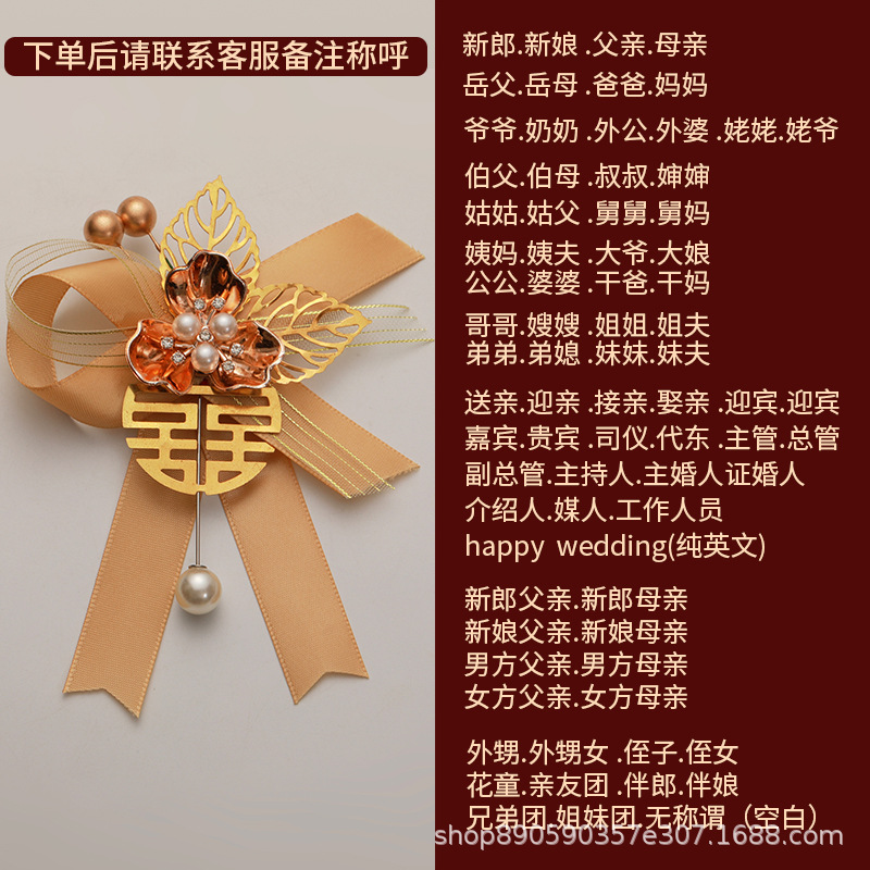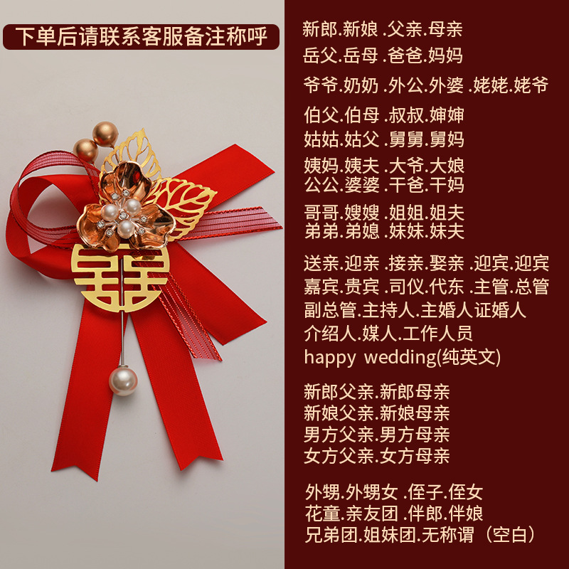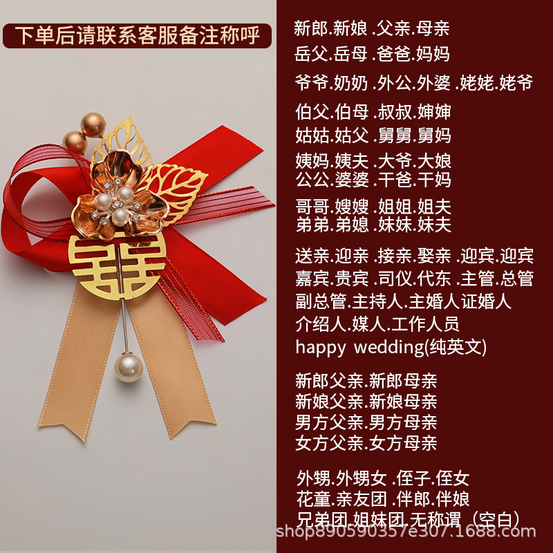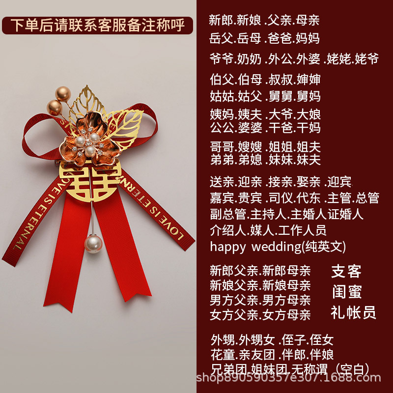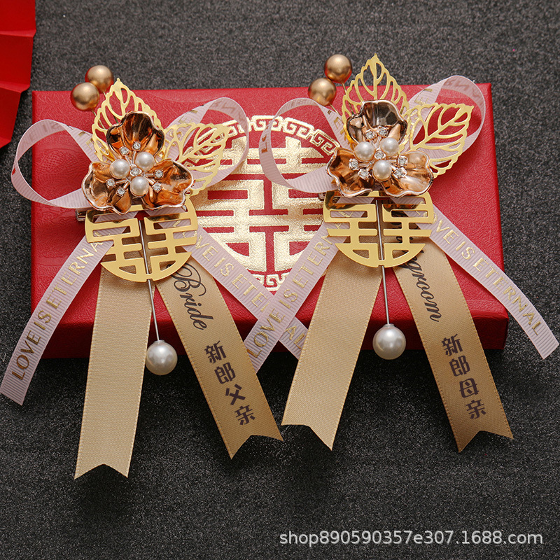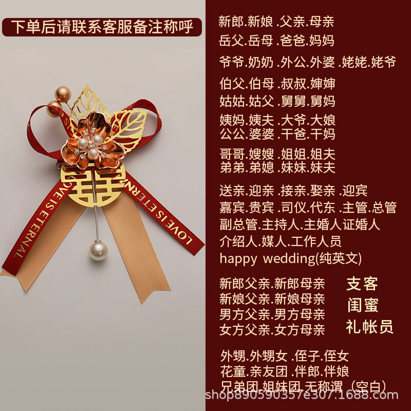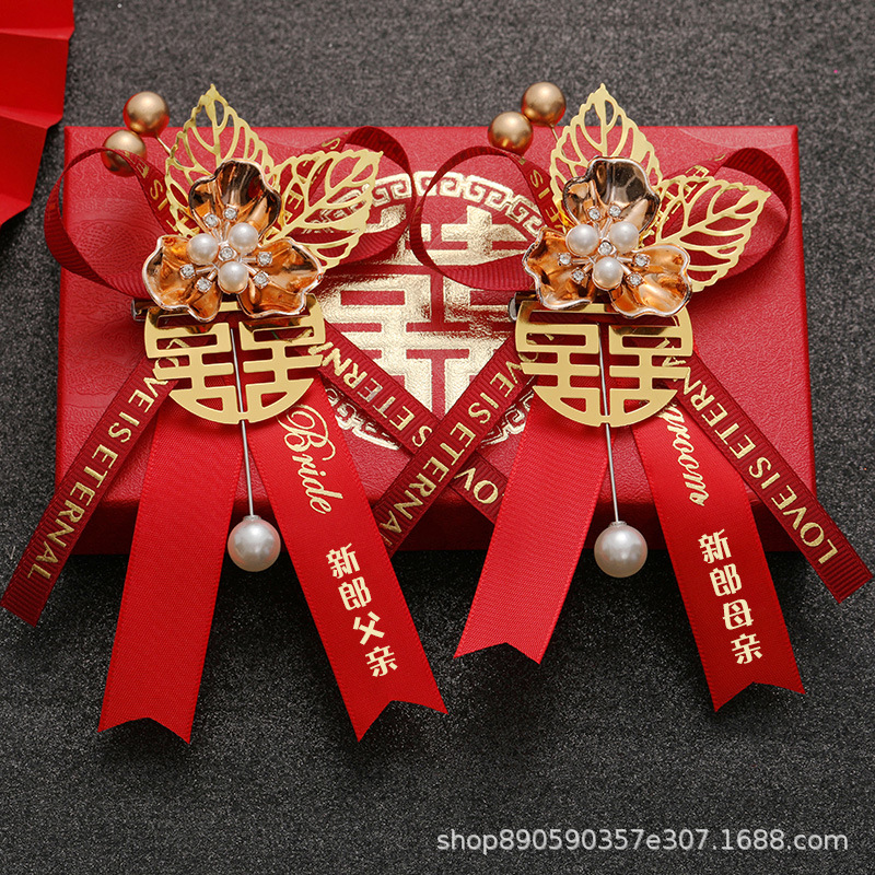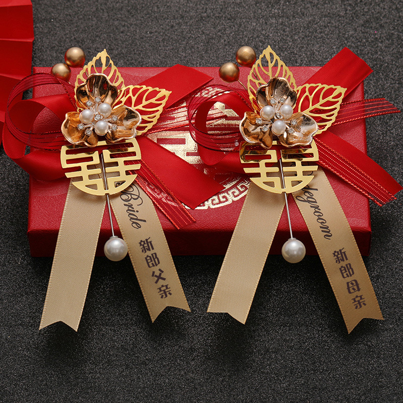 结婚用品婚礼新郎新娘胸花全套批发中式家人胸针襟花父母亲友佩戴