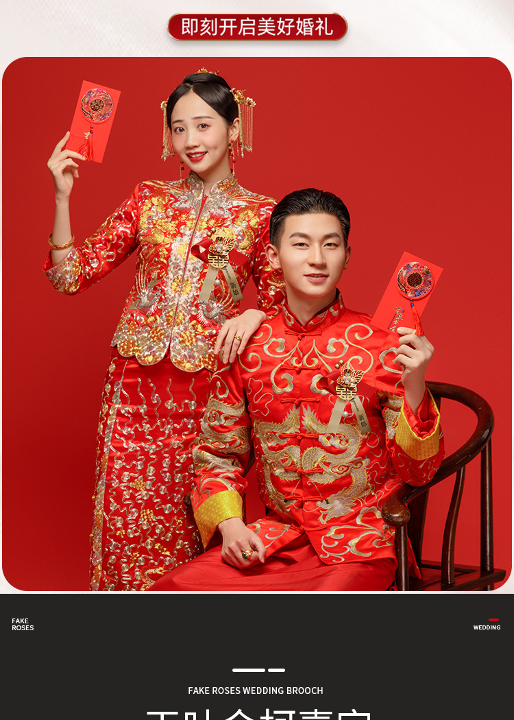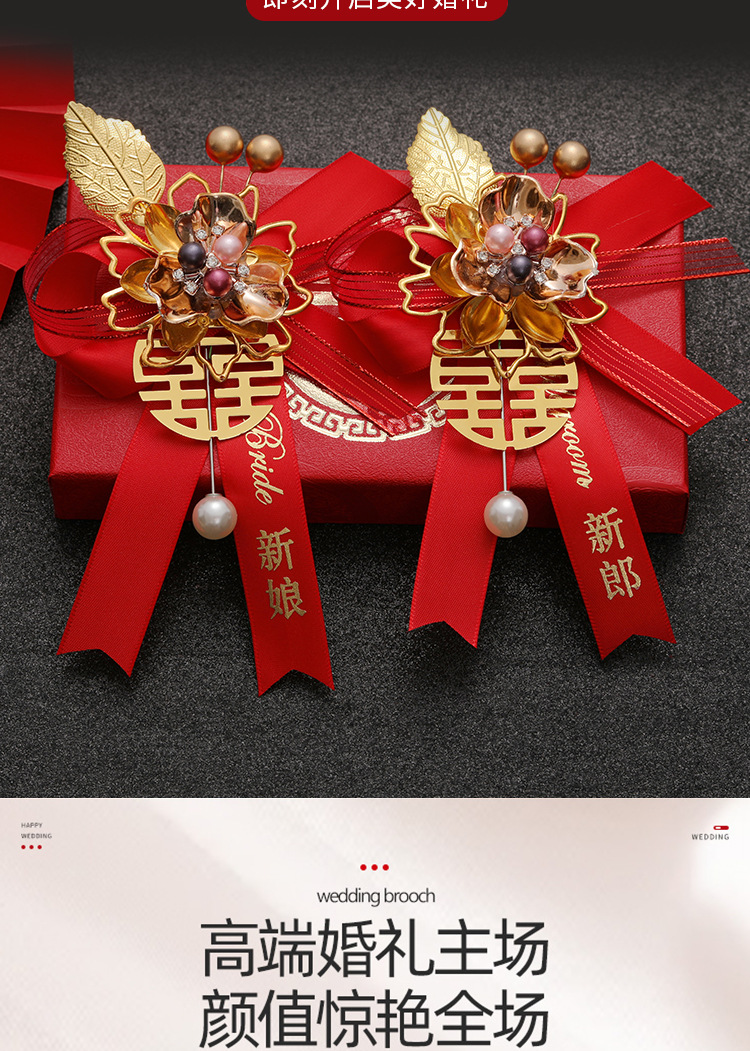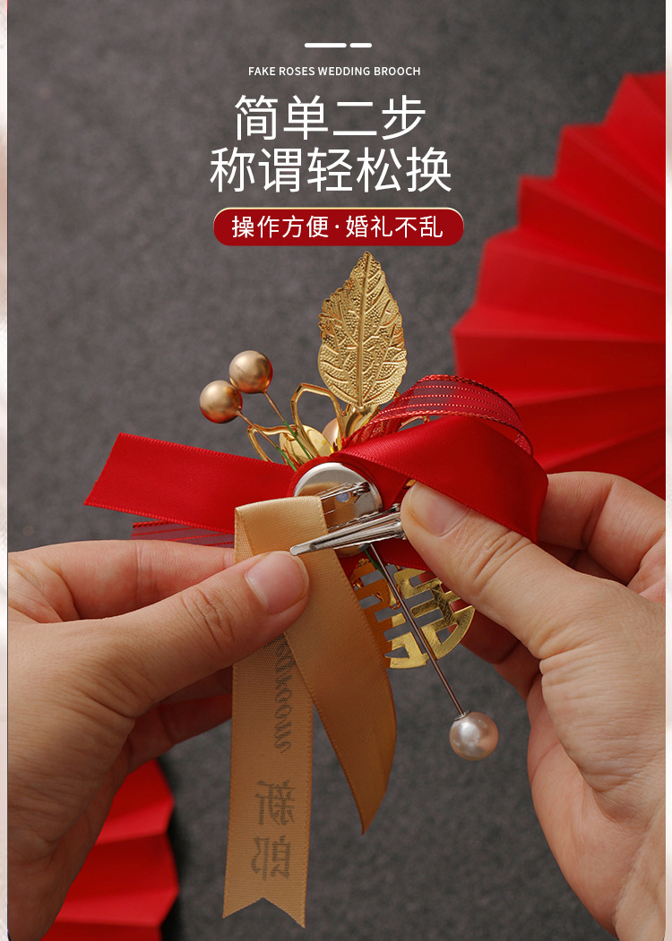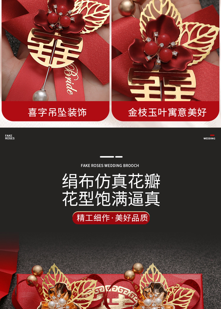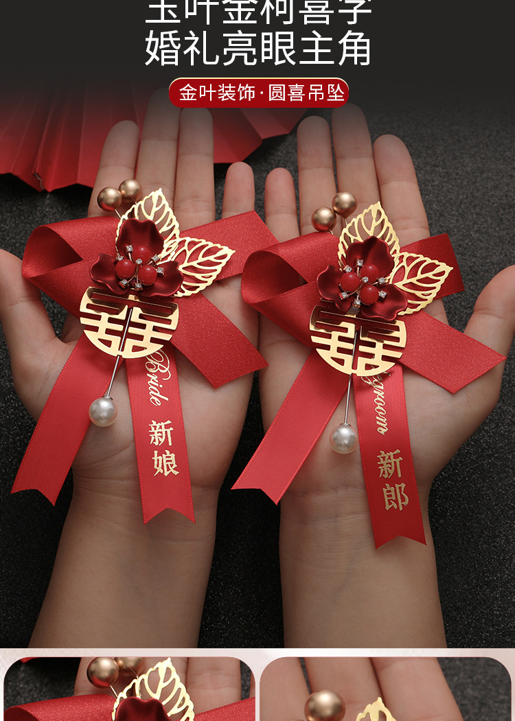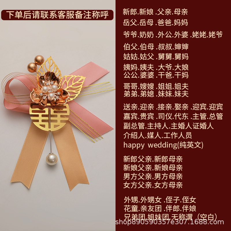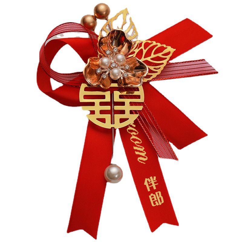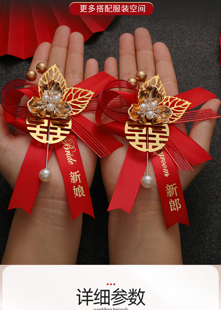 结婚用品婚礼新郎新娘胸花全套批发中式家人胸针襟花父母亲友佩戴