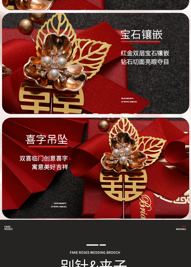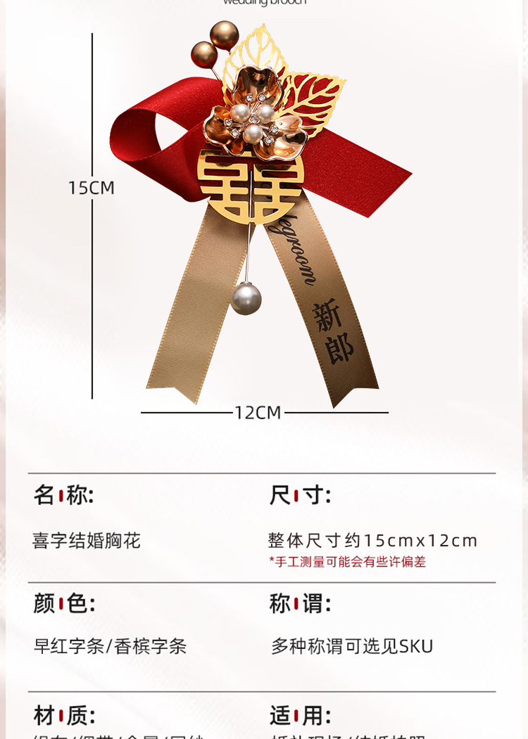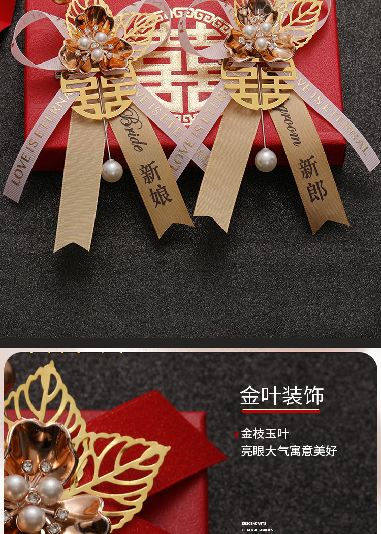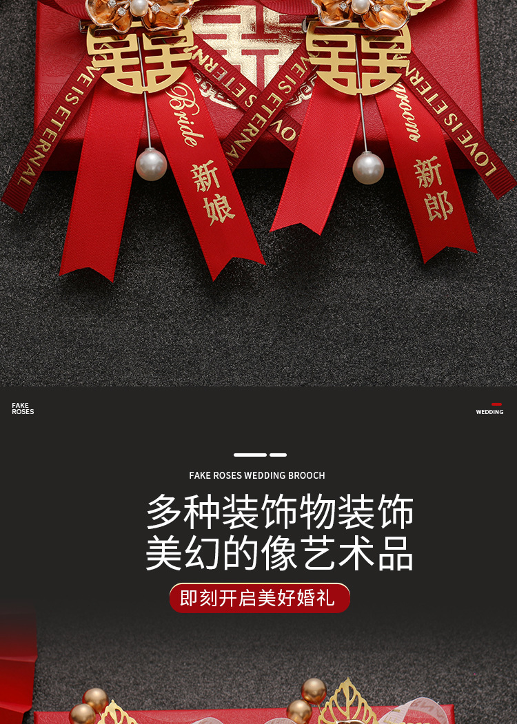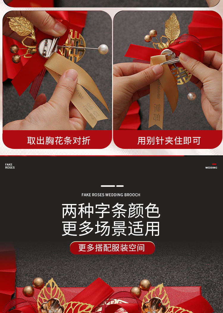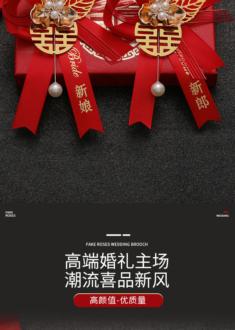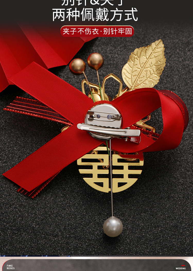 结婚用品婚礼新郎新娘胸花全套批发中式家人胸针襟花父母亲友佩戴