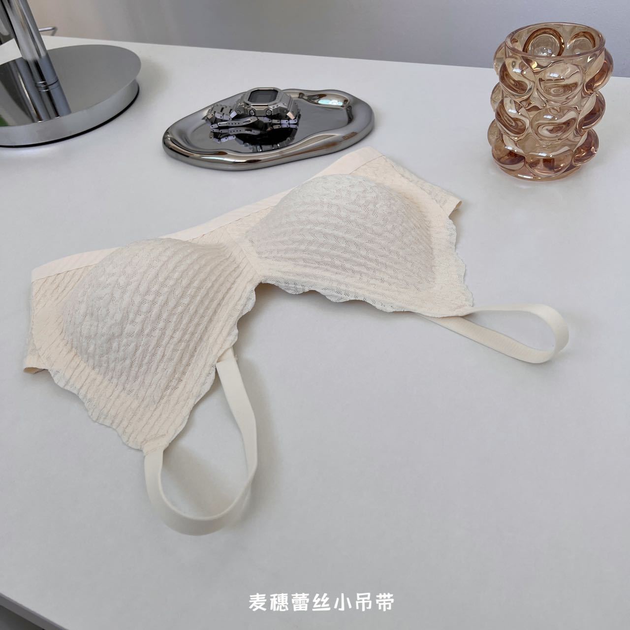 一片式无痕文胸内衣女士蕾丝边无钢圈小胸聚拢平胸显大小吊带背心