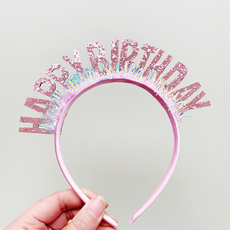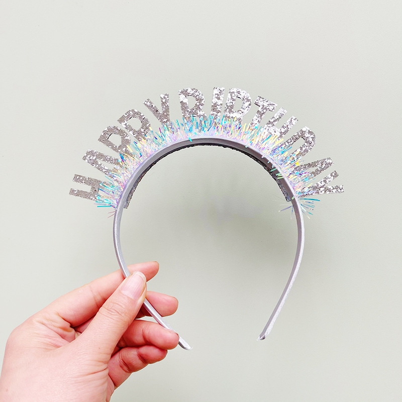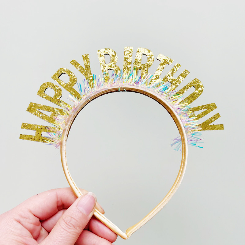 生日发箍happybirthday生日快乐发箍闪亮雨丝儿童头箍头饰生日帽