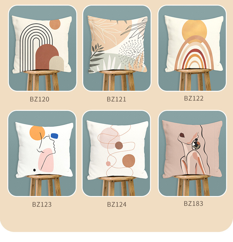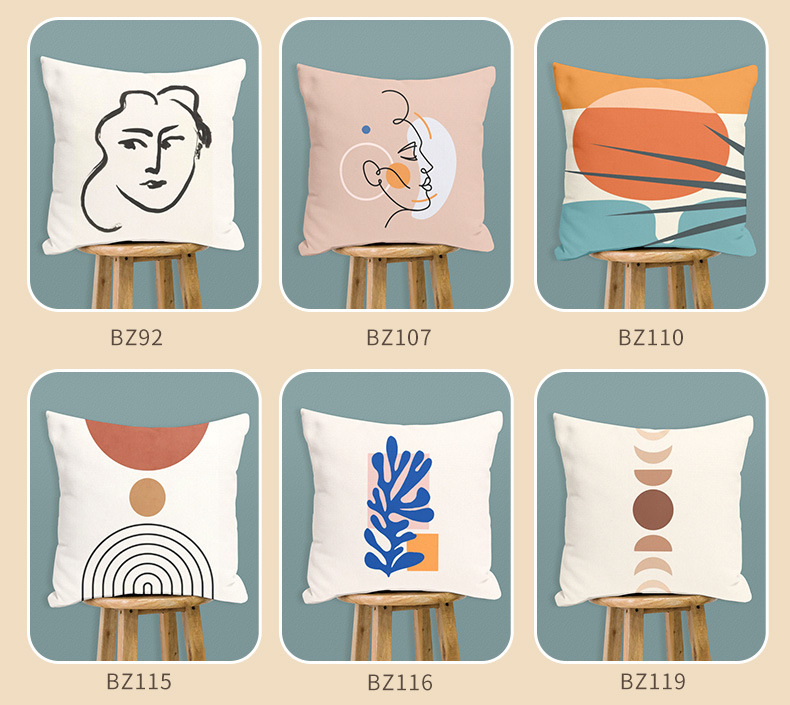跨境新品莫兰迪系列抱枕套色块几何创意印花室内房间靠枕套可批发