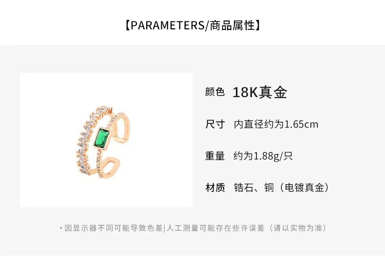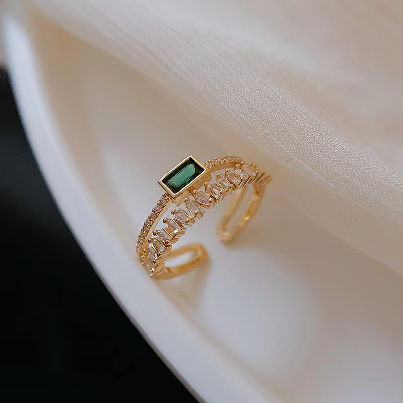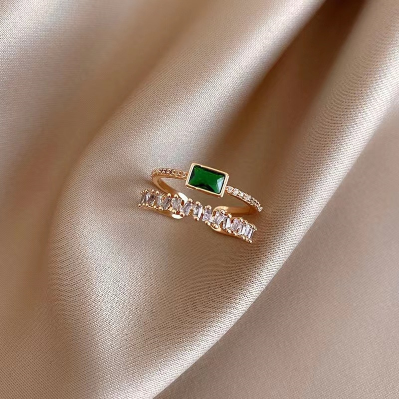 复古孔雀绿钻石双层戒指女小众ins潮食指指环简约气质网红开口戒