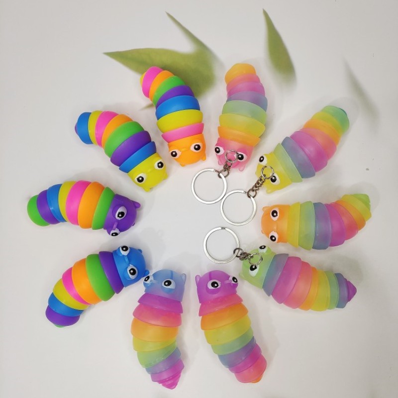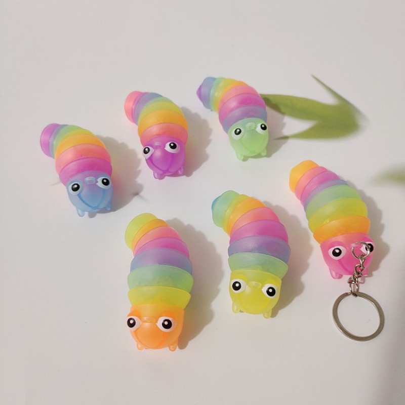 彩虹小号眼睛8CM毛毛虫钥匙扣 夜光9节鼻涕虫 儿童互动解压玩具