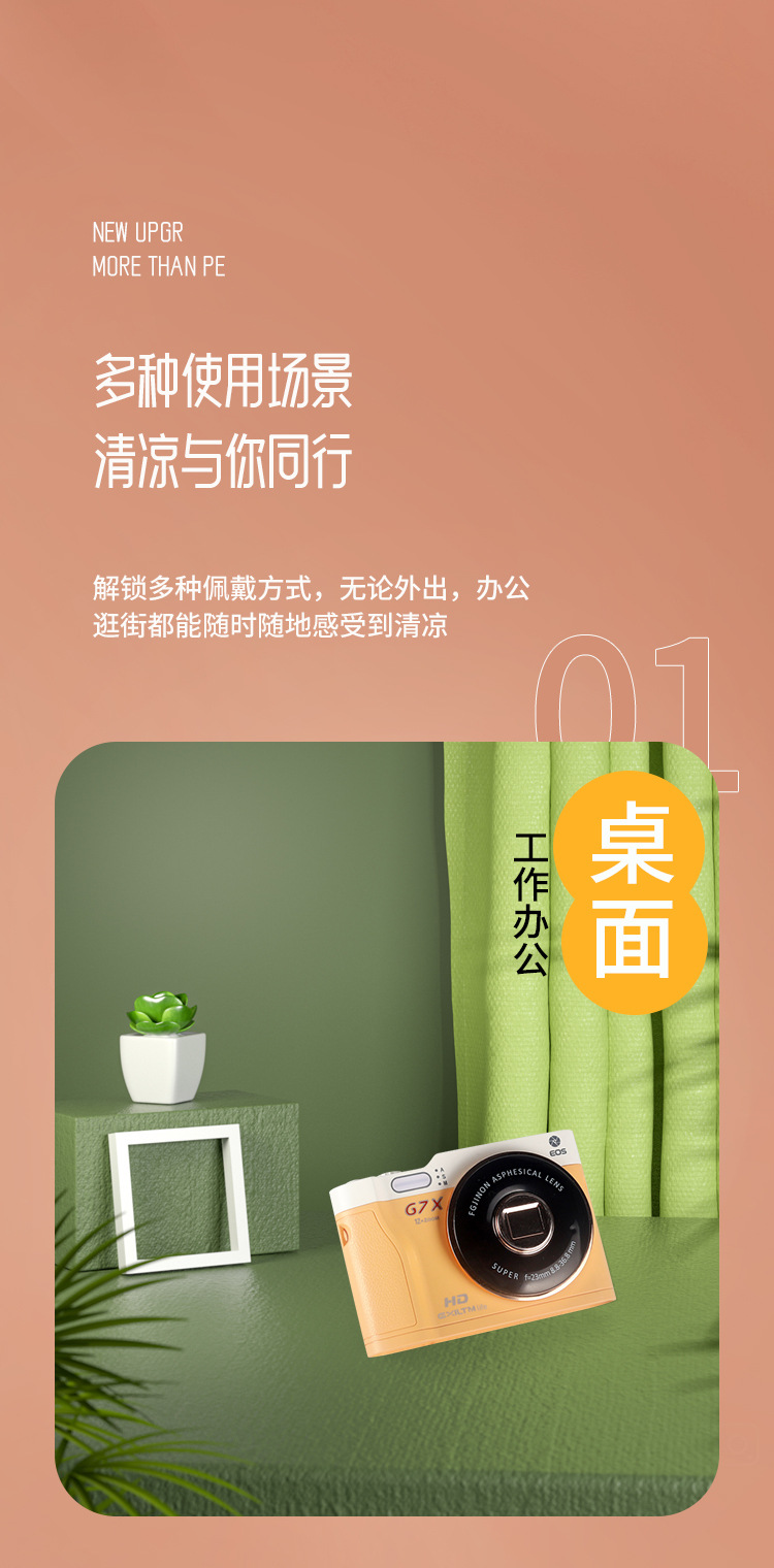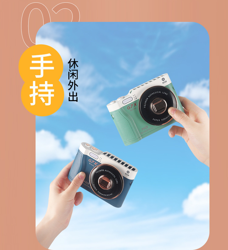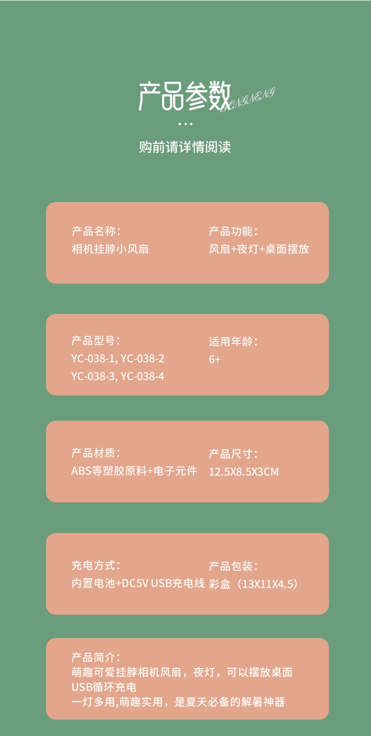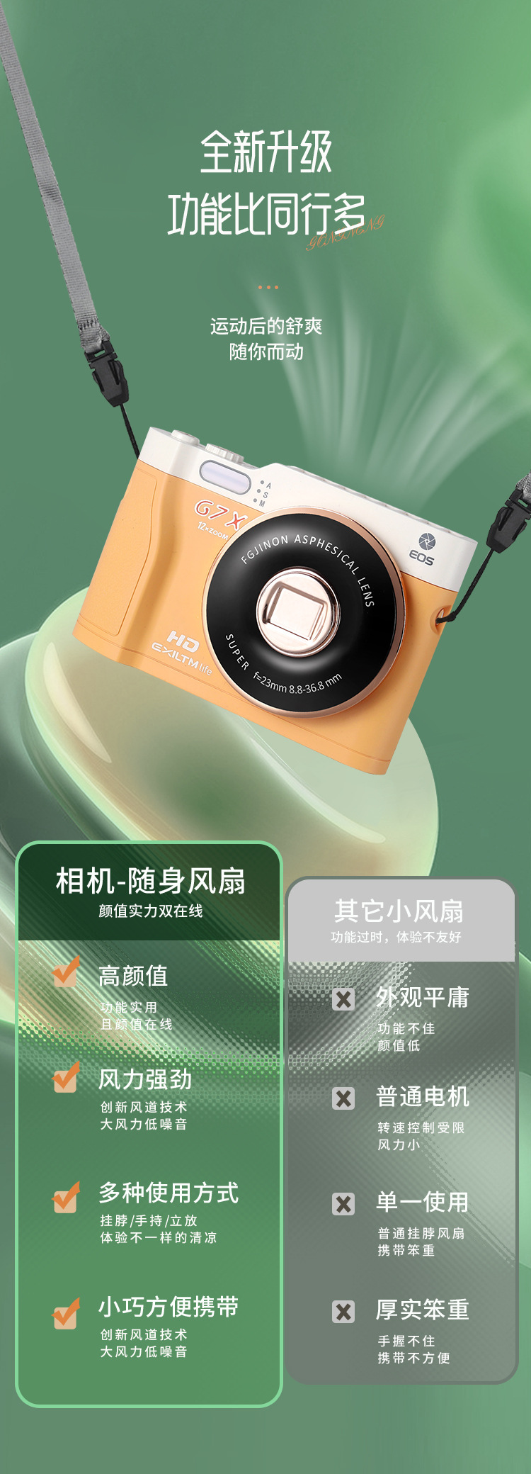简约相机无叶挂脖风扇便携式充电USB迷你挂绳桌面手持户外小风扇