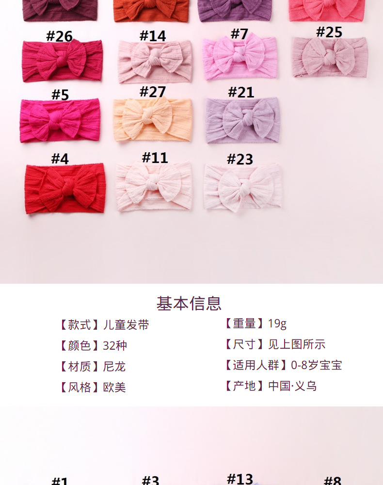 跨境热销婴儿尼龙发带欧美宝宝弹性头带提花宽边儿童蝴蝶结发带