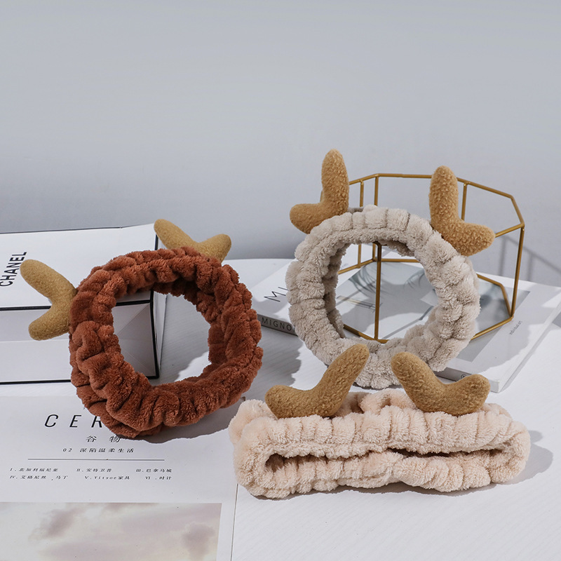 新款小鹿角发带韩版卡通龙角束发带毛绒麋鹿角洗脸化妆发带头带女