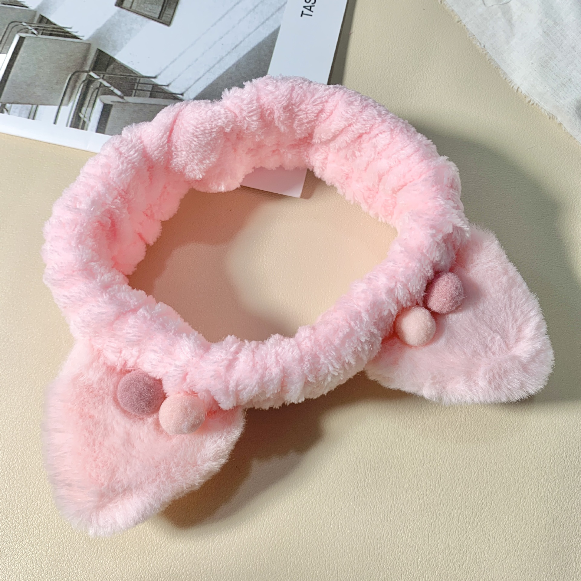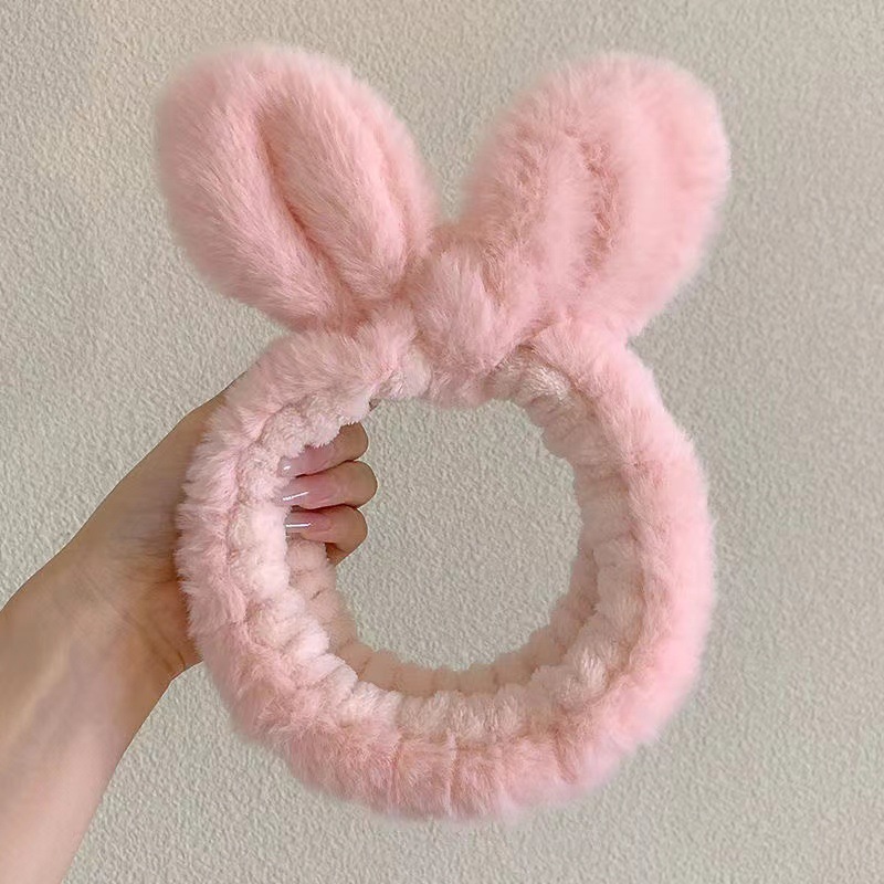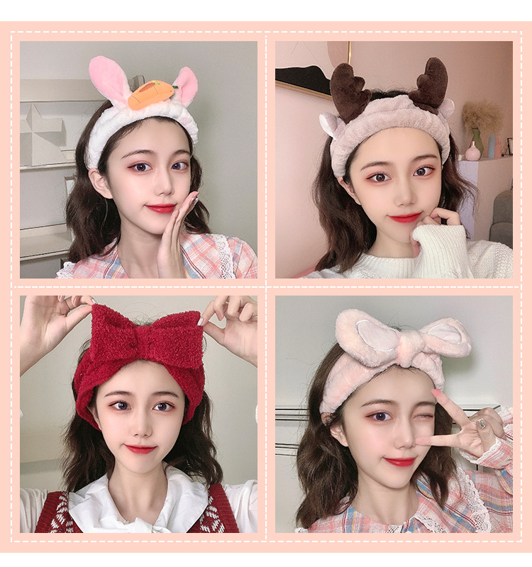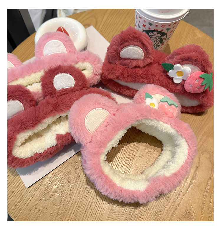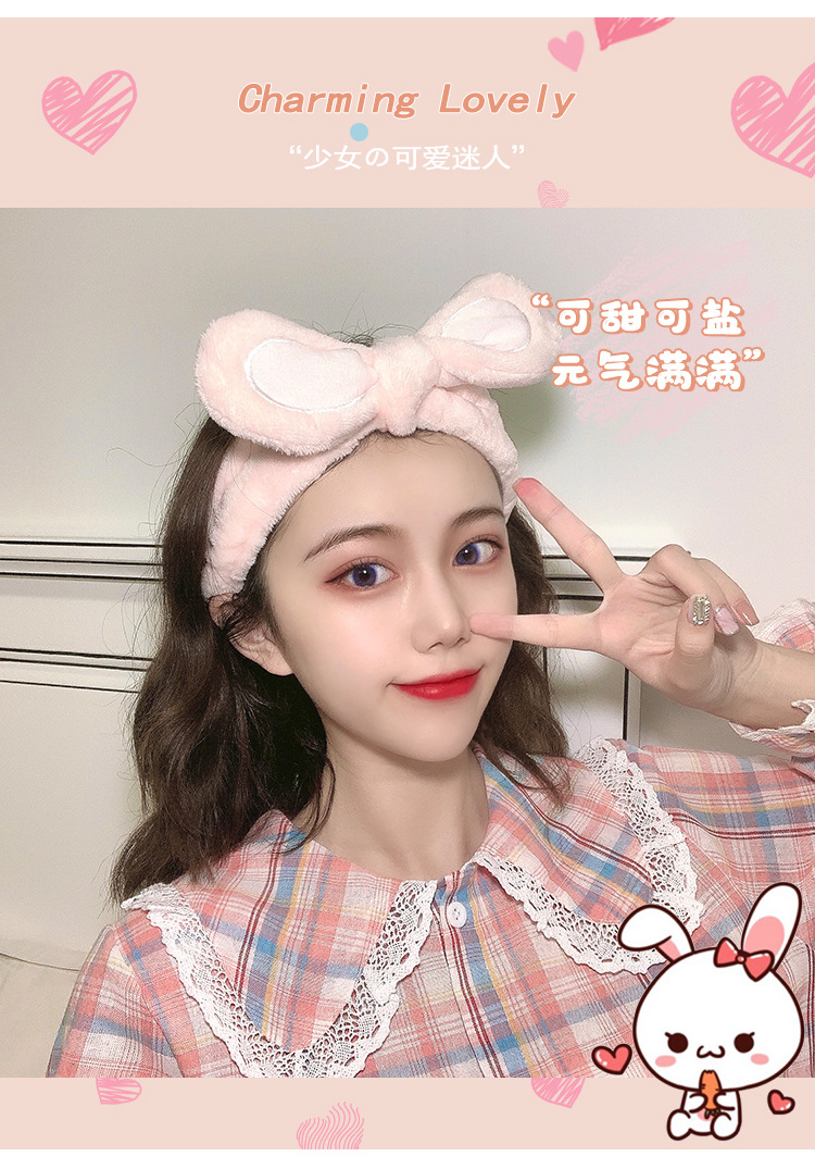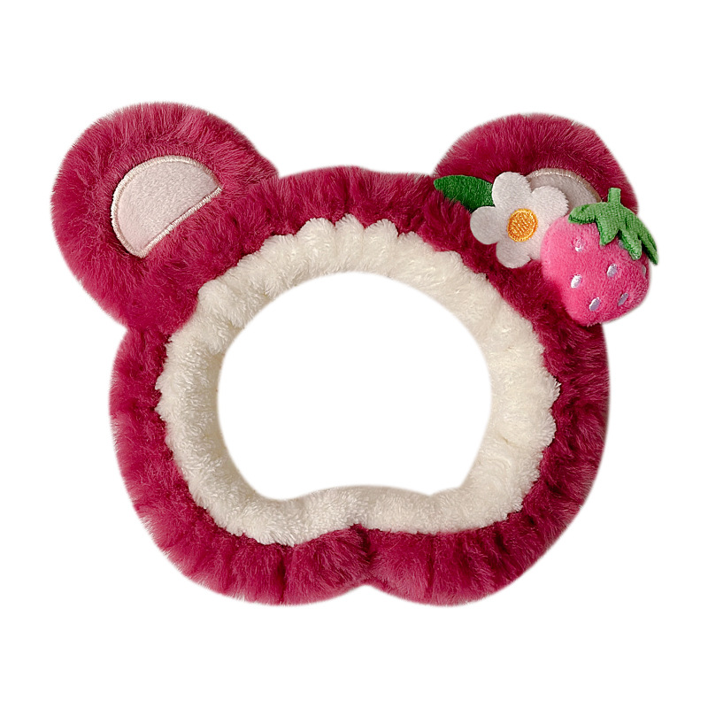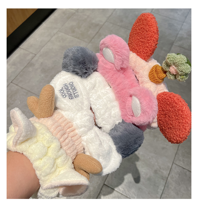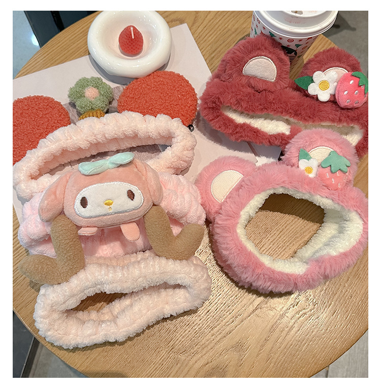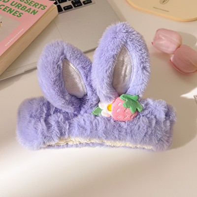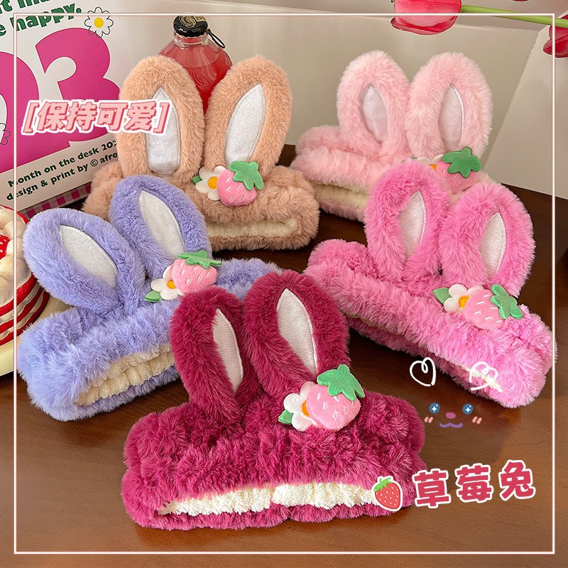 卡通洗脸发带兔耳朵毛绒束发带草莓熊蝴蝶结发箍发饰发带头