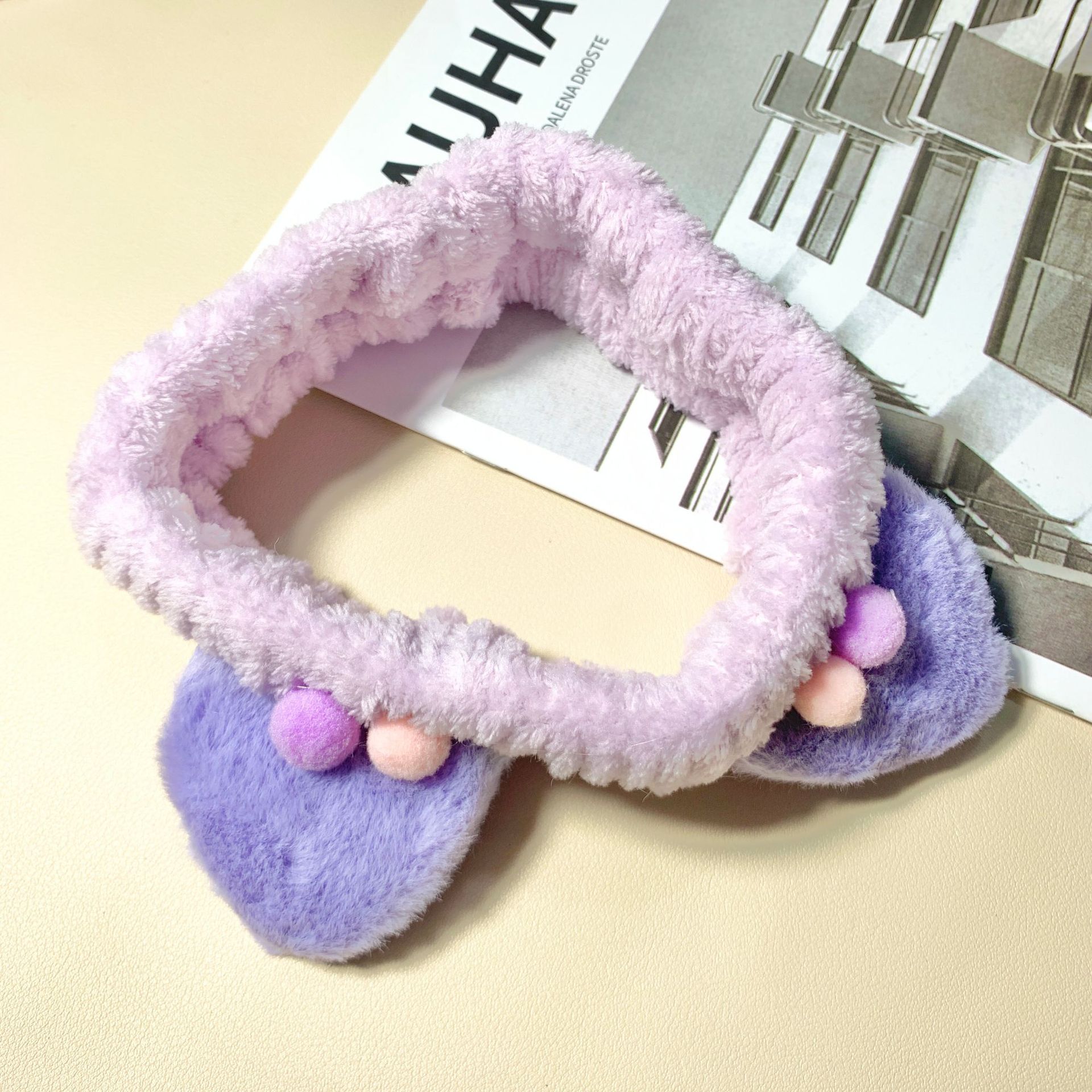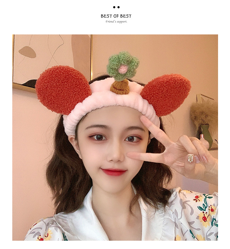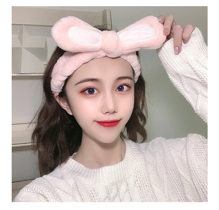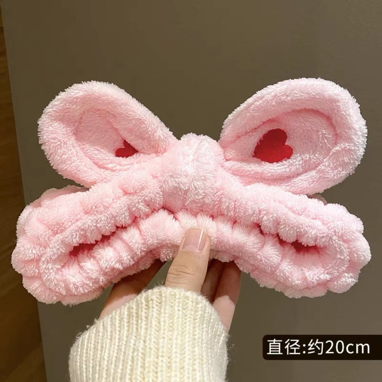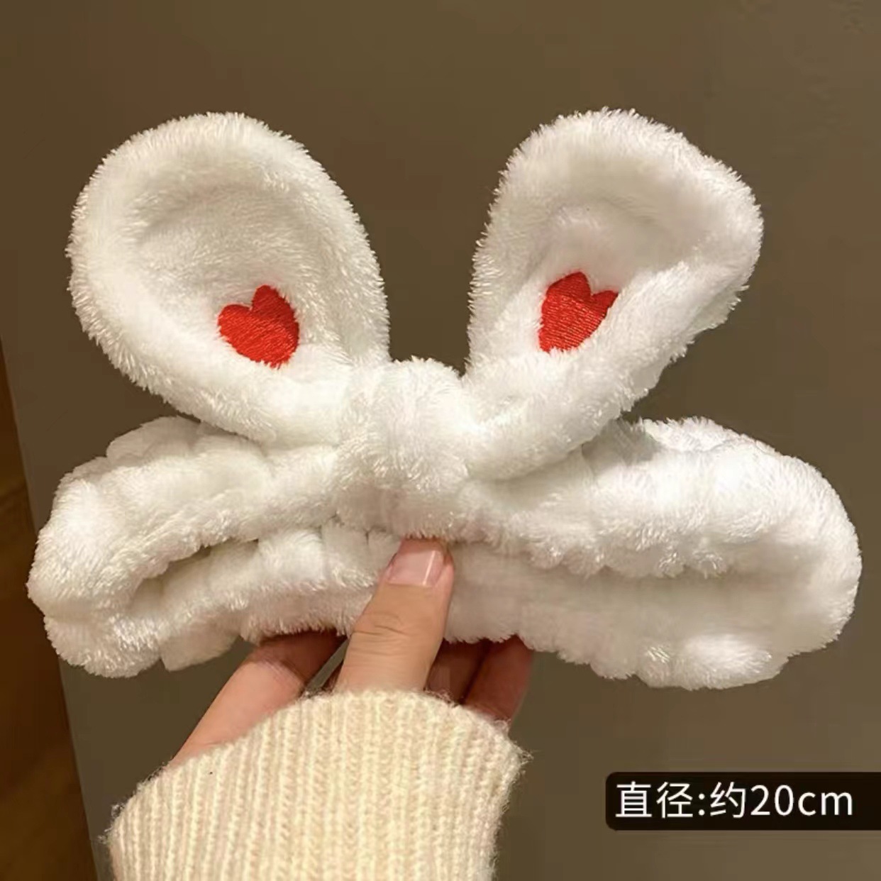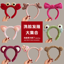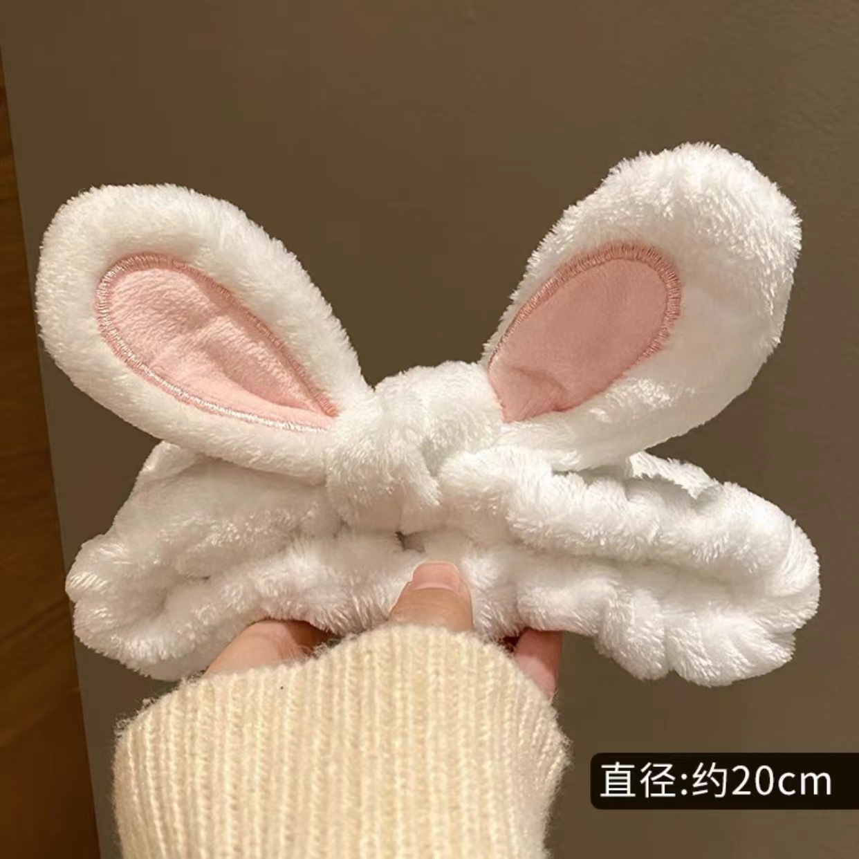 卡通洗脸发带兔耳朵毛绒束发带草莓熊蝴蝶结发箍发饰发带头