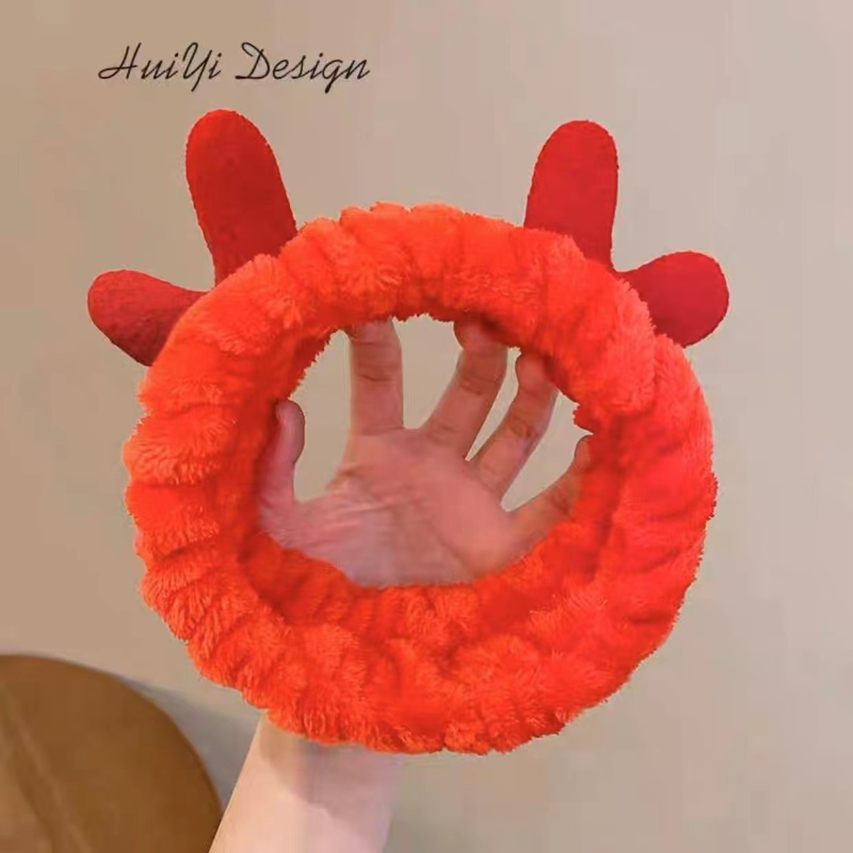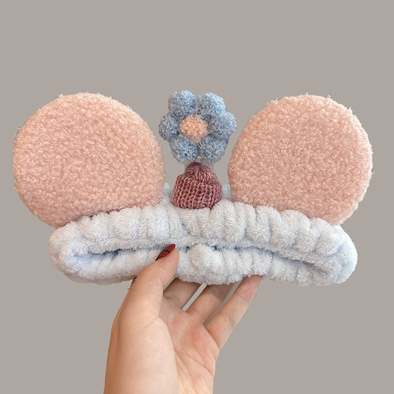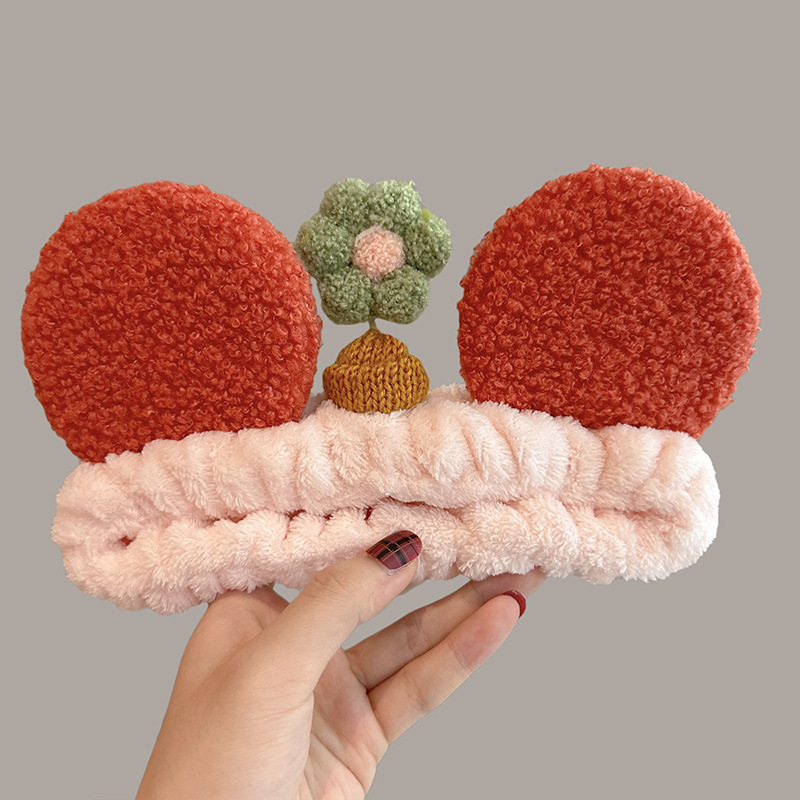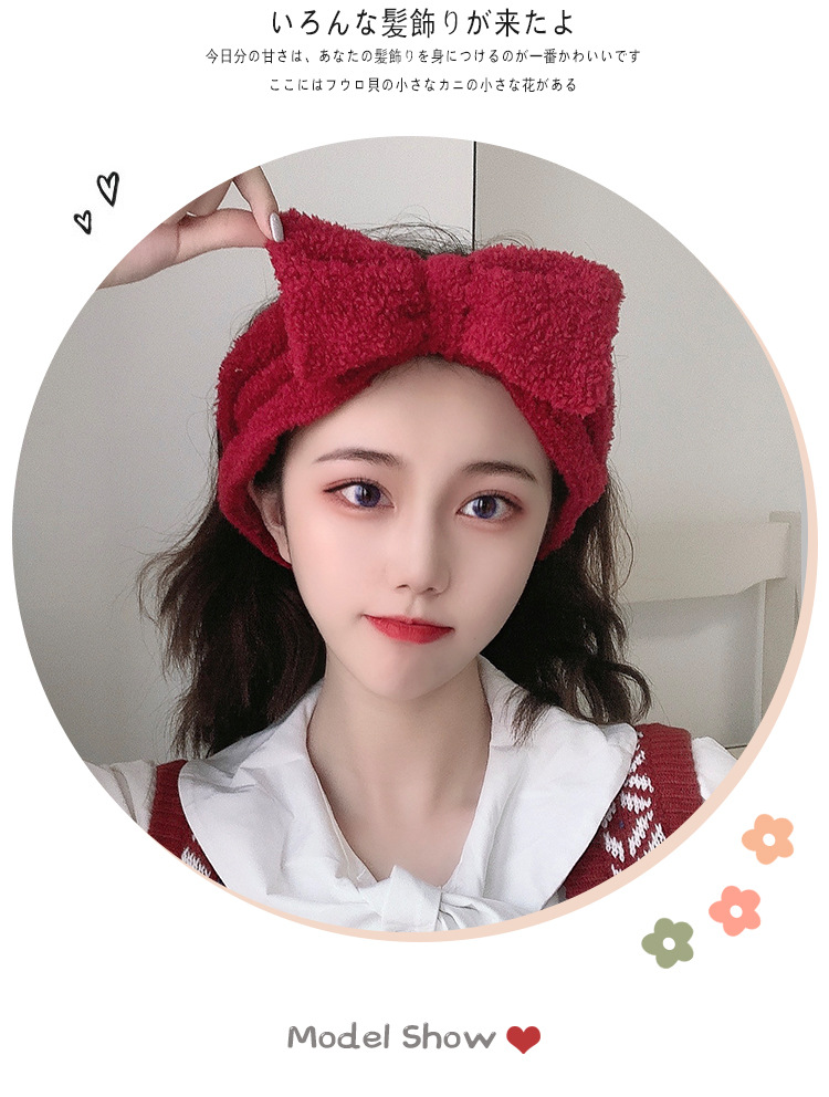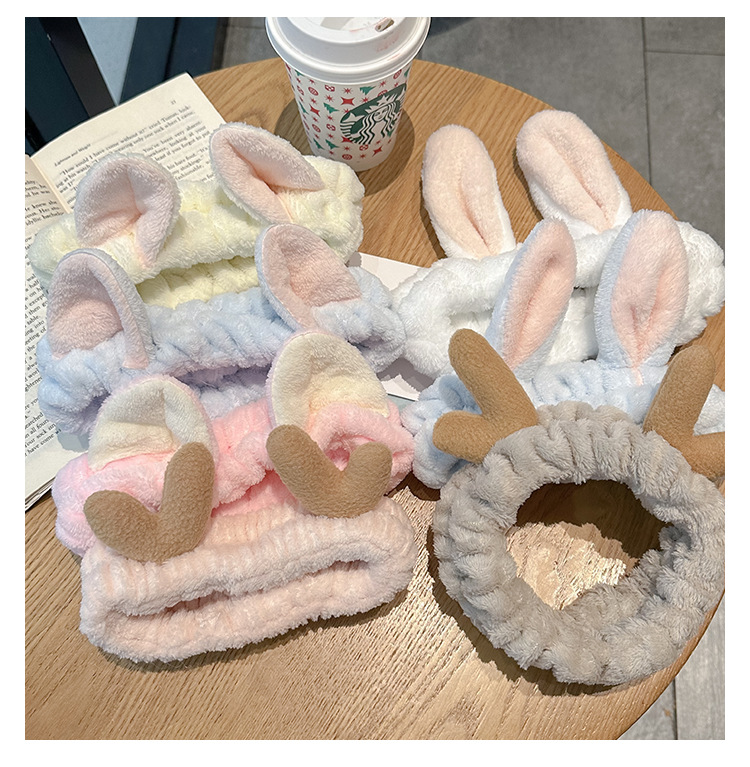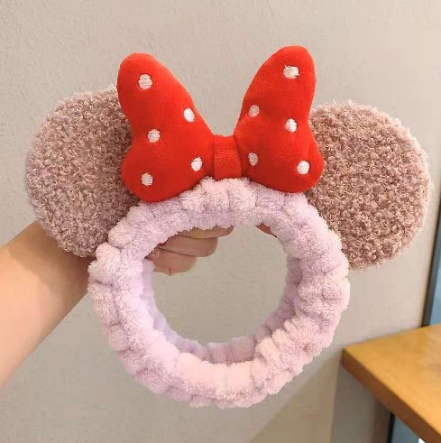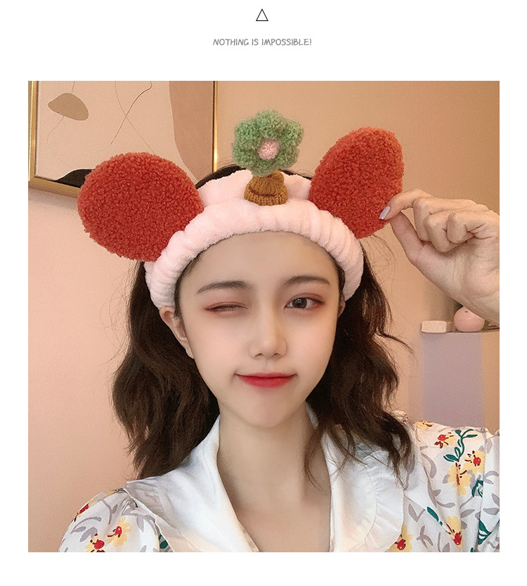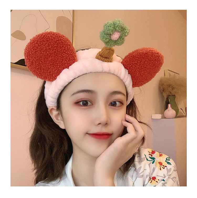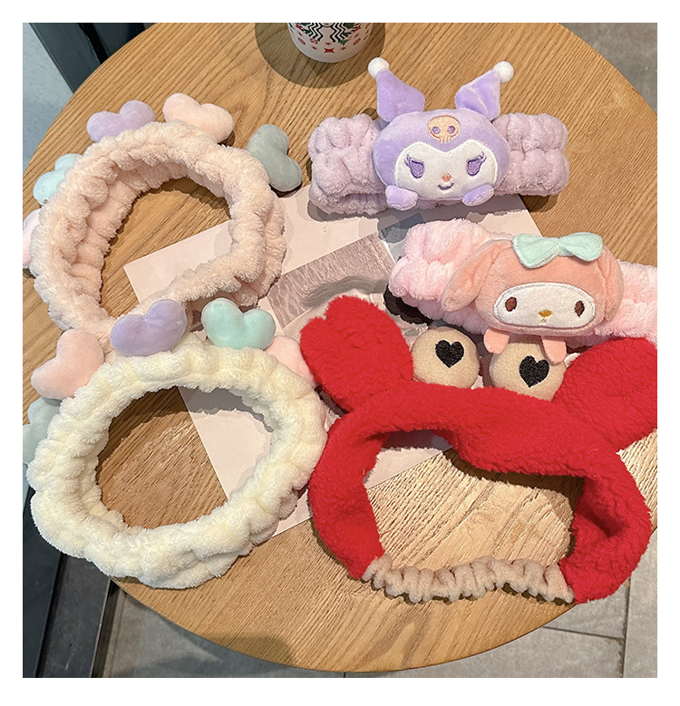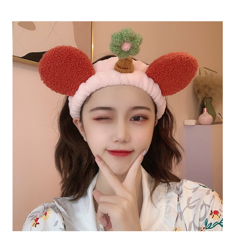 卡通洗脸发带兔耳朵毛绒束发带草莓熊蝴蝶结发箍发饰发带头