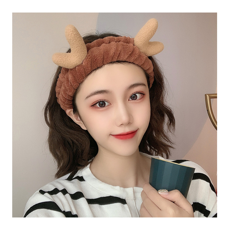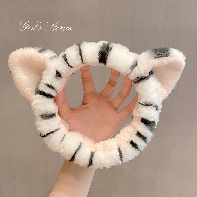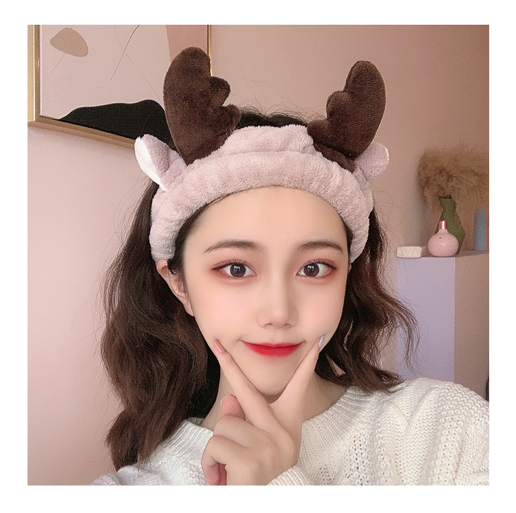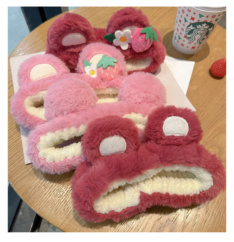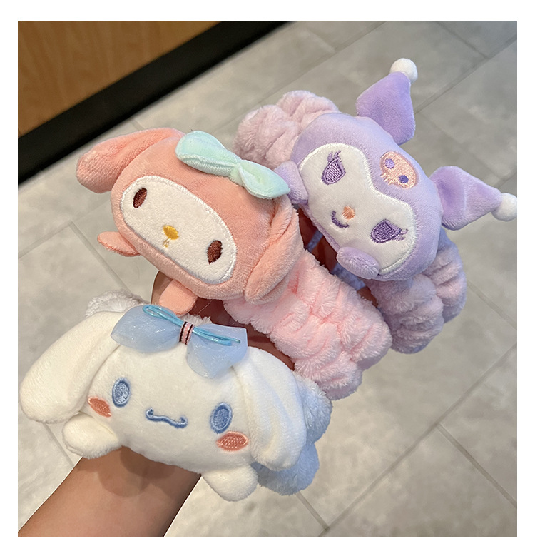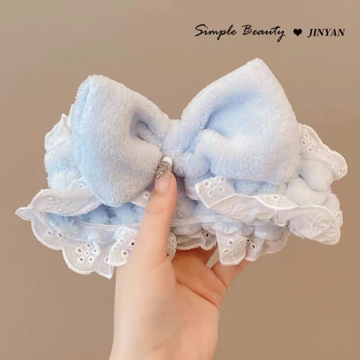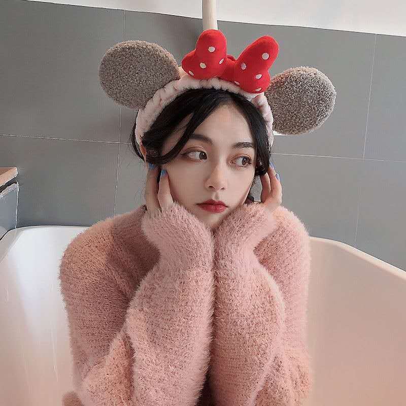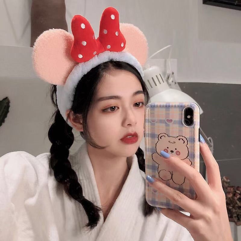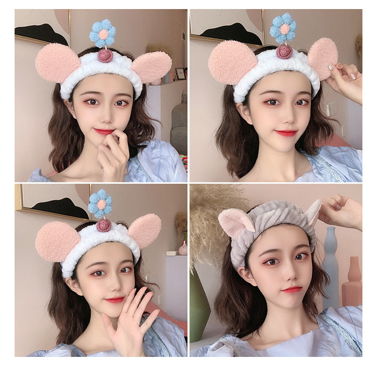 卡通洗脸发带兔耳朵毛绒束发带草莓熊蝴蝶结发箍发饰发带头