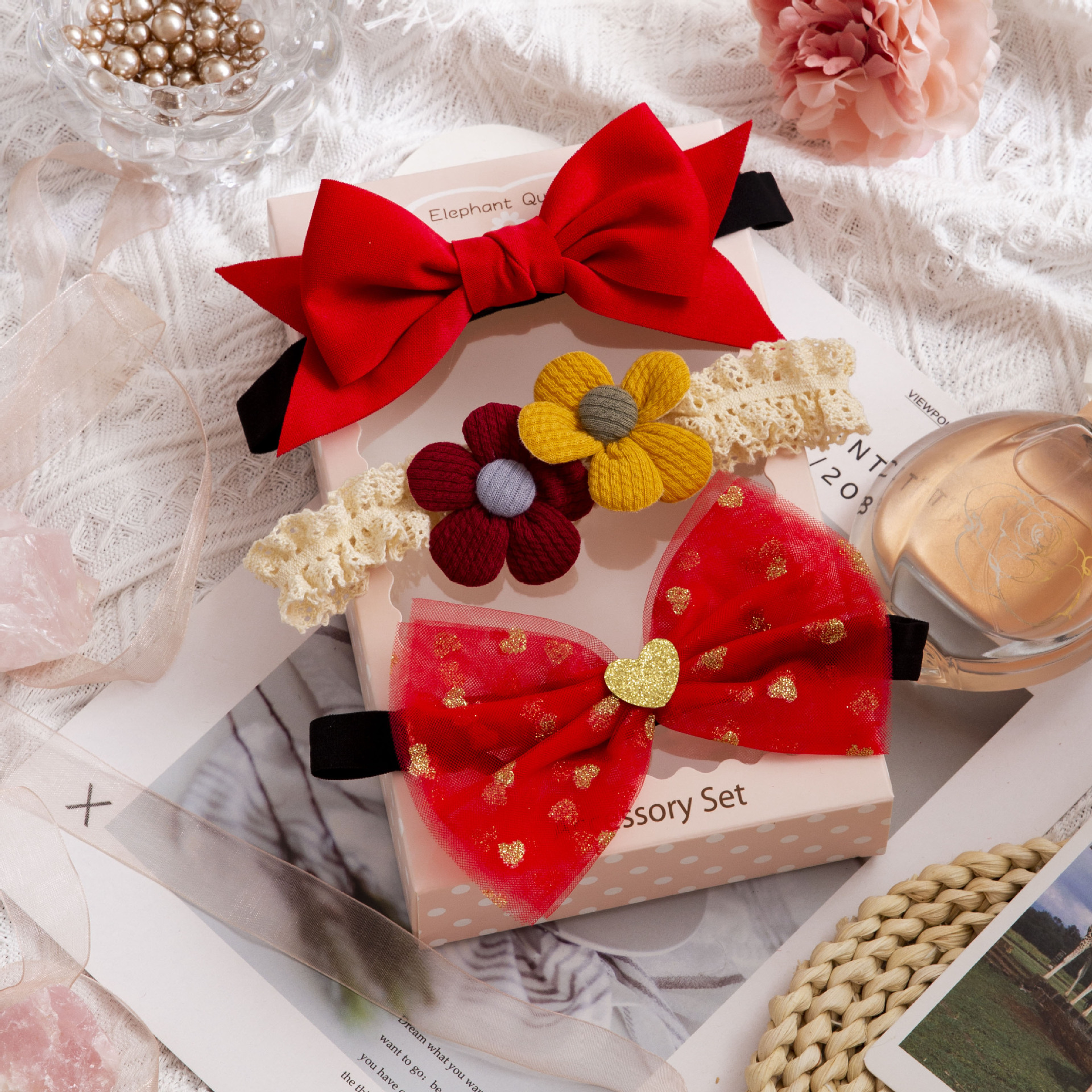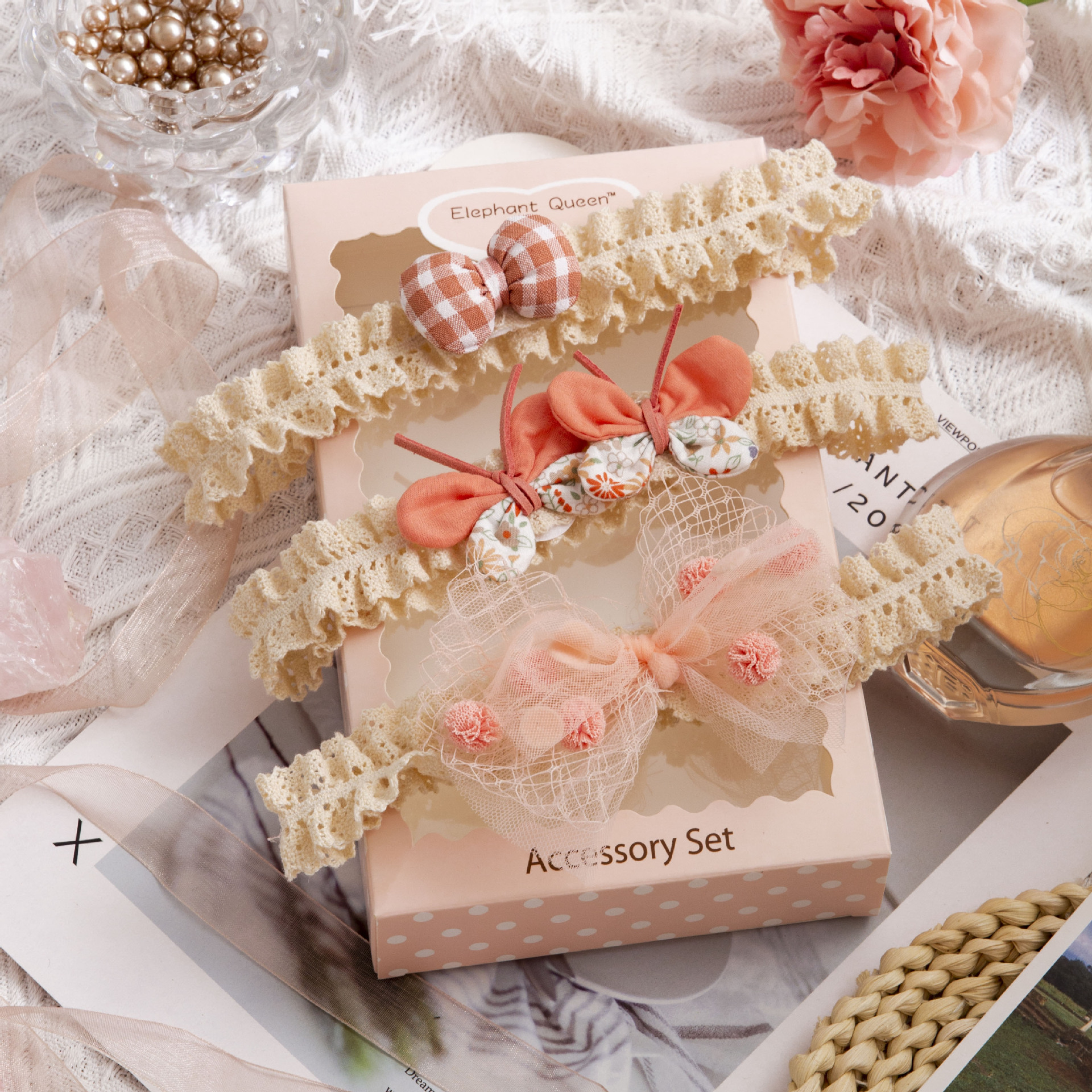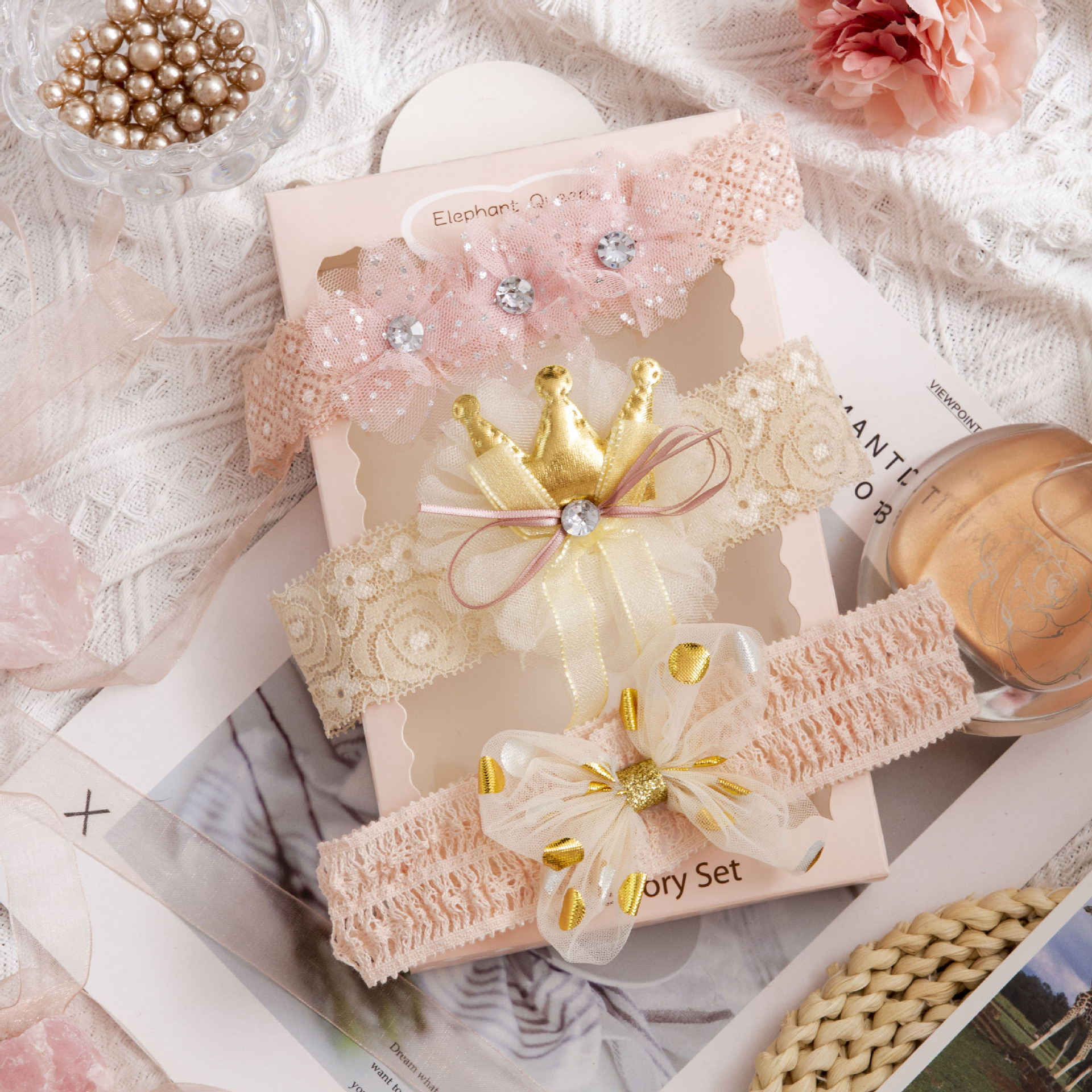 欧美蝴蝶结花朵头带儿童蕾丝头花发饰婴儿满月百天三件套宝宝发带