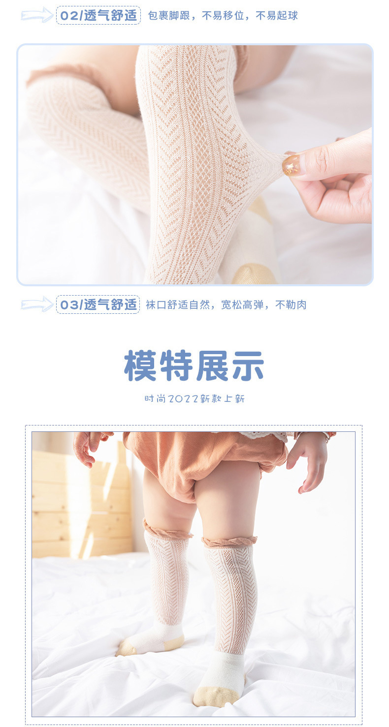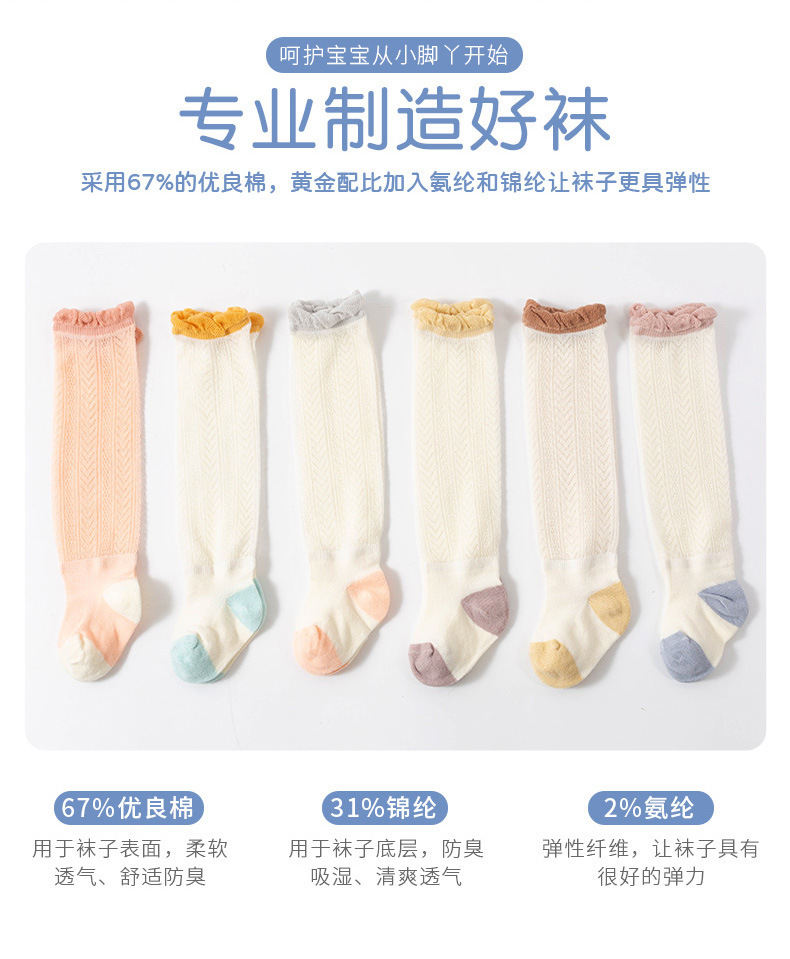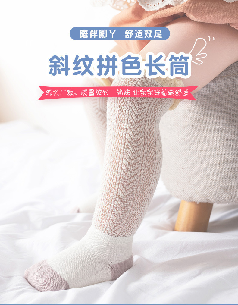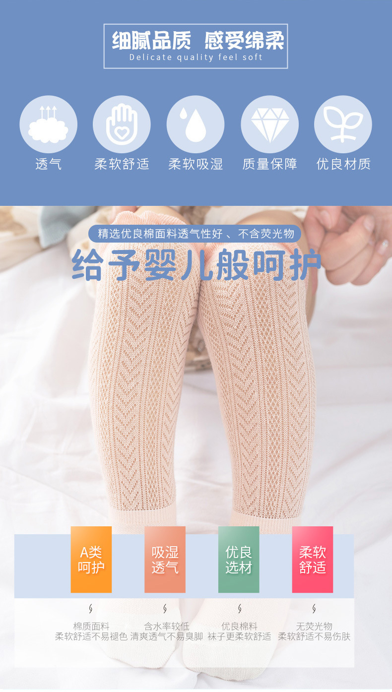 婴儿袜子夏季网眼薄棉款新生儿宝宝防蚊袜过膝长筒不勒脚儿童棉袜