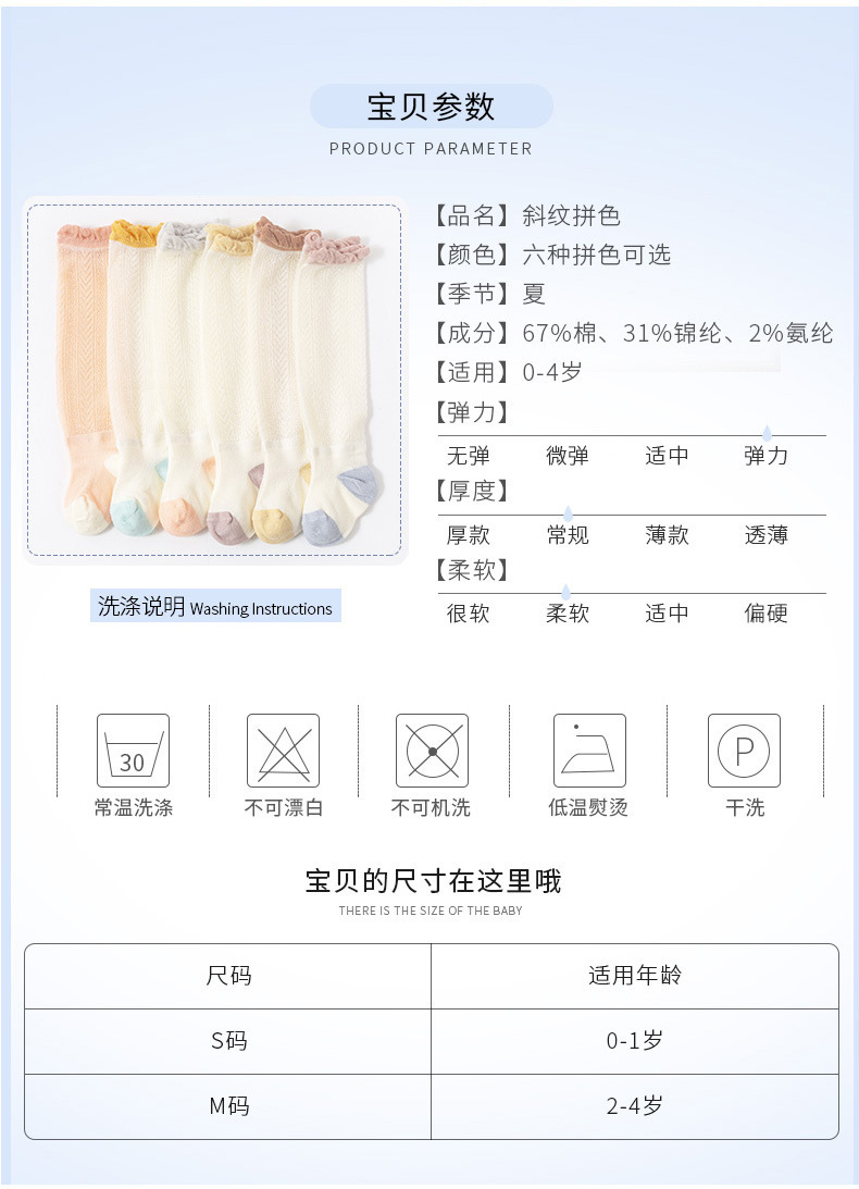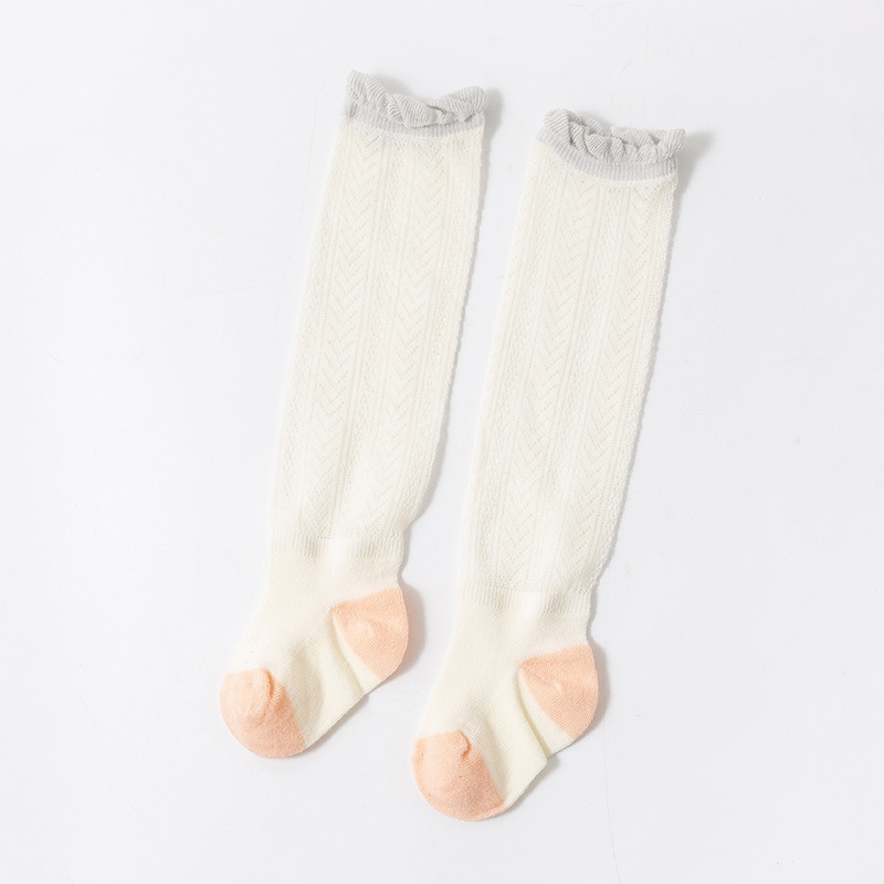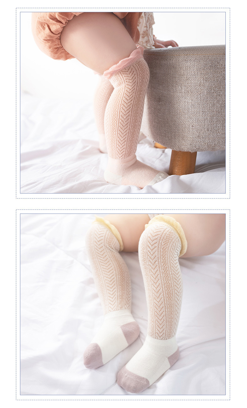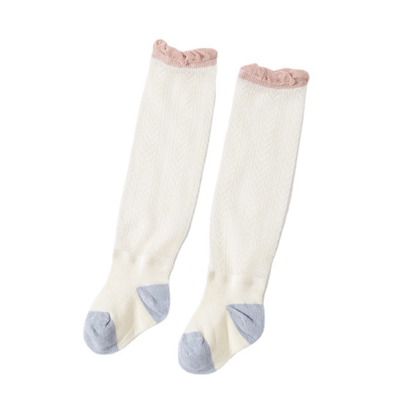 婴儿袜子夏季网眼薄棉款新生儿宝宝防蚊袜过膝长筒不勒脚儿童棉袜