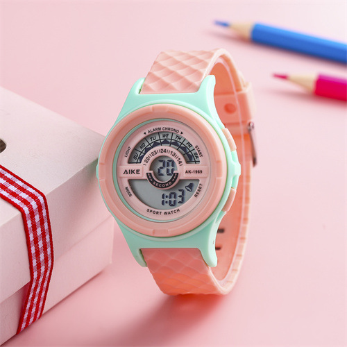 批发现货新款AIKE1969拼色男女礼品电子表日韩通用休闲运动手表
