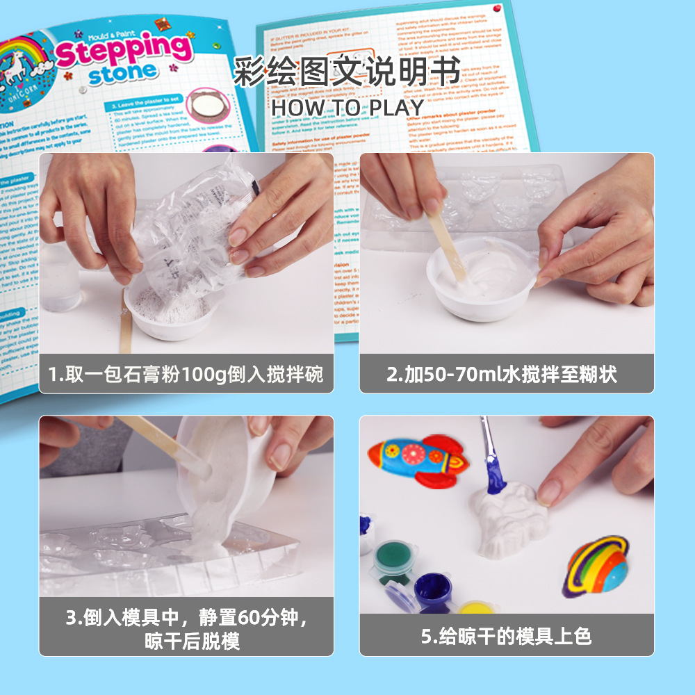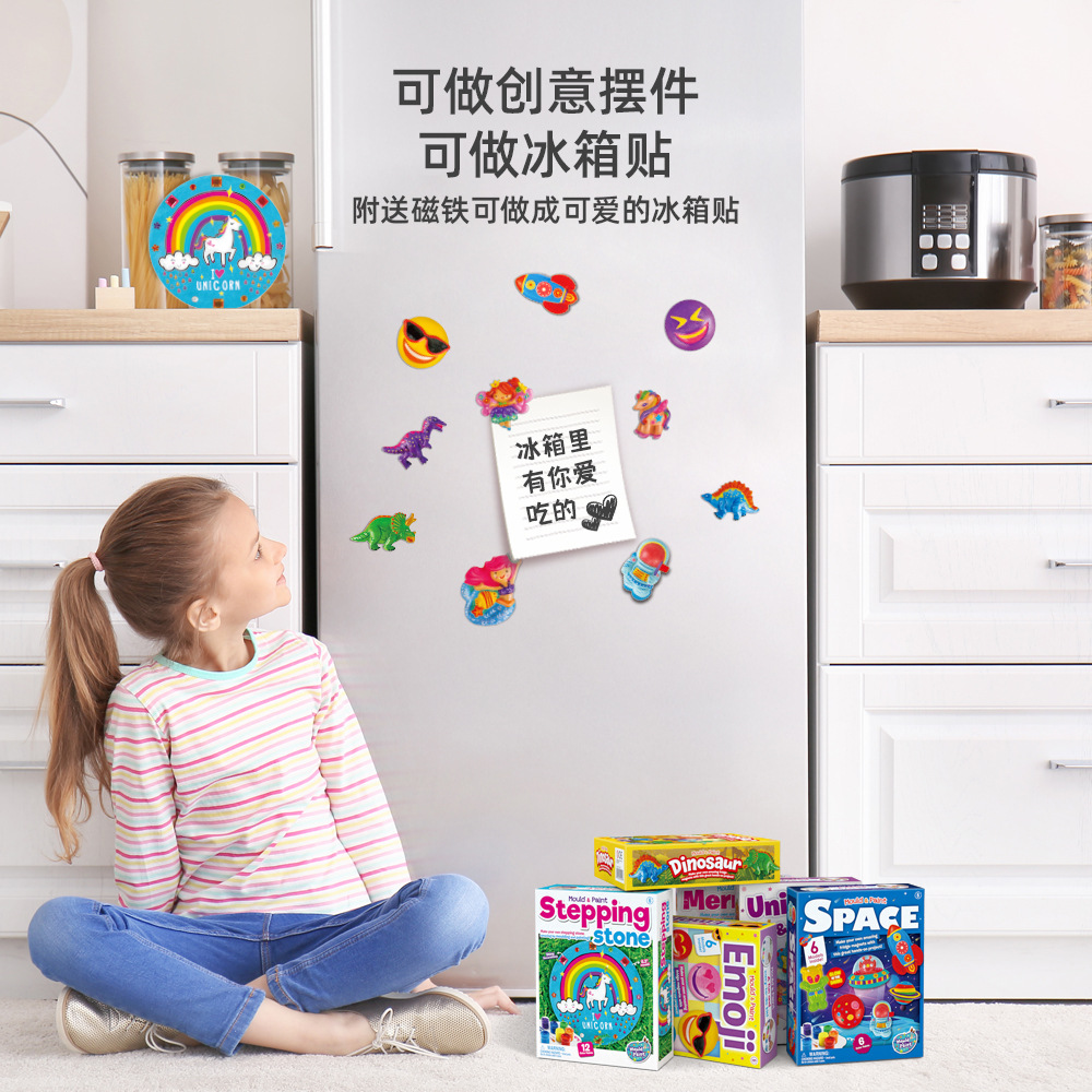 儿童益智diy手工小学生涂鸦上色石膏娃娃彩绘恐龙玩具冰箱贴批发