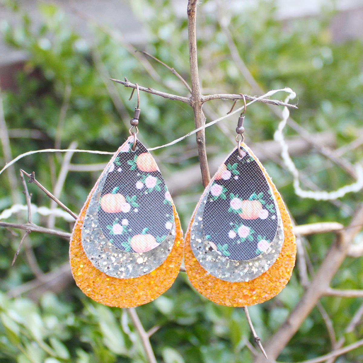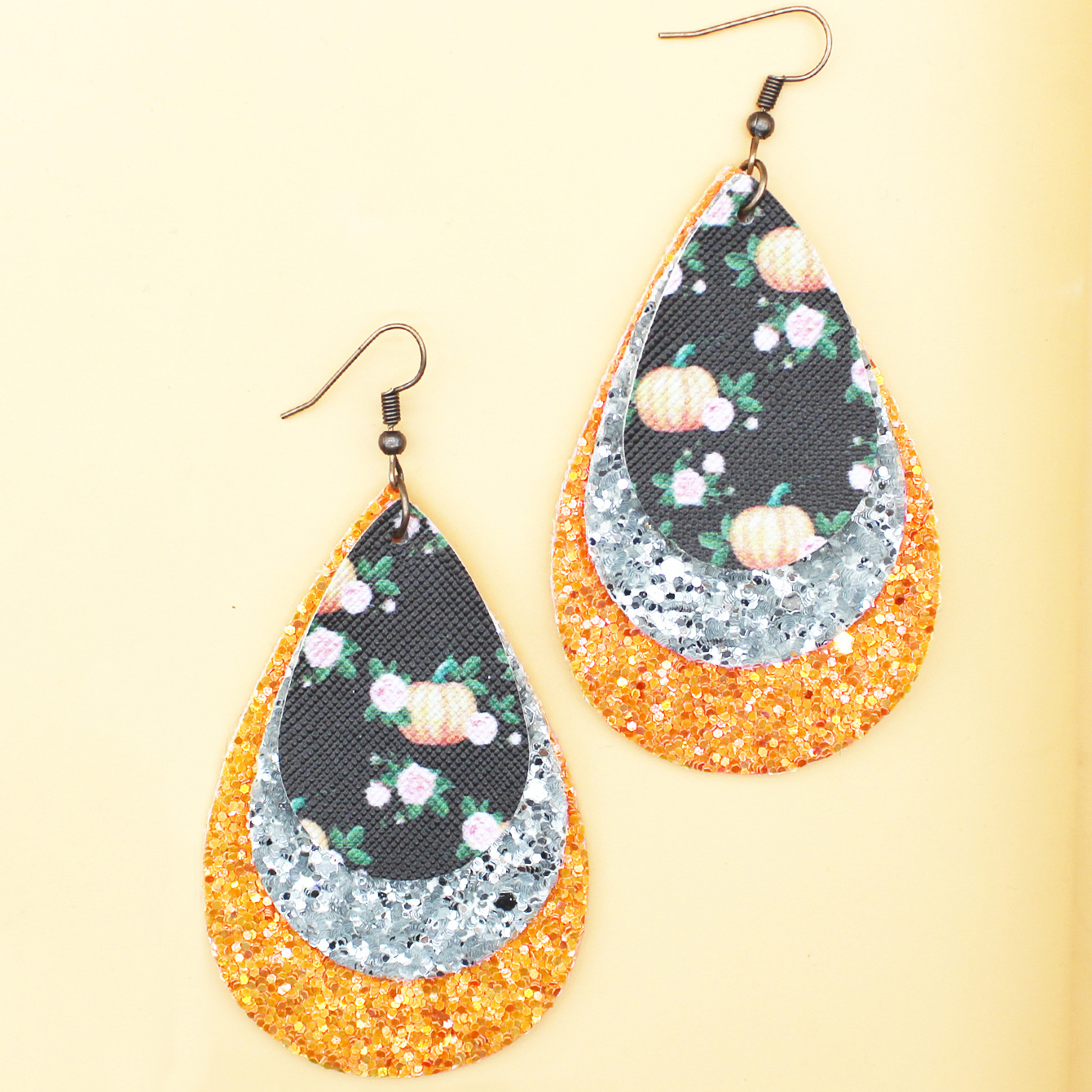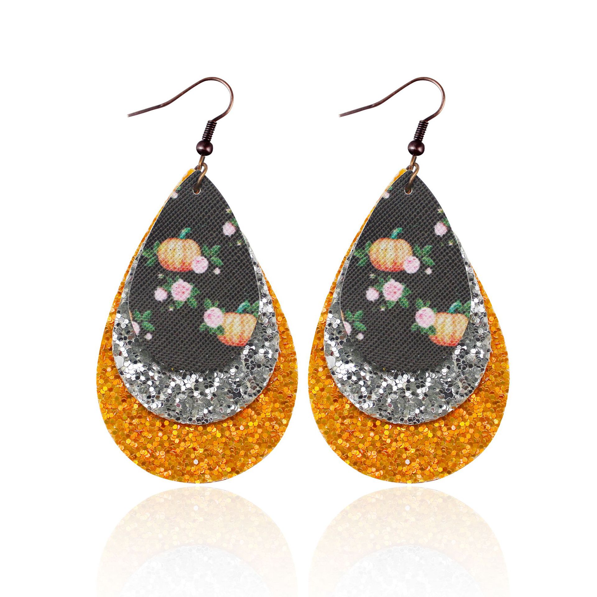 万圣节三层水滴皮革耳环南瓜花朵亮片颗粒欧美节日跨境亚马逊