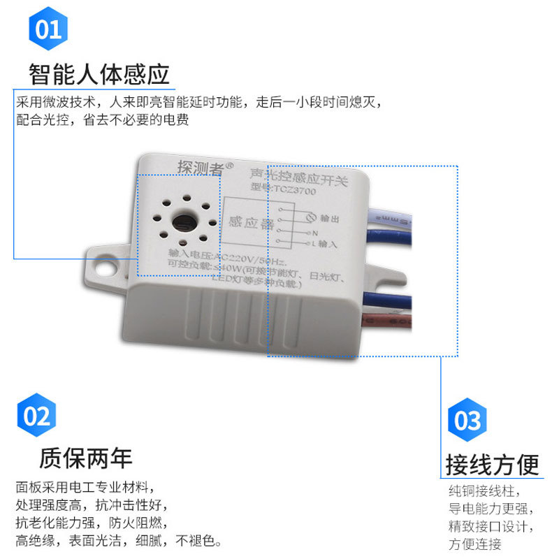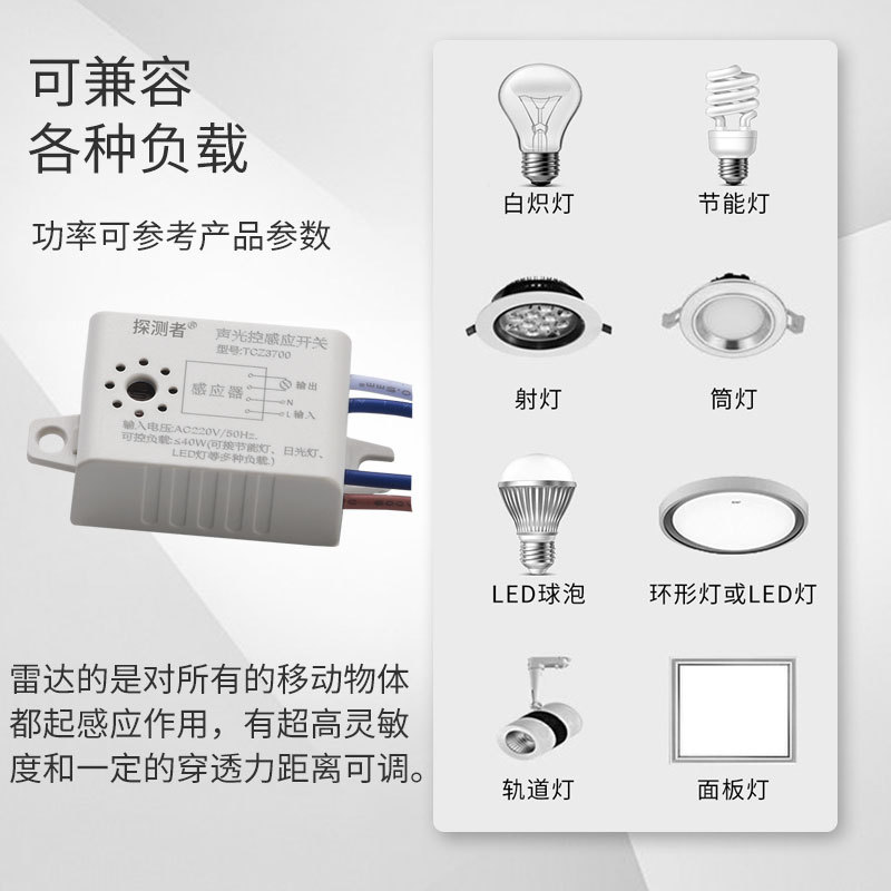 厂家暗装声光控延时开关面板楼过道物业光控声控感应器