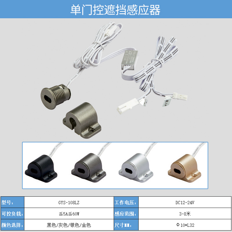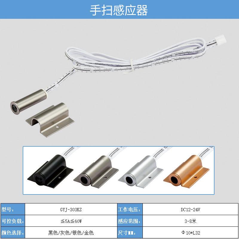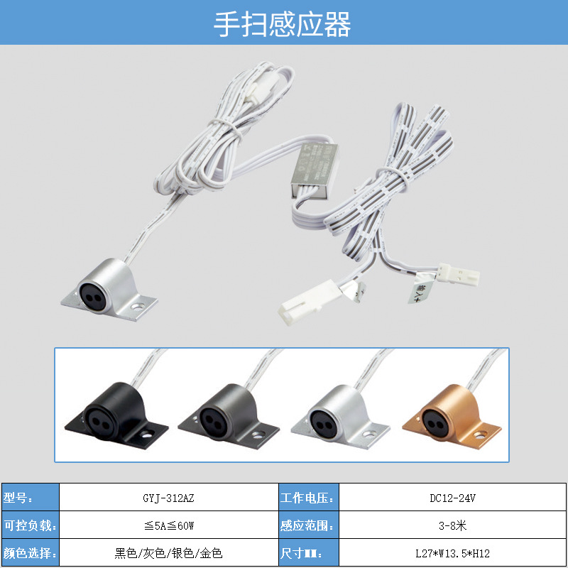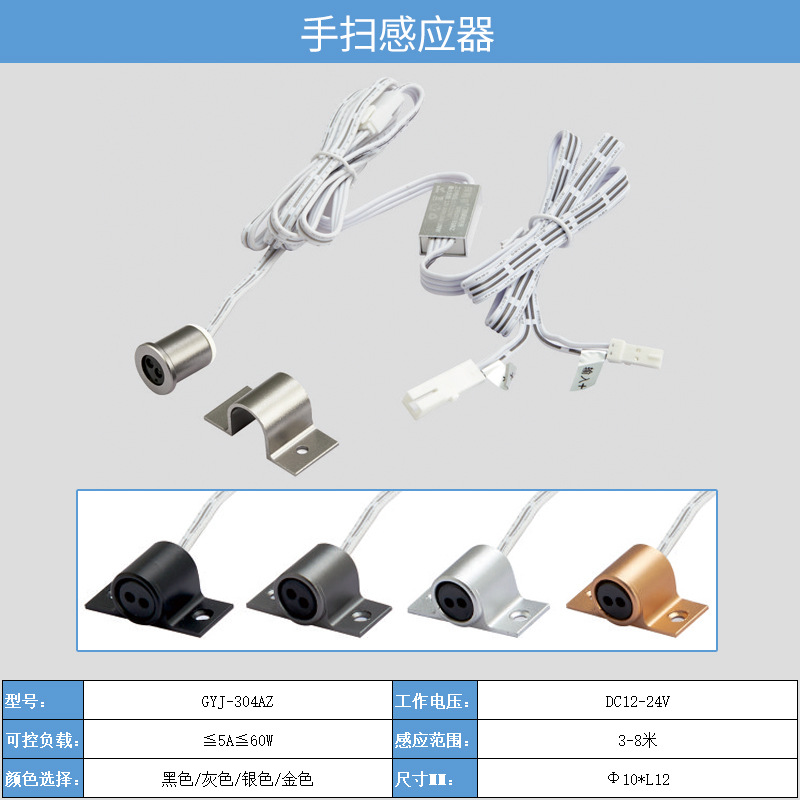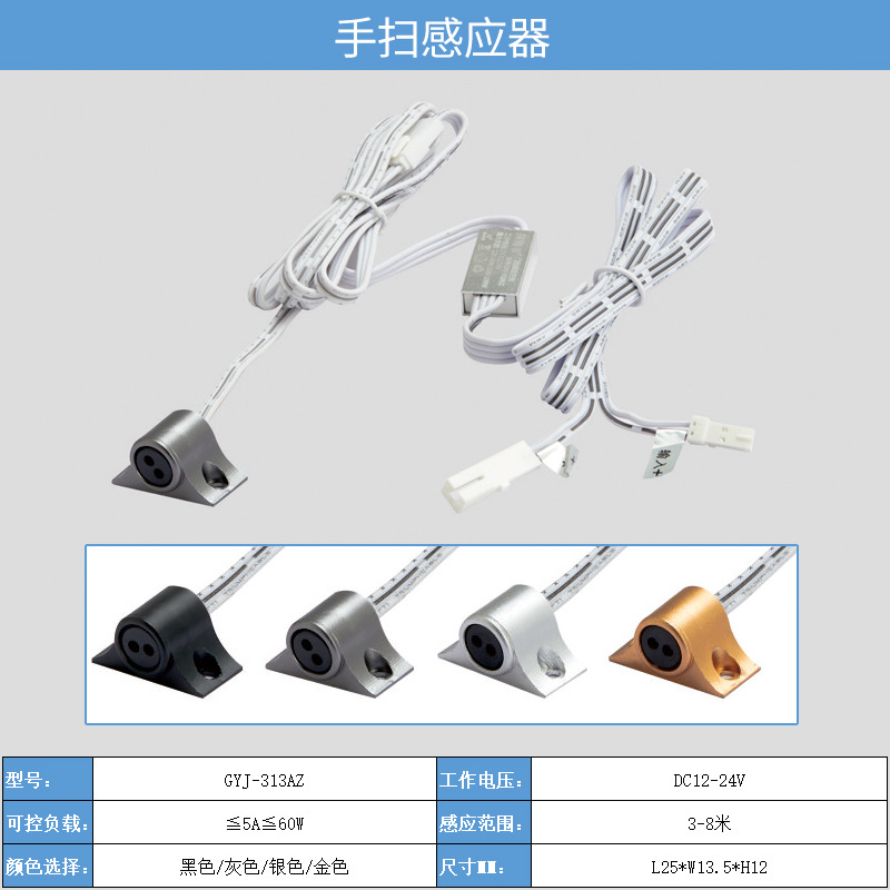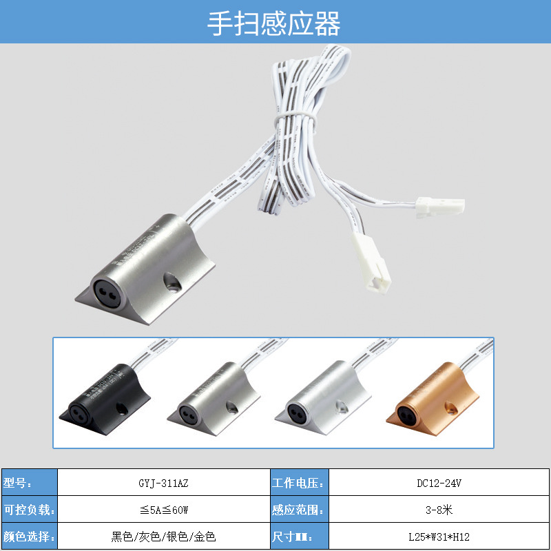 酒柜橱衣柜led灯感应开关12V触摸无线人体智能开关手扫门控感应器