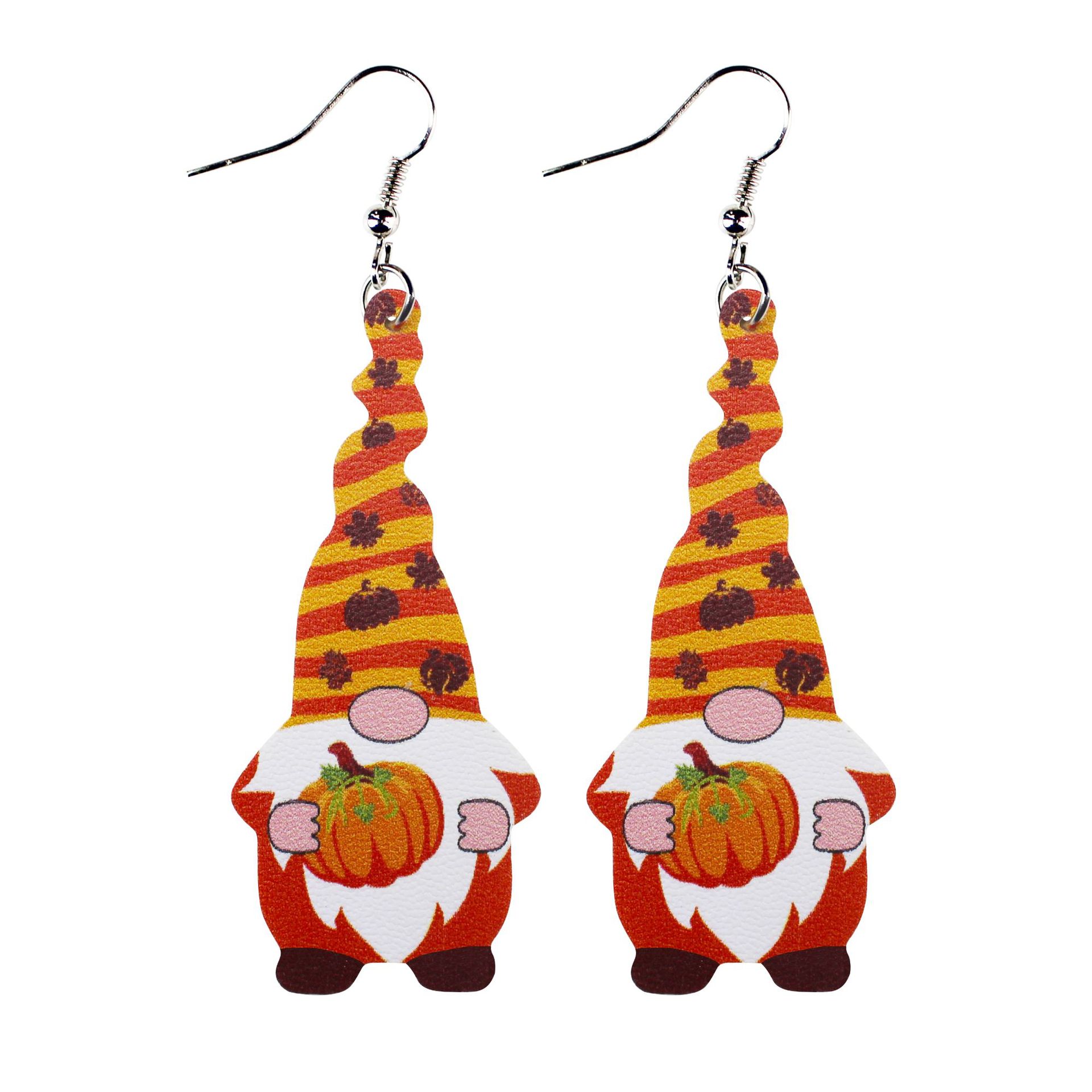 万圣节感恩节小精灵小矮人皮革耳环南瓜叶子节日装饰欧美跨境亚马