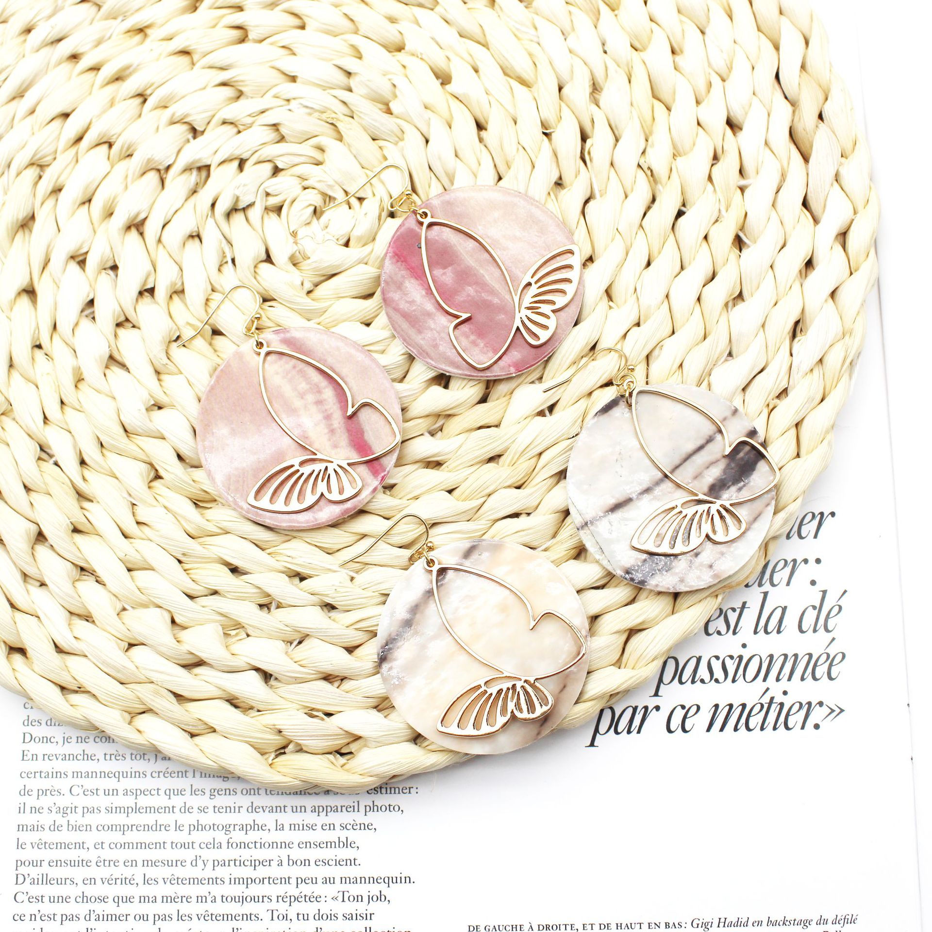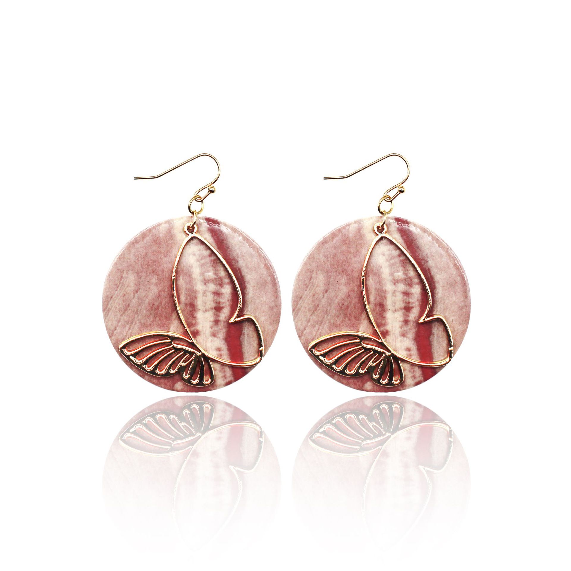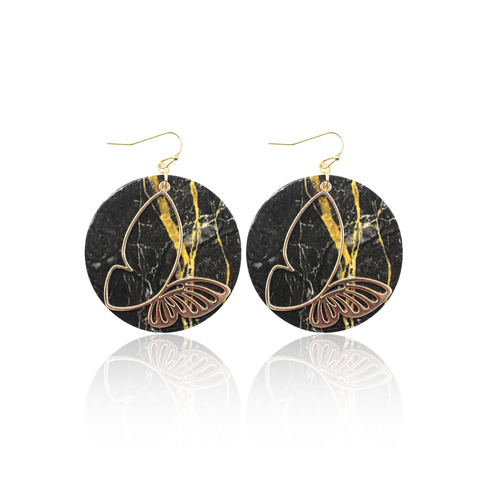 自然大理石纹路皮革PU耳环合金蝴蝶圆形跨境欧美亚马逊