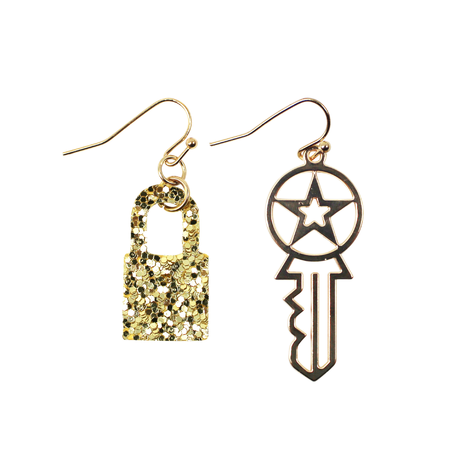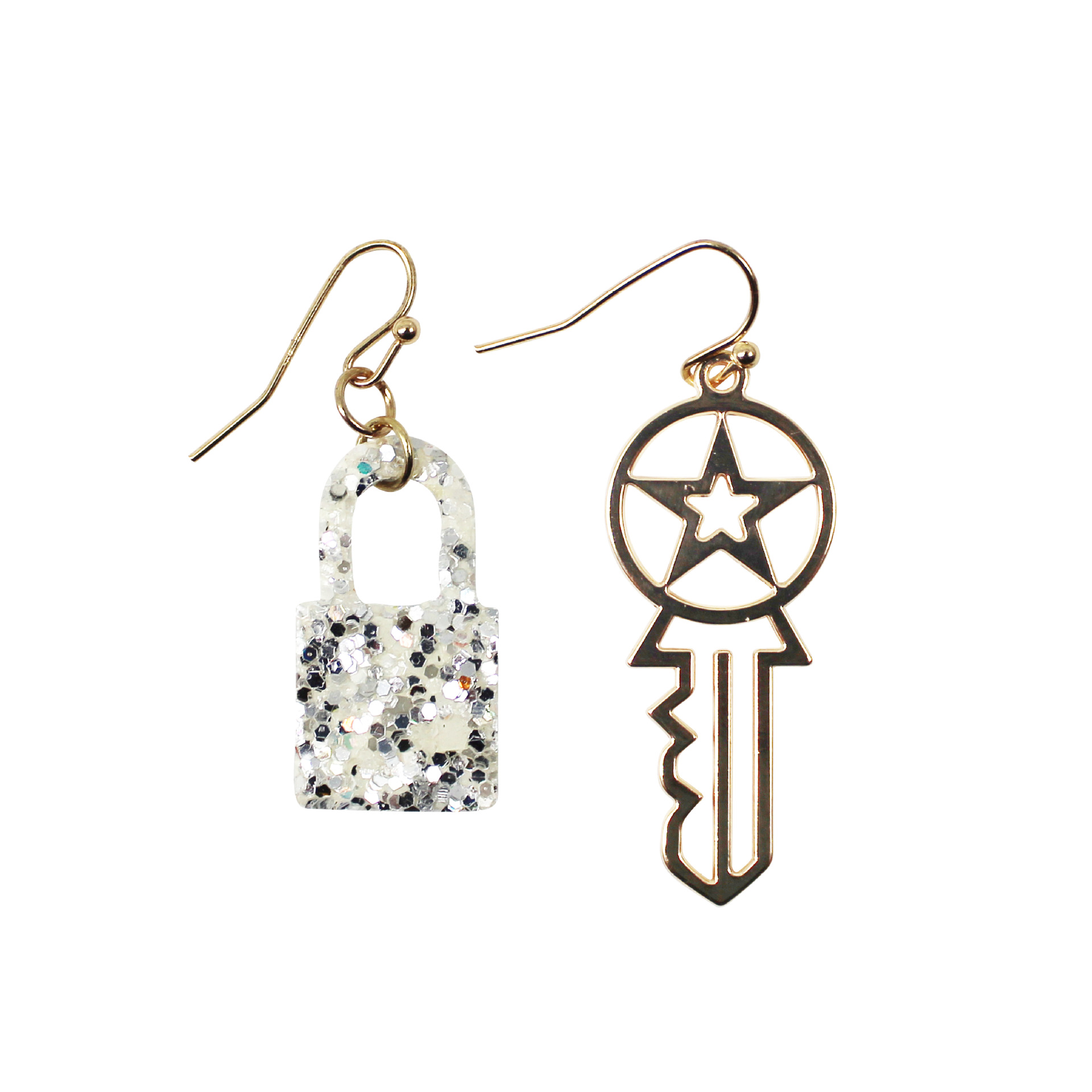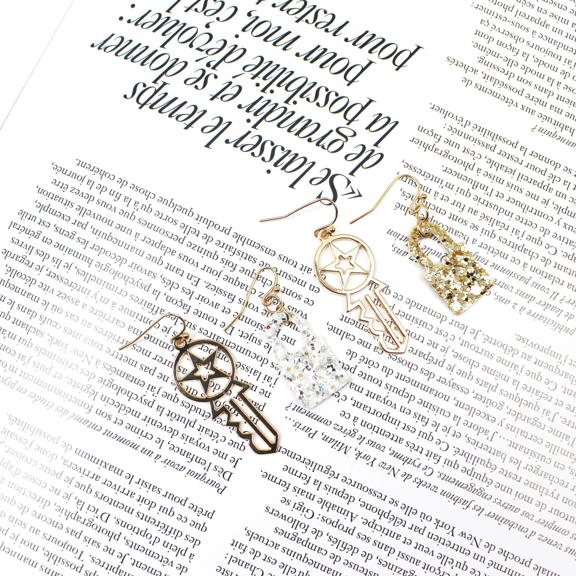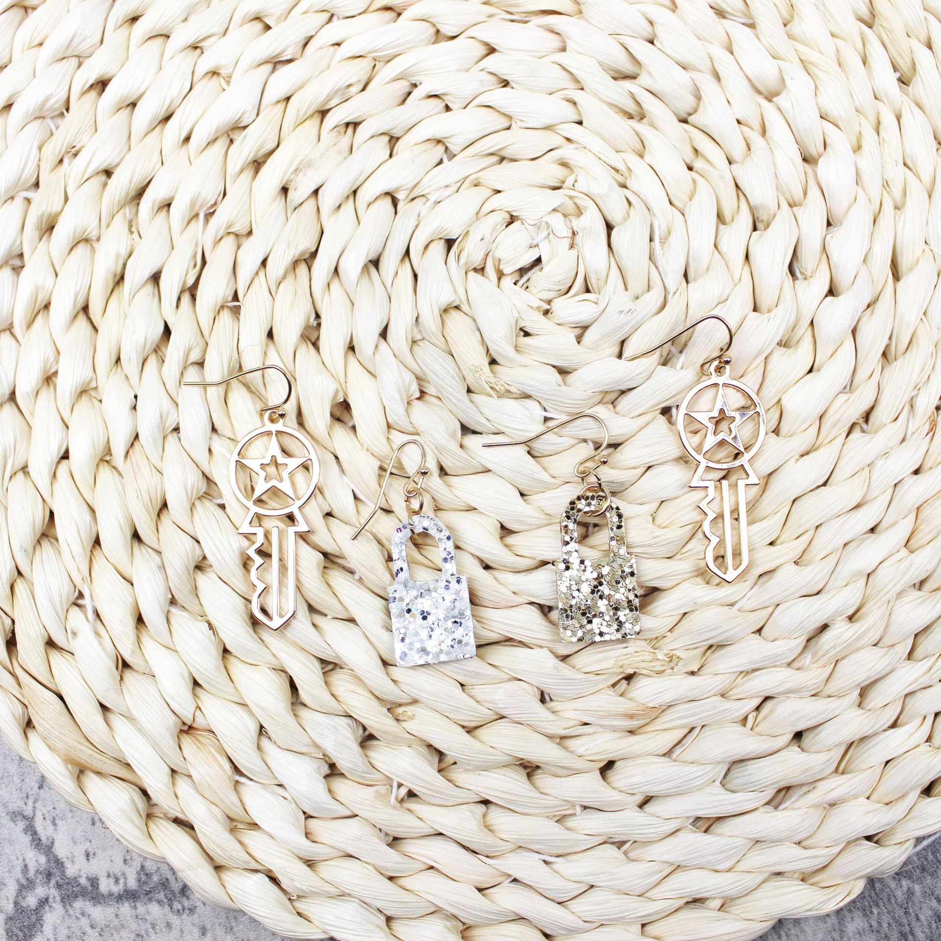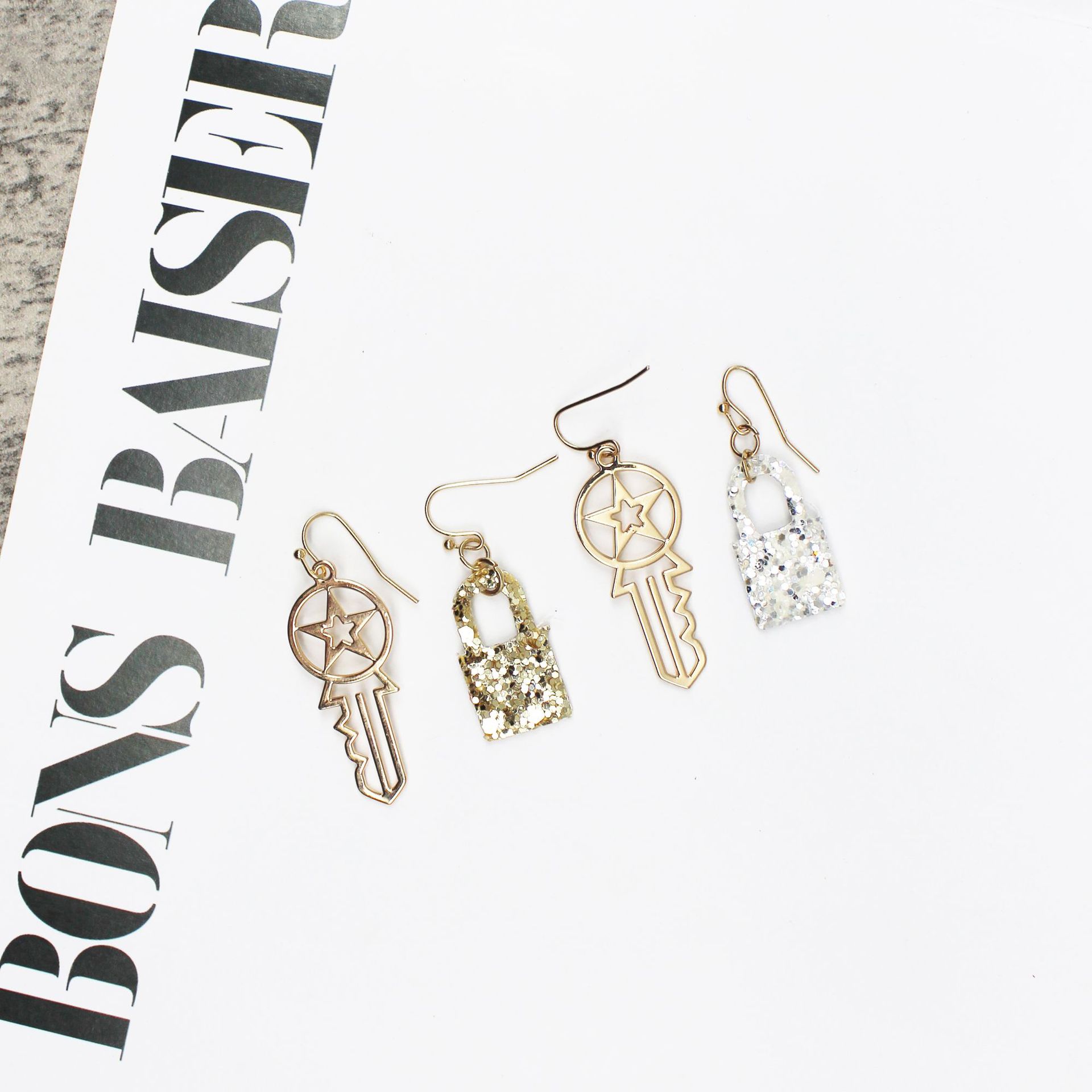 合金钥匙锁组合耳环亮片颗粒皮革原创耳饰女跨境欧美亚马逊