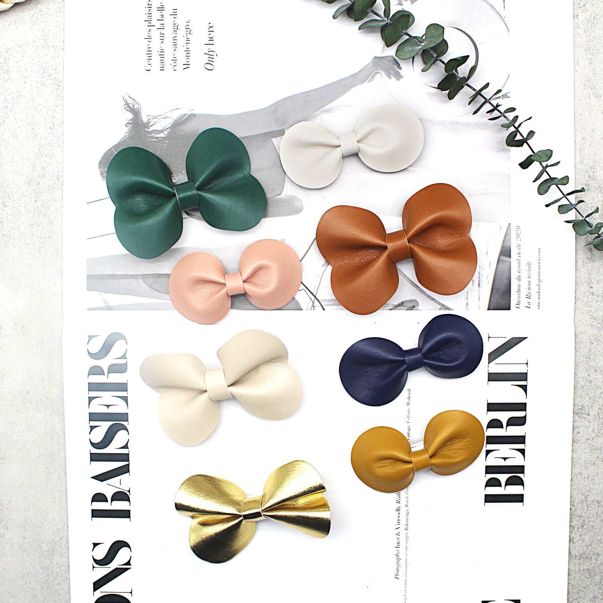 皮革蝴蝶结鸭嘴夹发饰发卡简约时尚女套装跨境欧美亚马逊