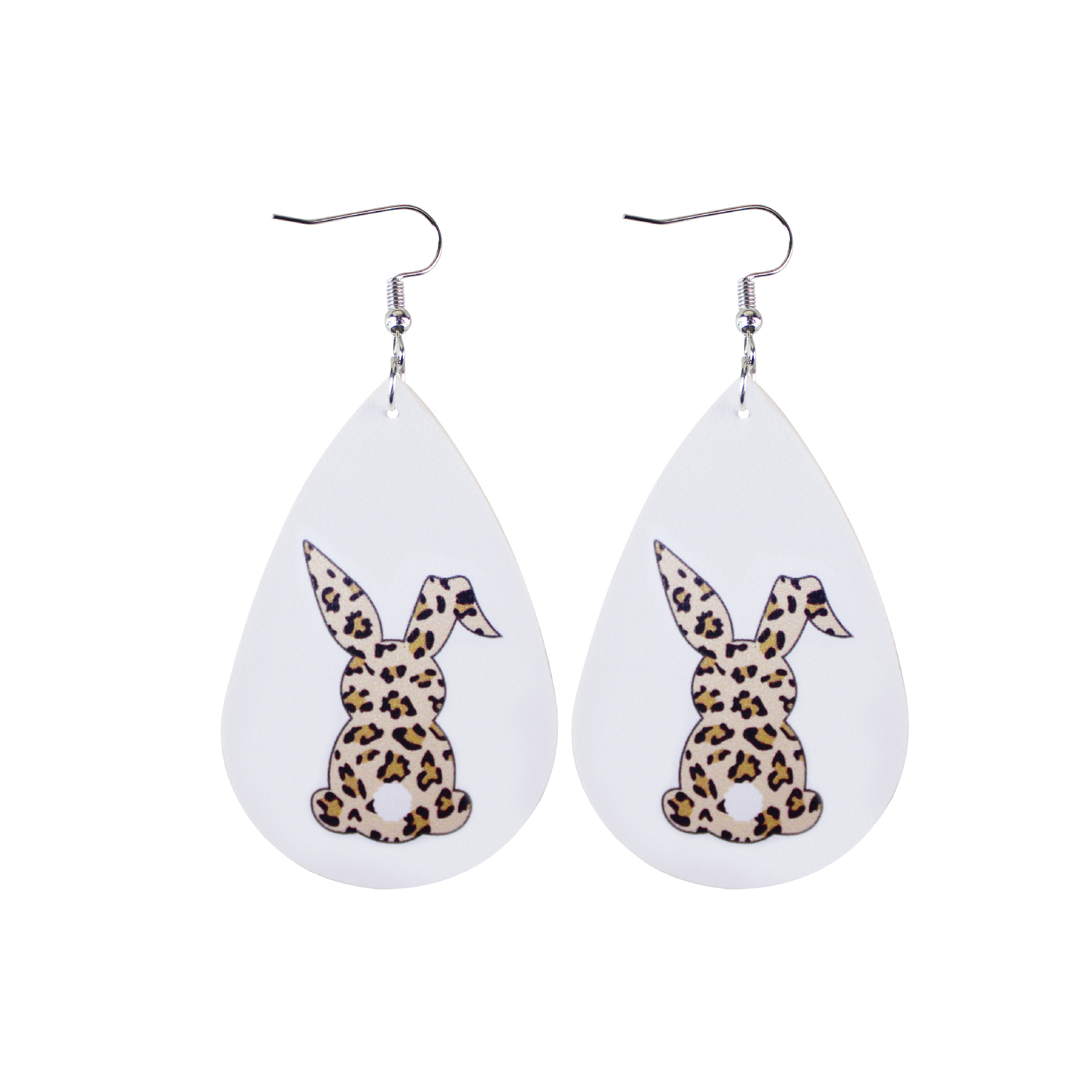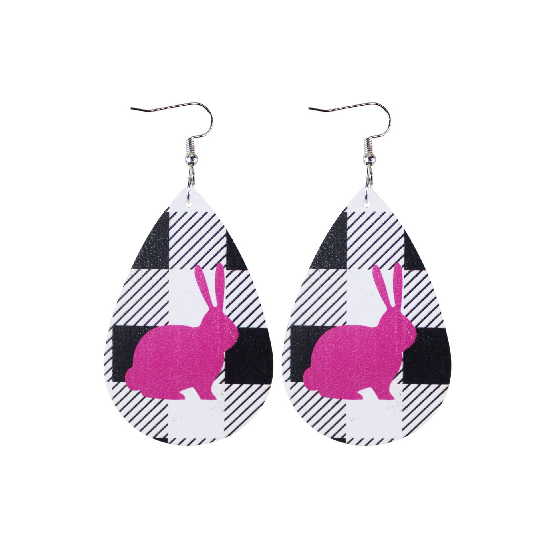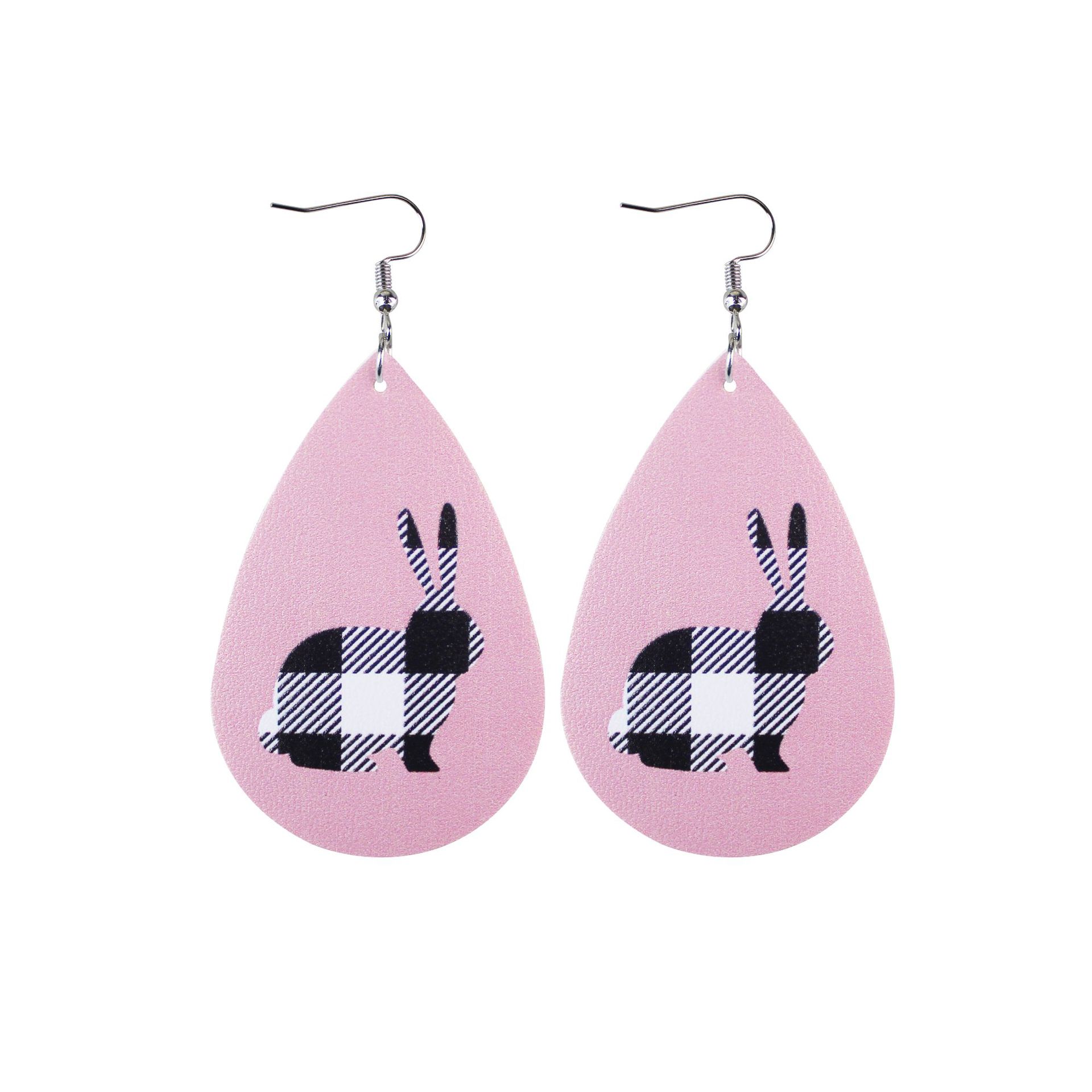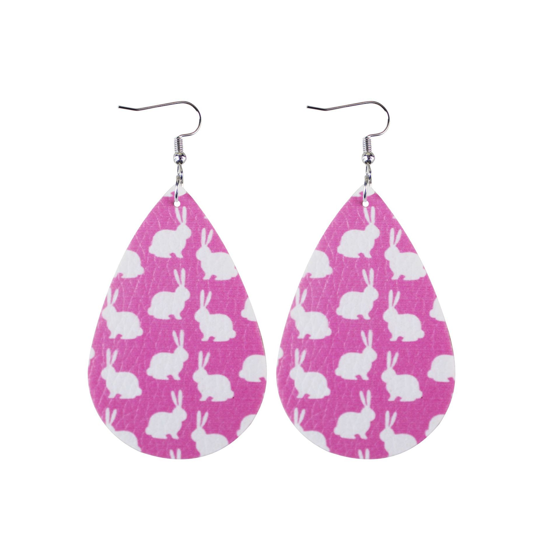 2022复活节耳环新款皮革水滴双面印花耳环跨境兔子彩蛋耳饰现货