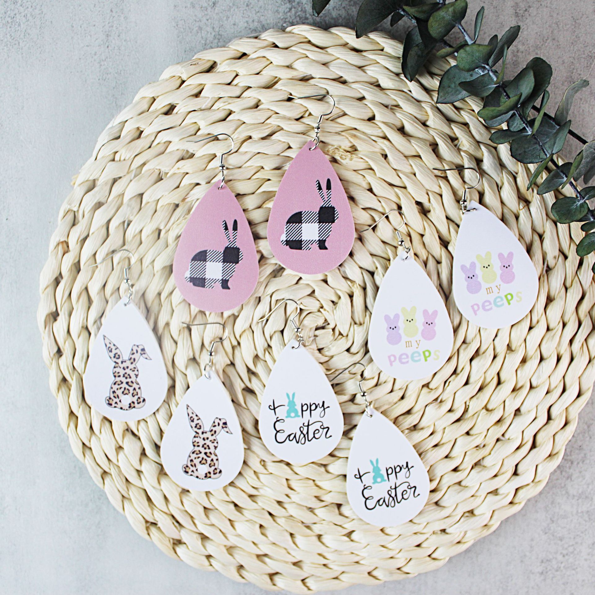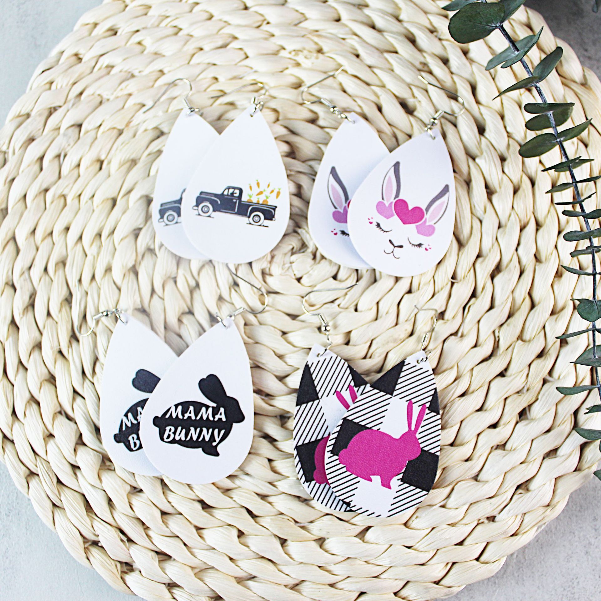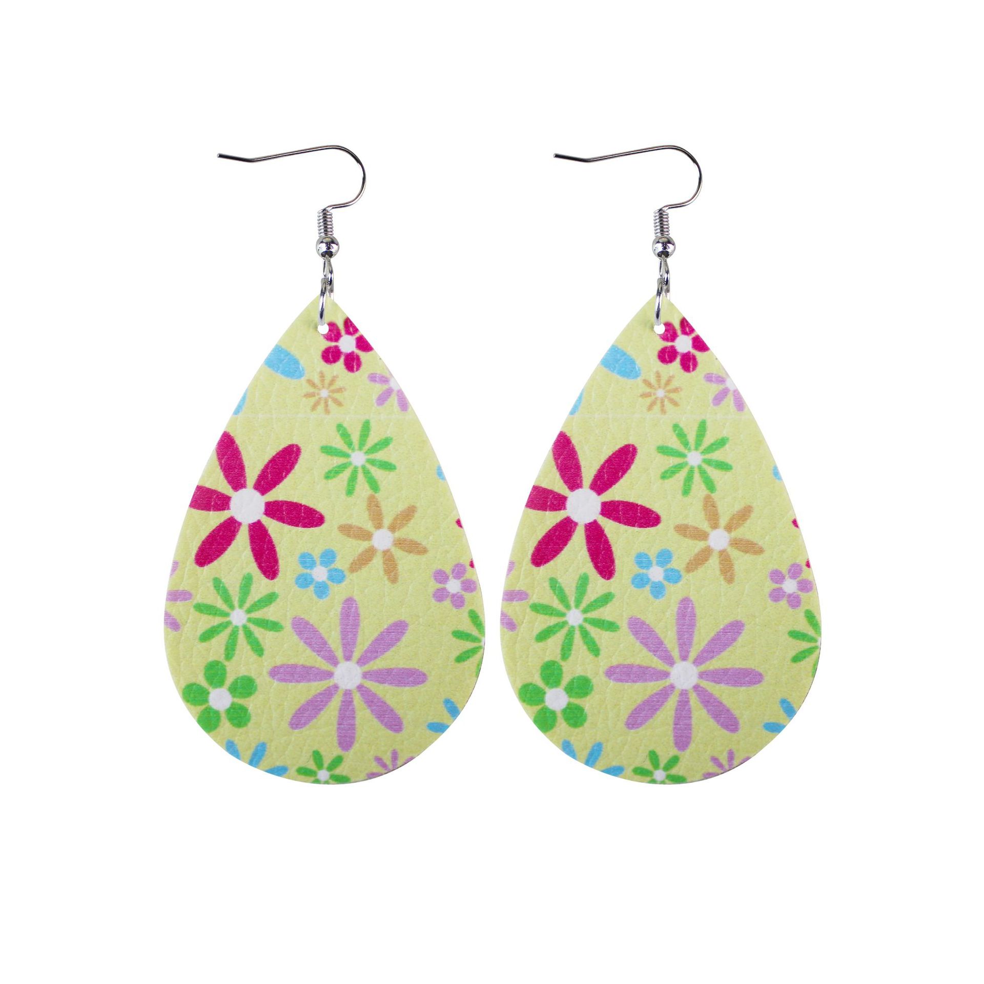 2022复活节耳环新款皮革水滴双面印花耳环跨境兔子彩蛋耳饰现货