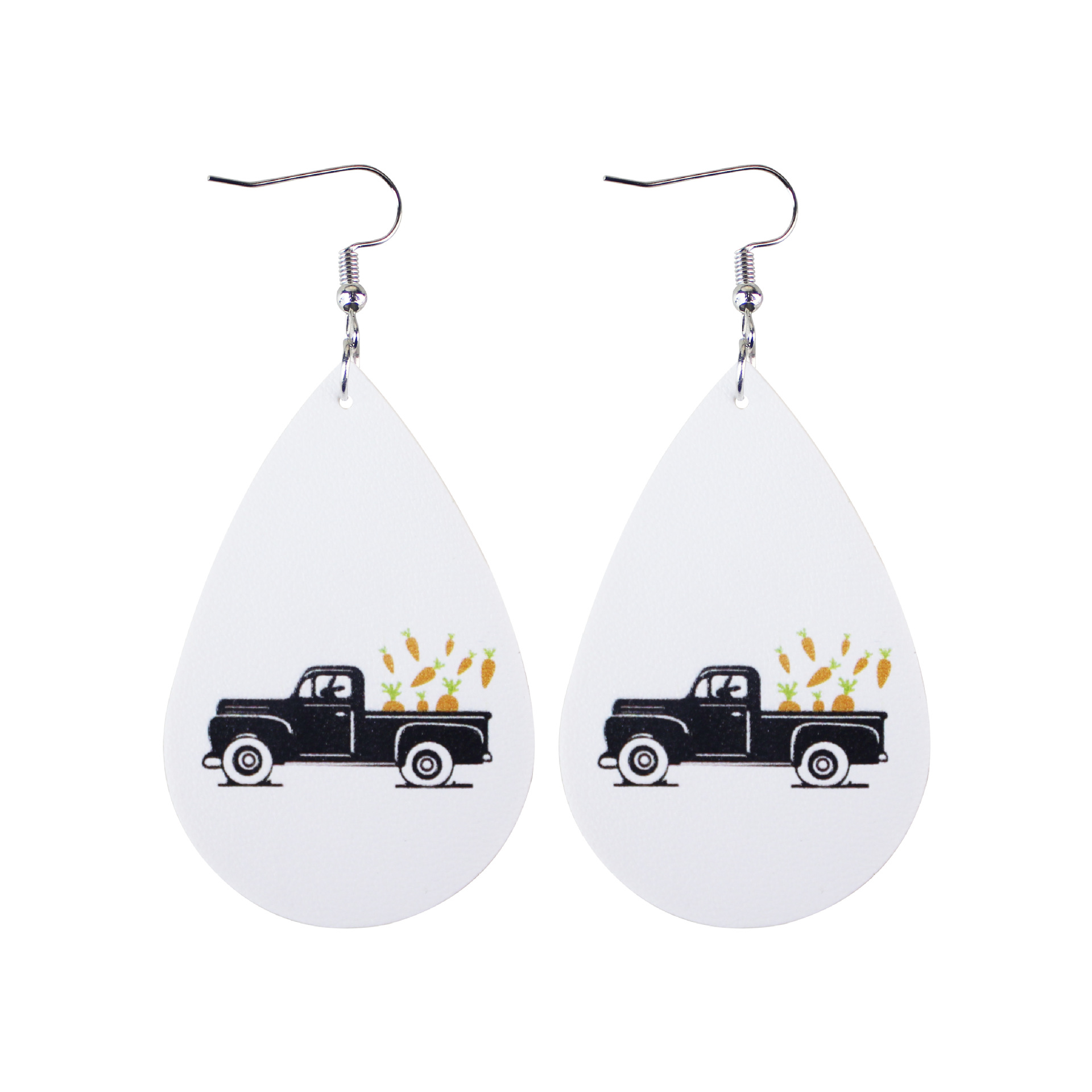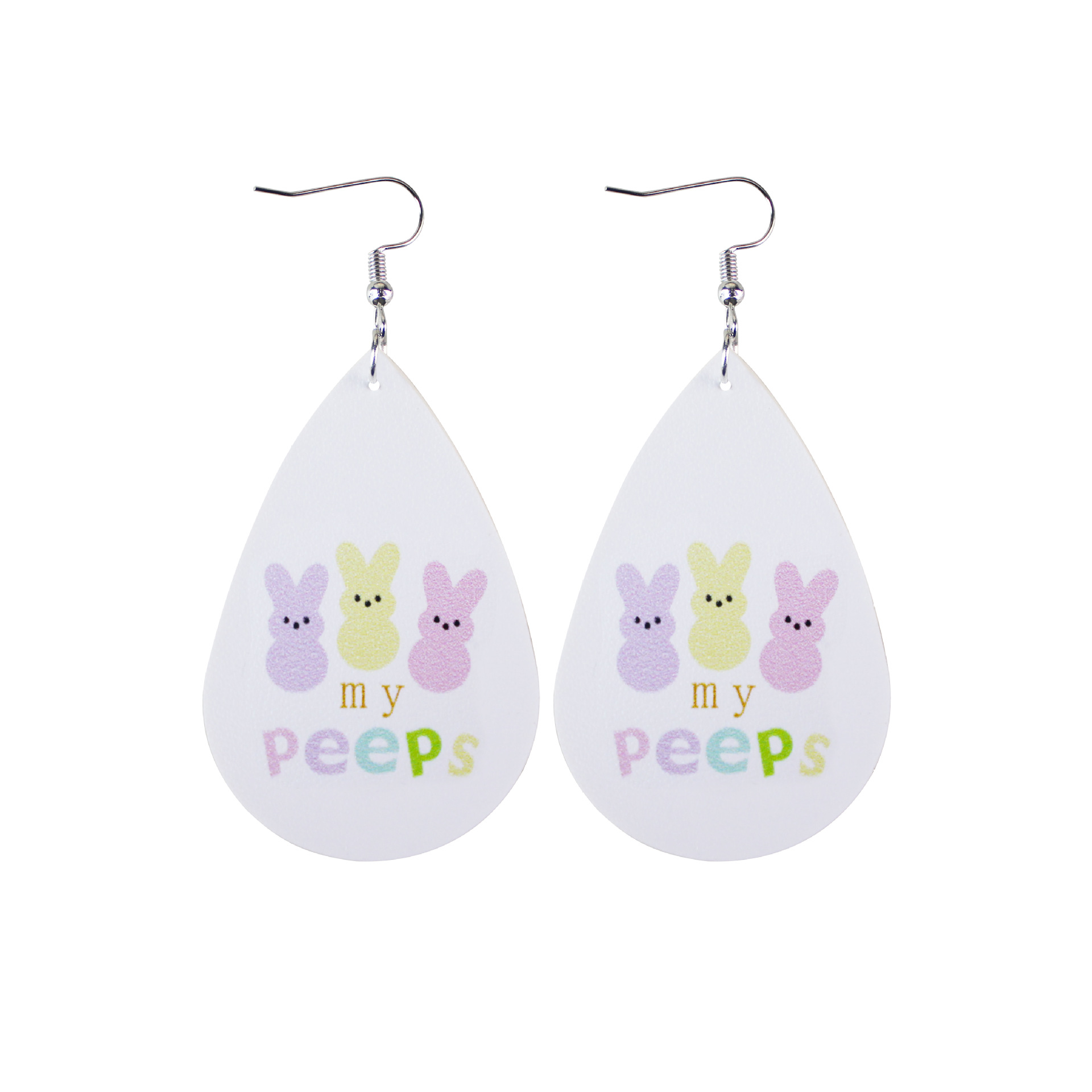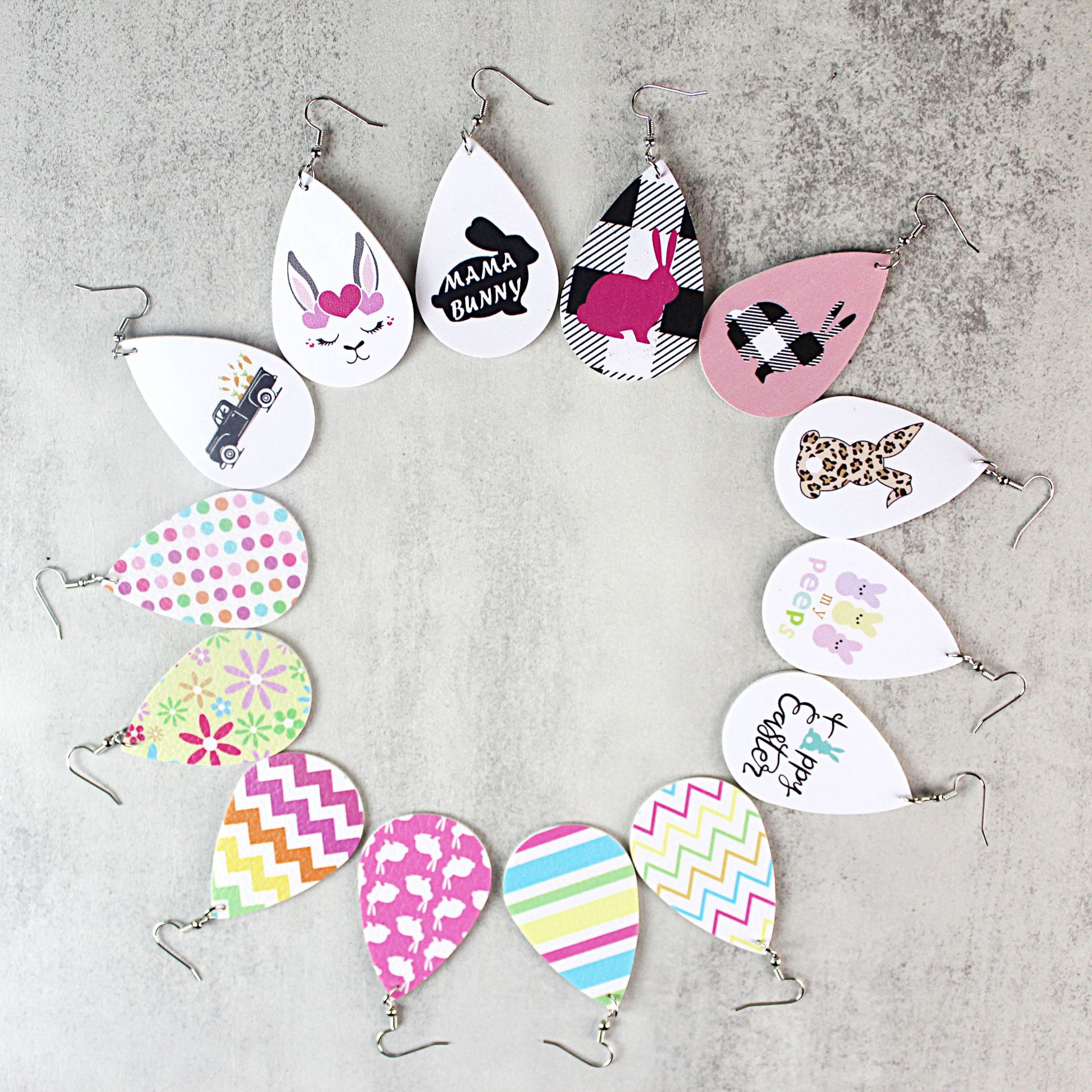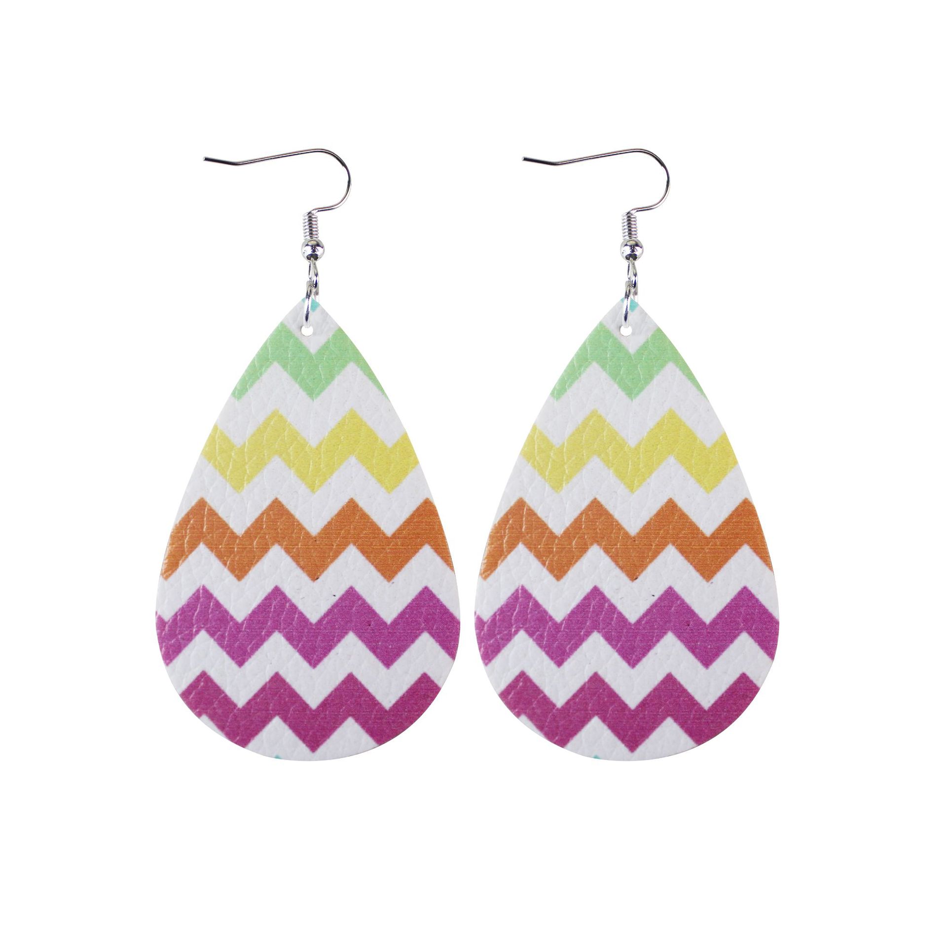 2022复活节耳环新款皮革水滴双面印花耳环跨境兔子彩蛋耳饰现货