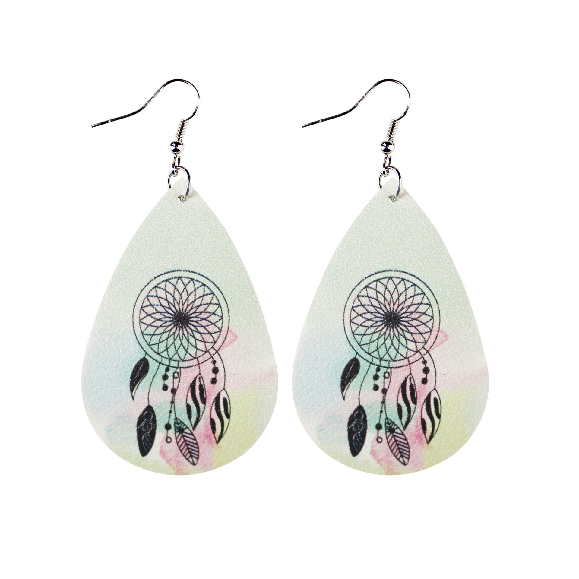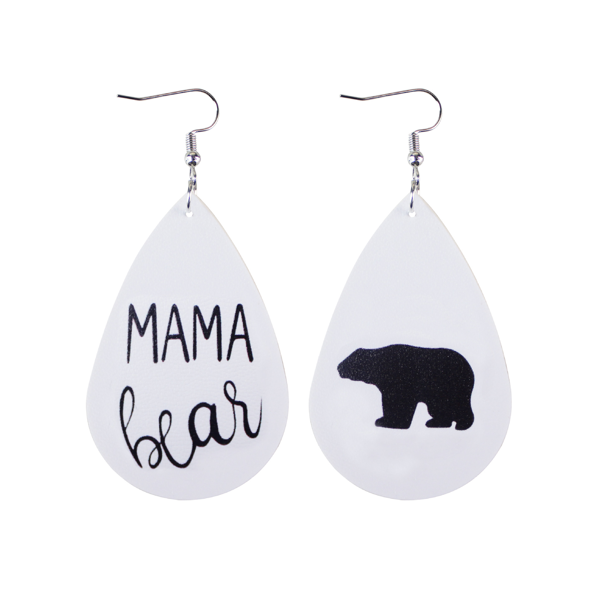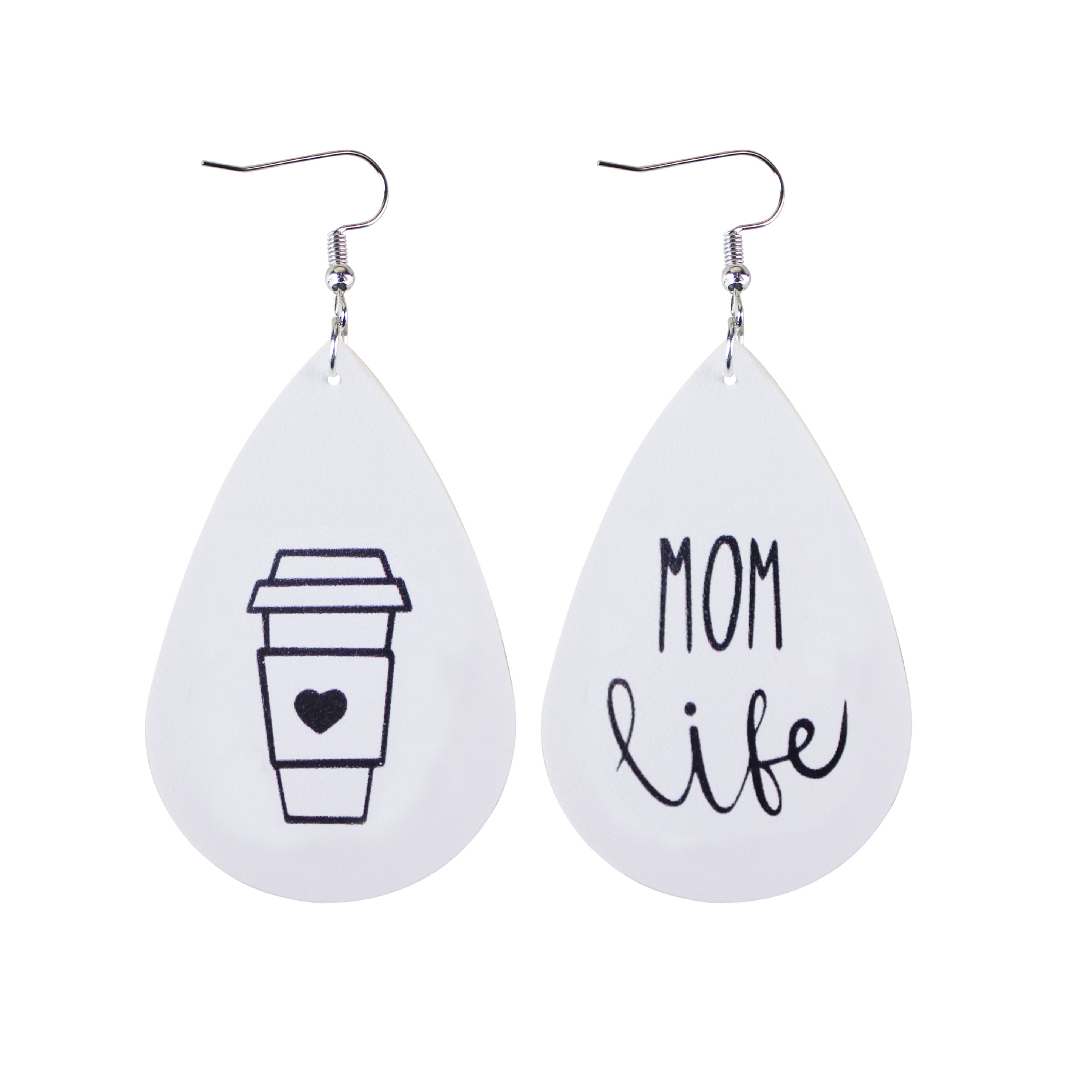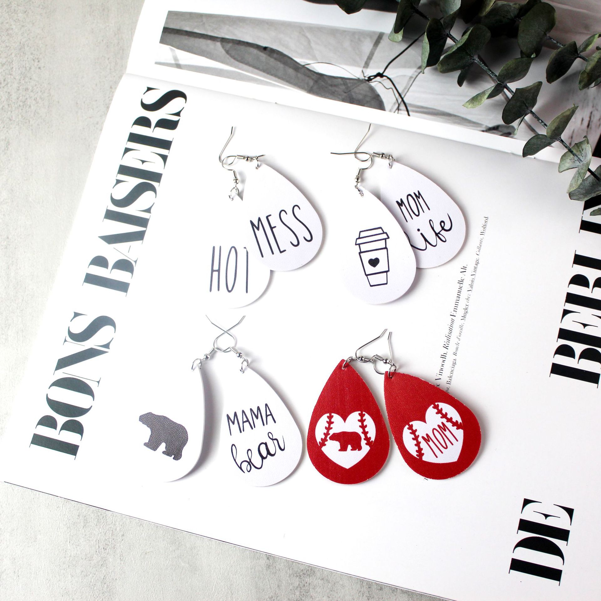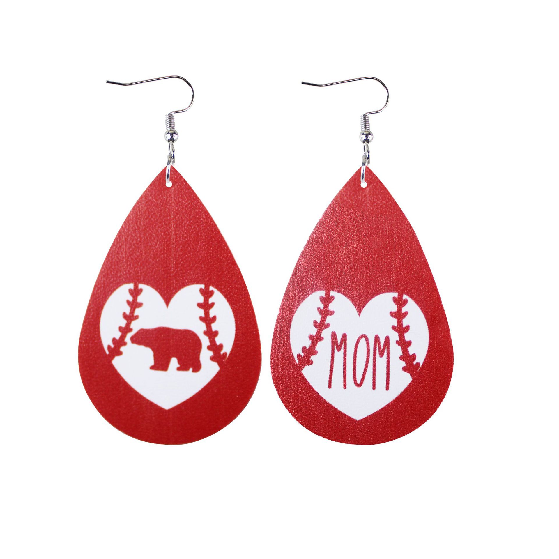 新款耳环母亲节皮革水滴耳环双面印刷跨境饰品欧美亚马逊妈妈礼物