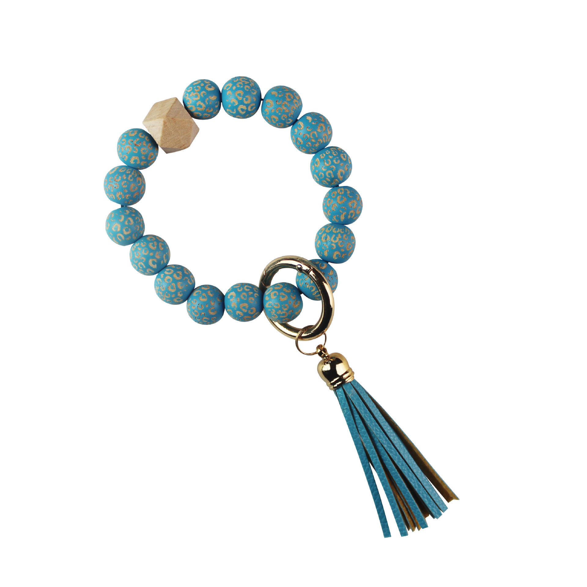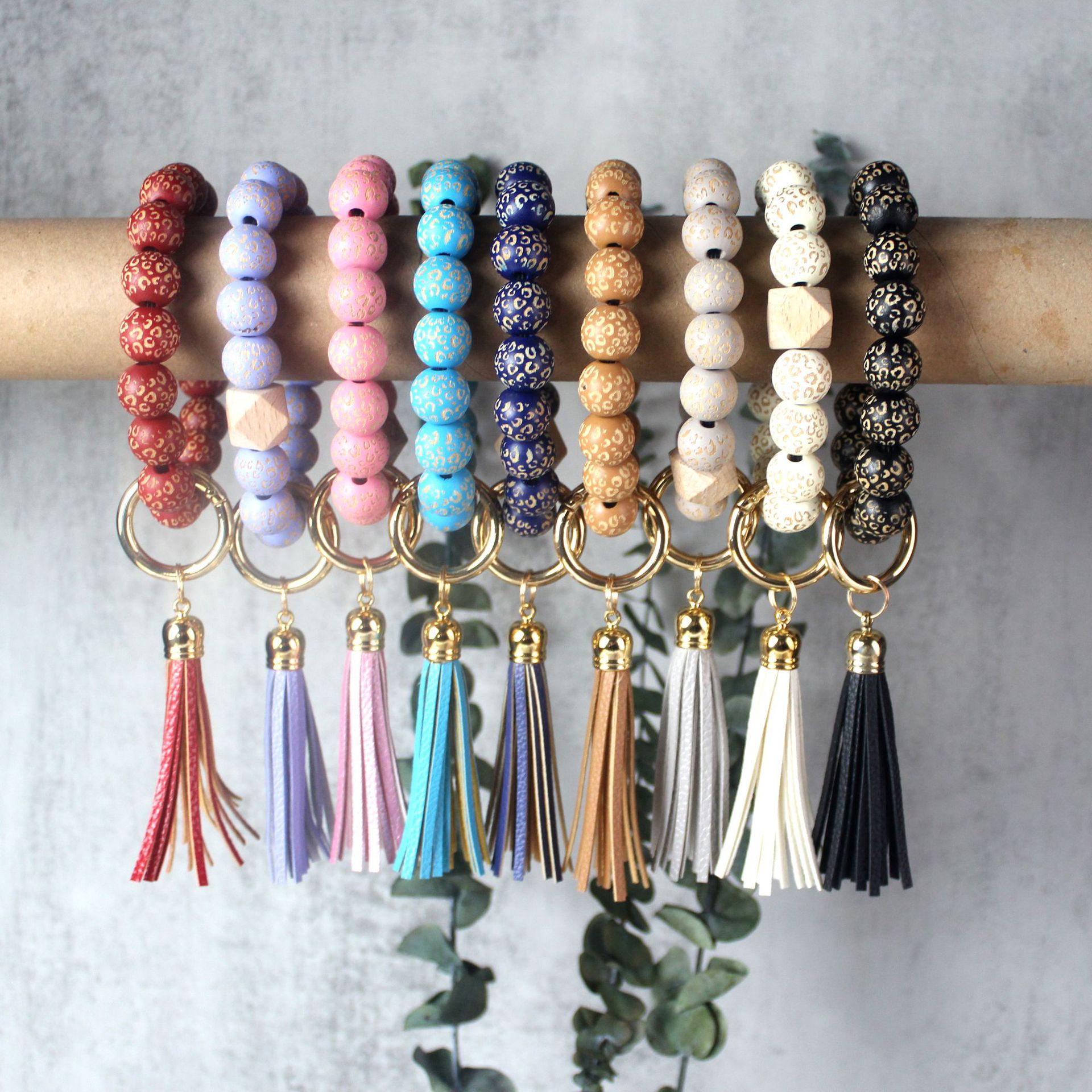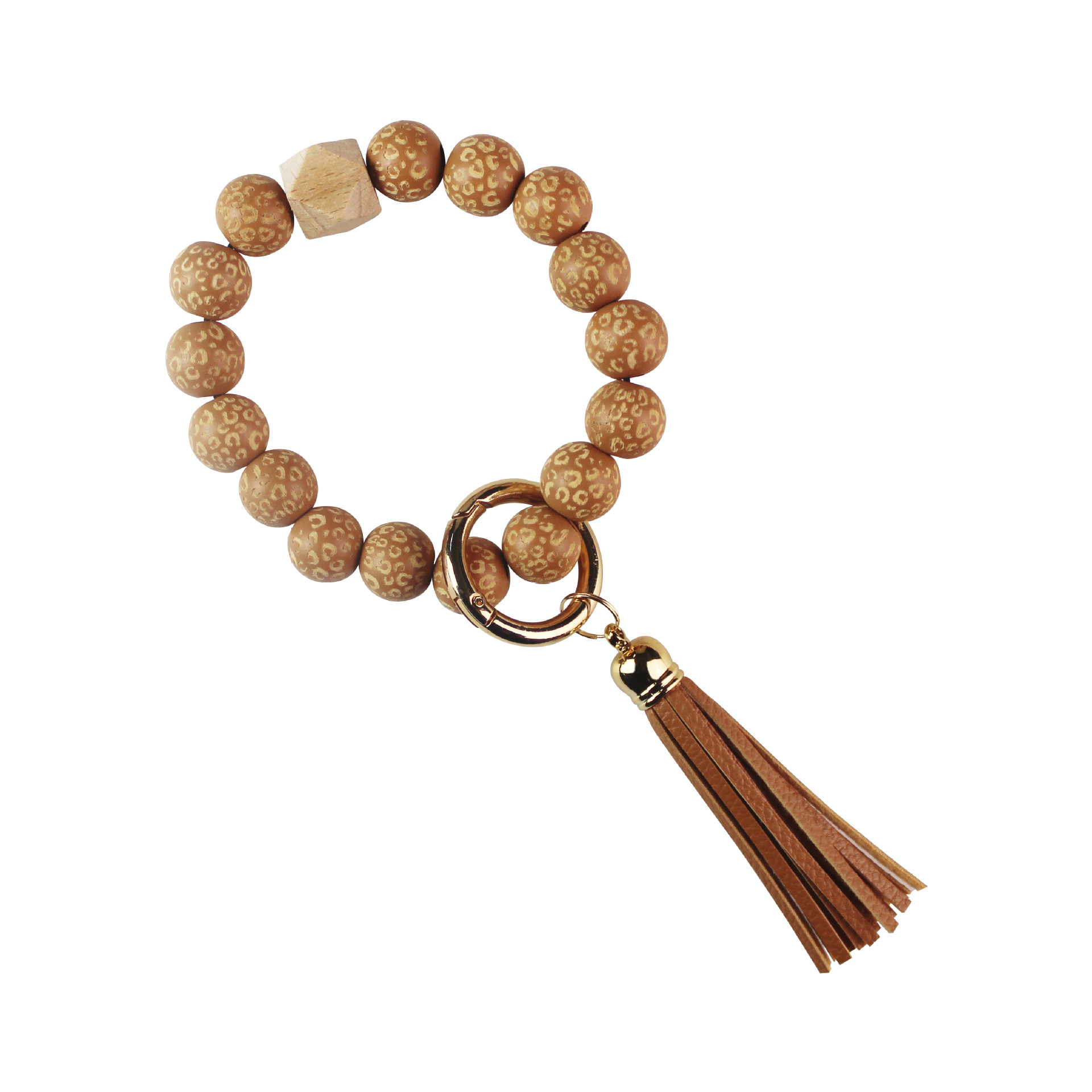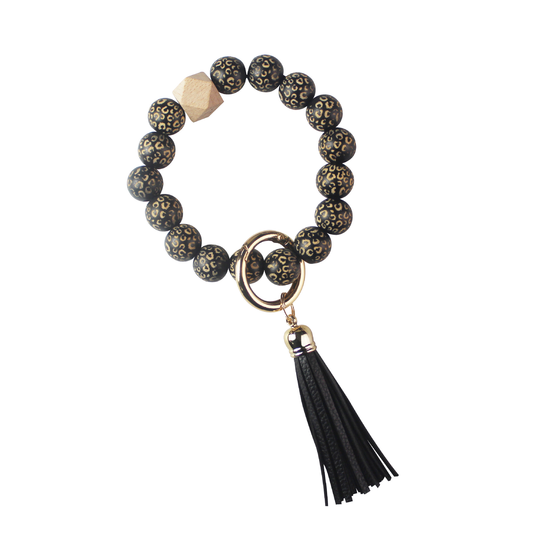 豹纹木珠手环流苏挂件手机包包钥匙扣木头皮革合金手串跨境亚马逊