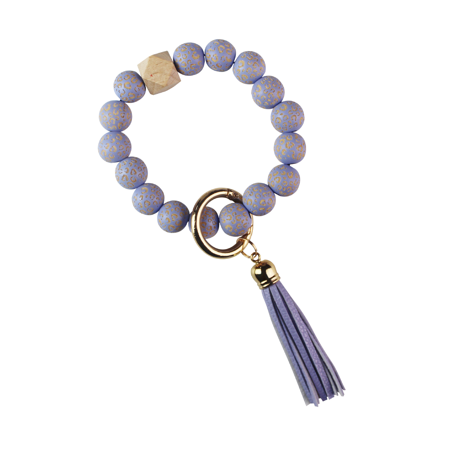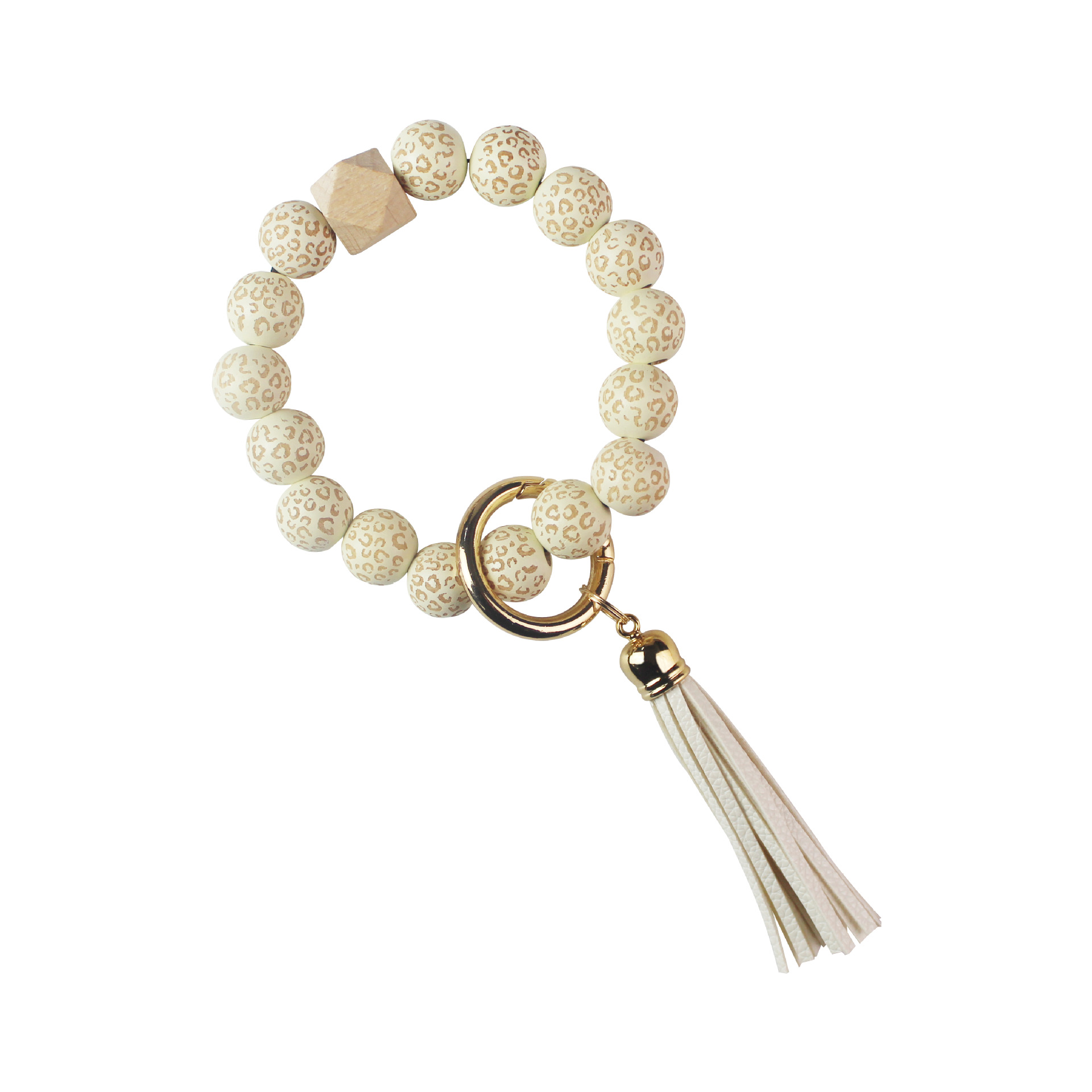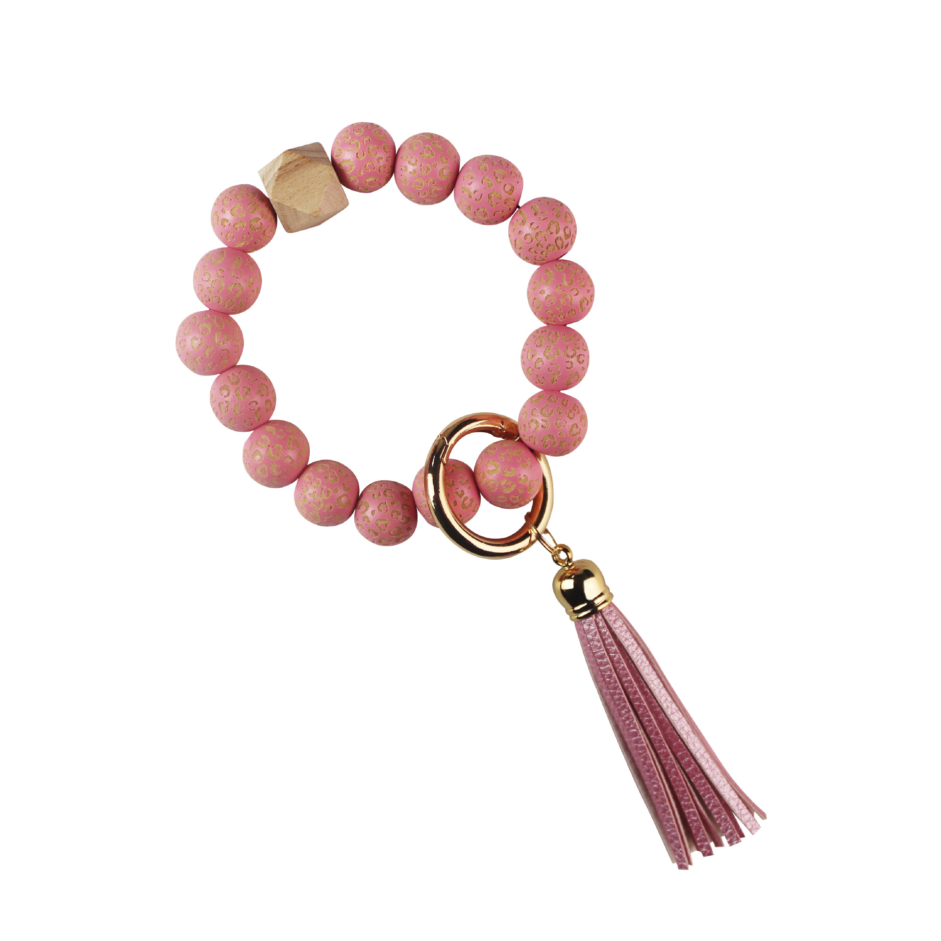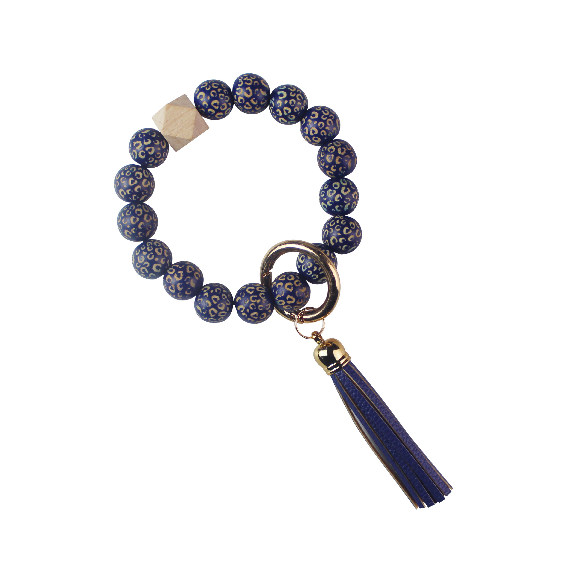 豹纹木珠手环流苏挂件手机包包钥匙扣木头皮革合金手串跨境亚马逊