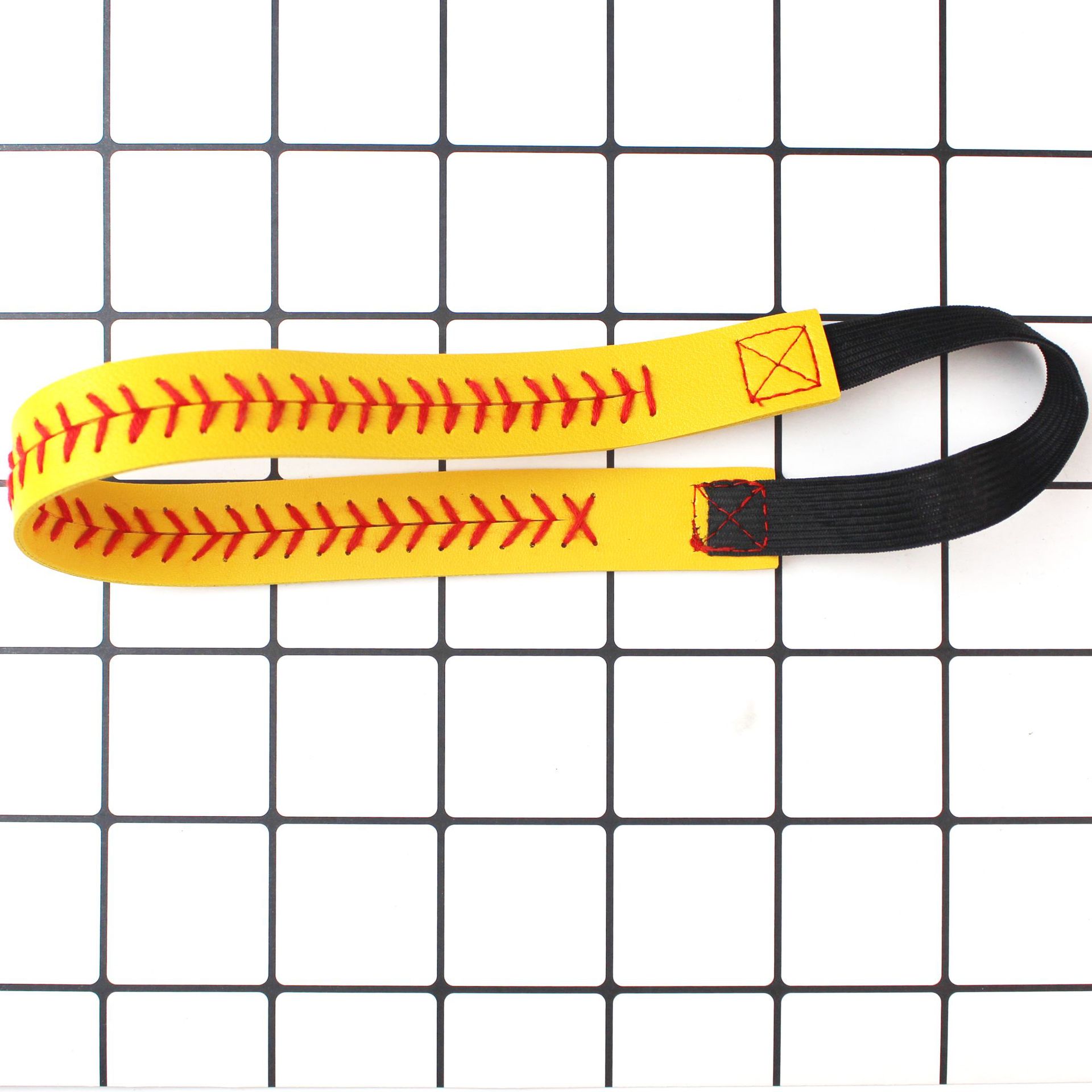 棒球纹路运动风皮革发带松紧带头饰日常佩戴发饰手工缝制