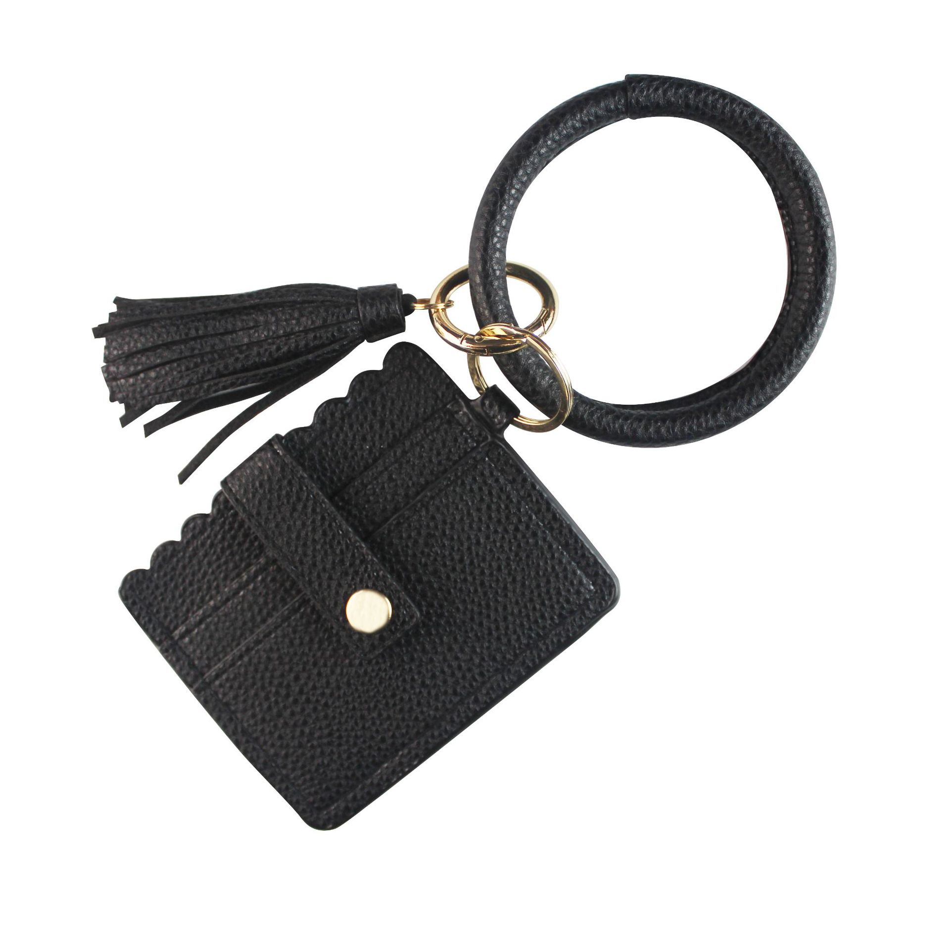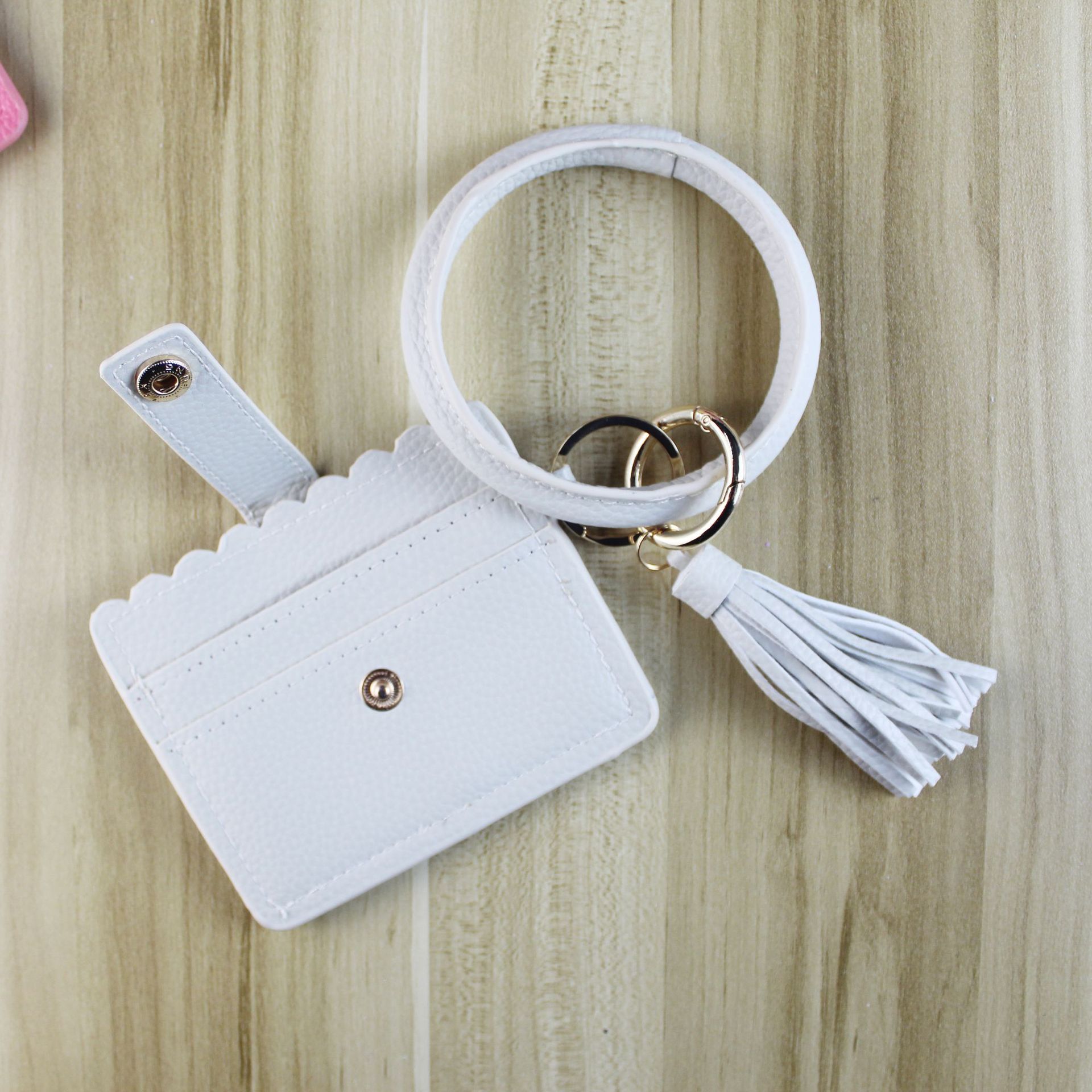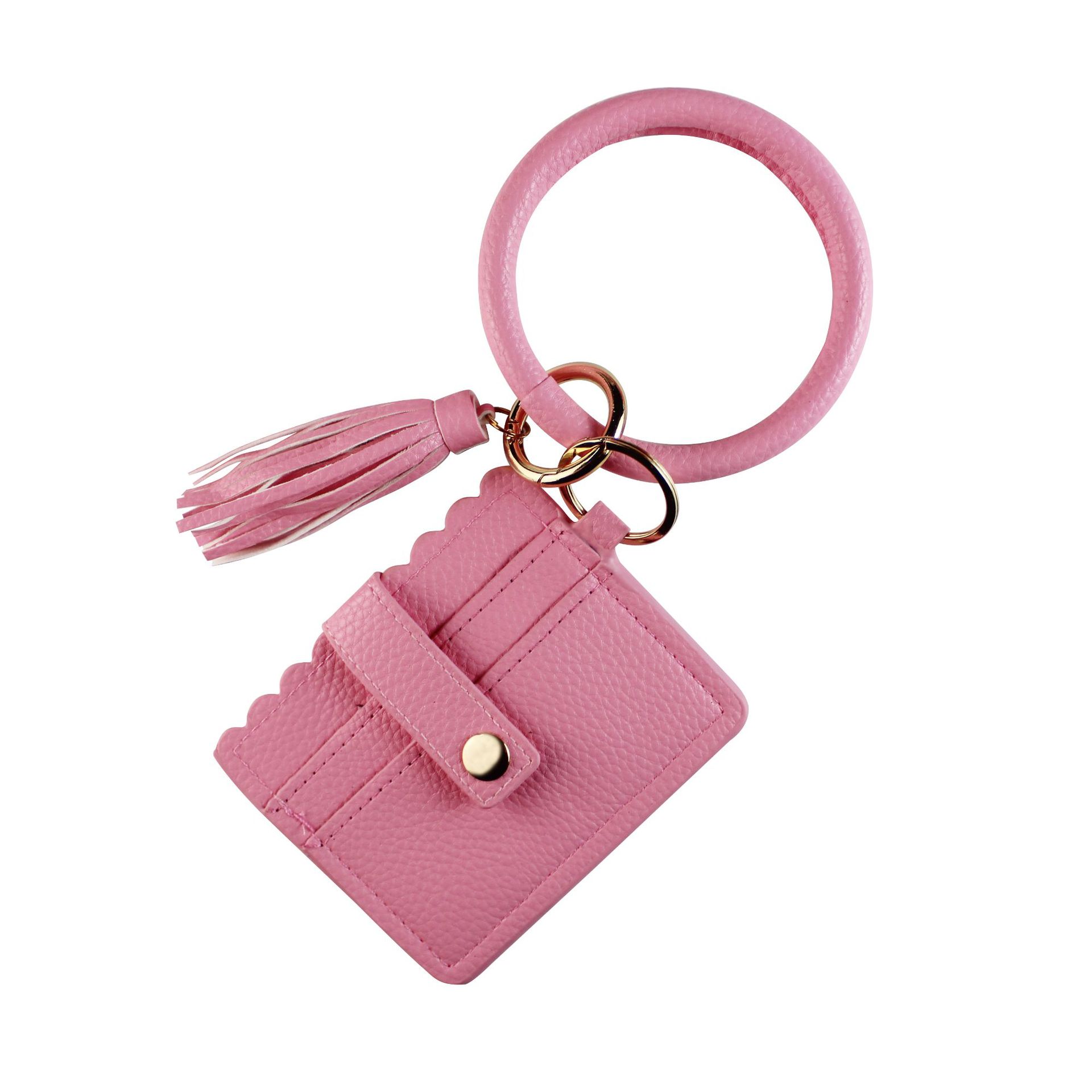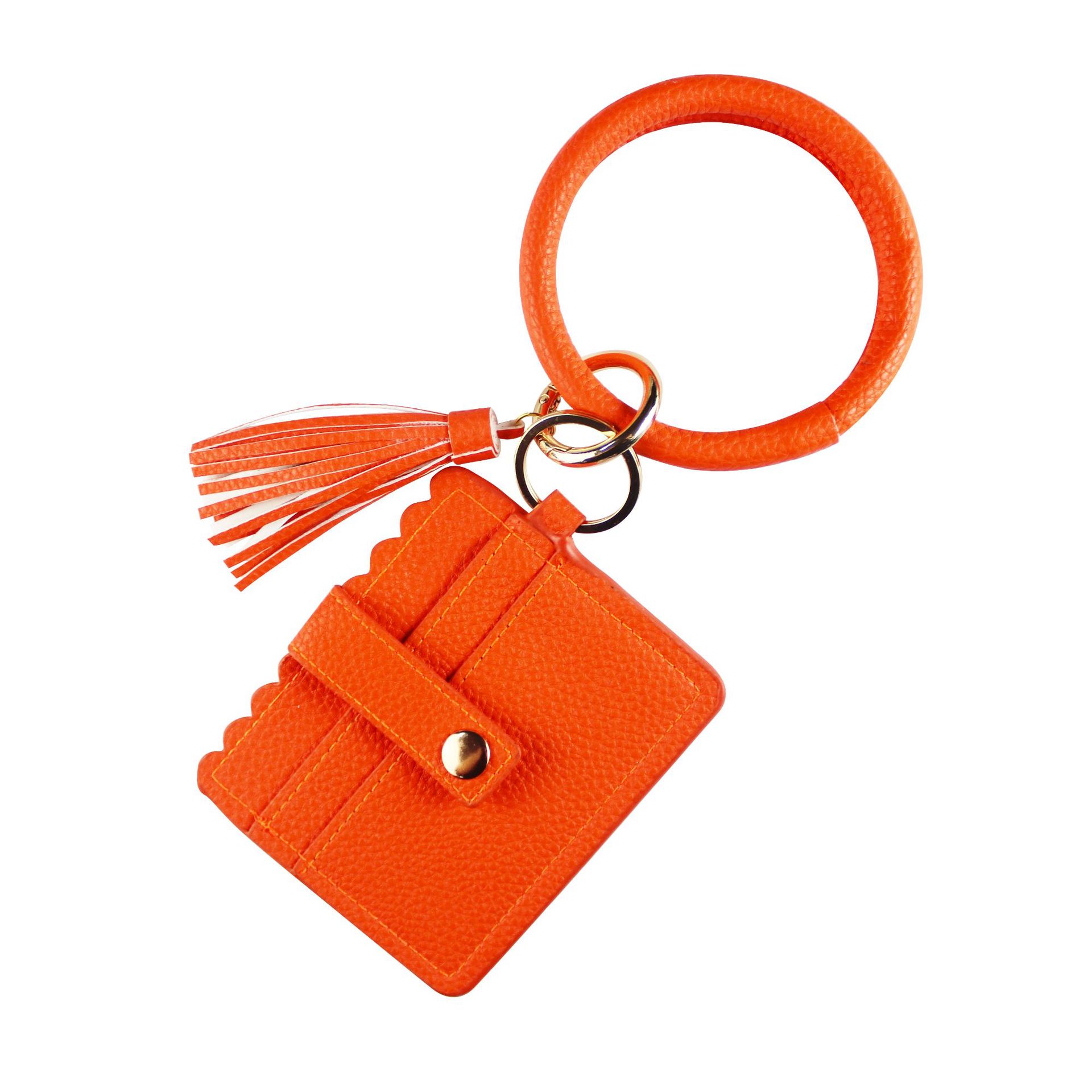油边手链钱包荔枝纹纯色皮革手环流苏手腕汽车钥匙扣手镯花边卡包