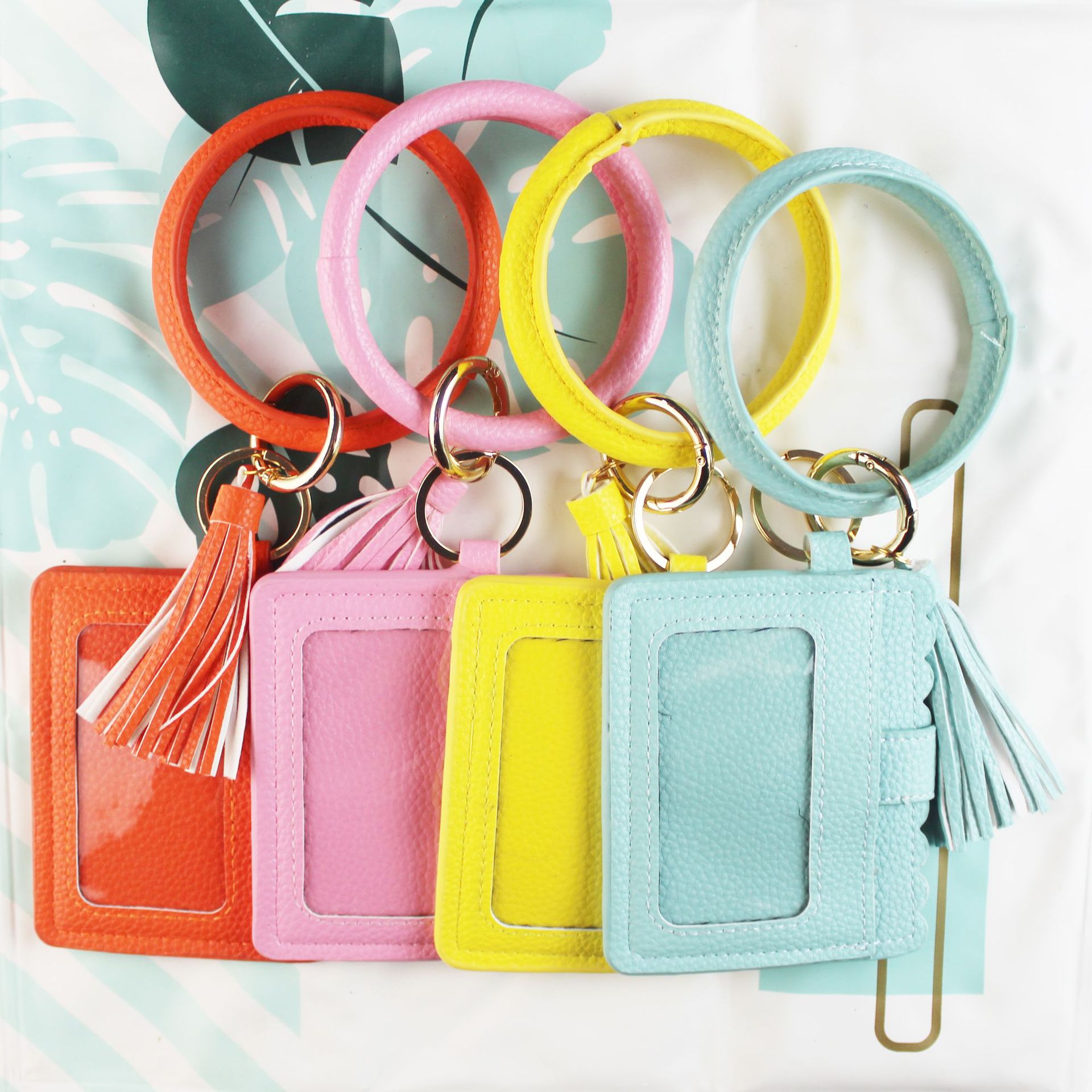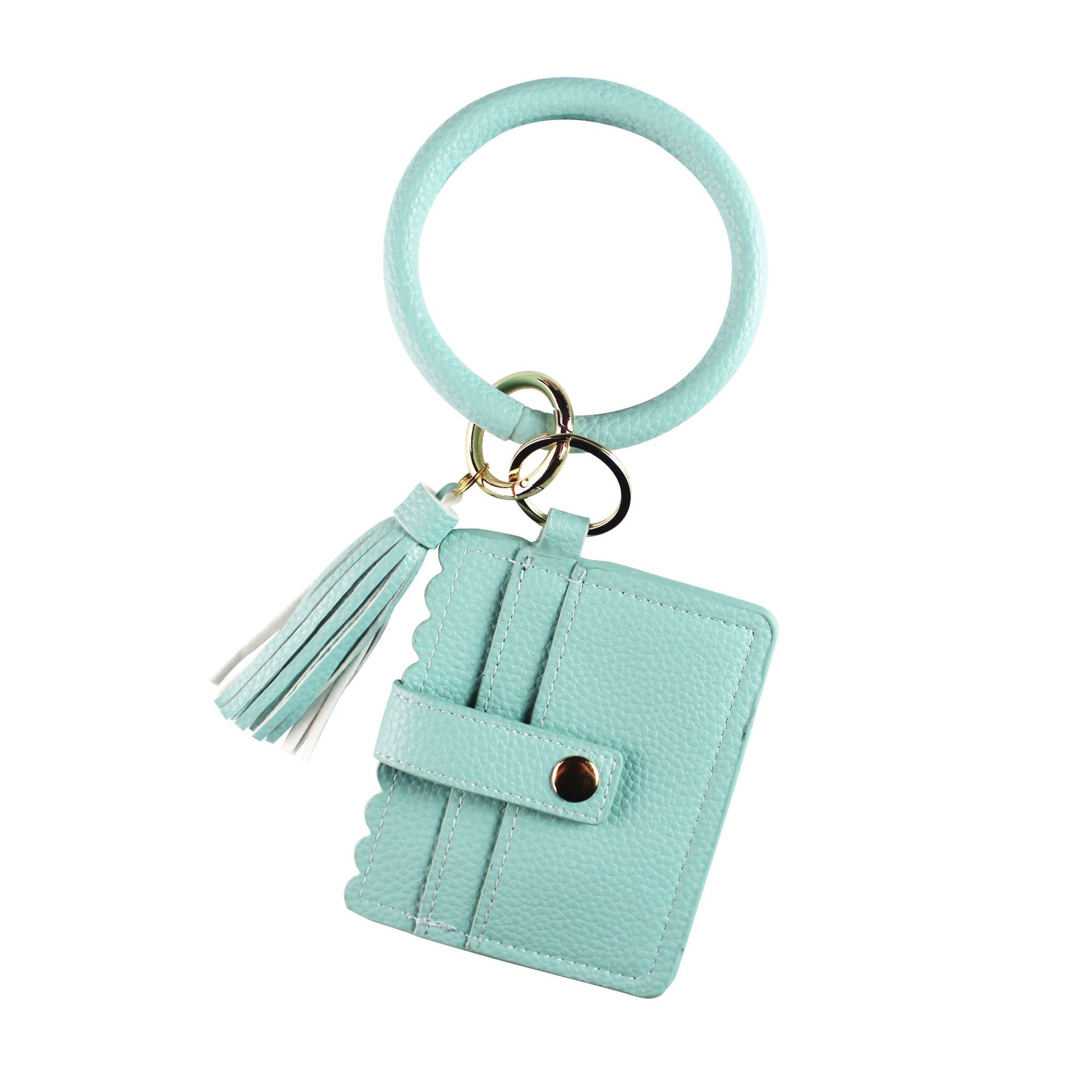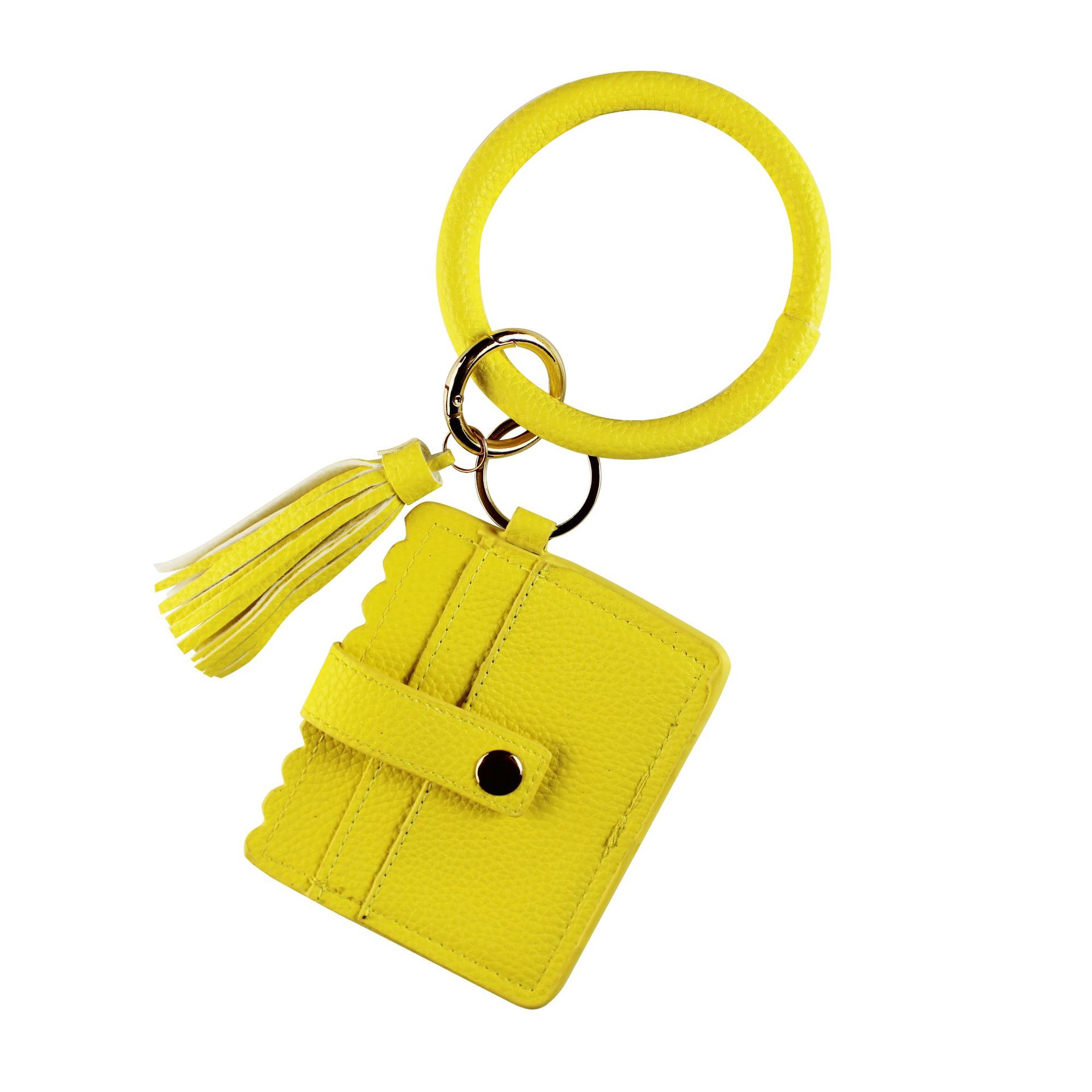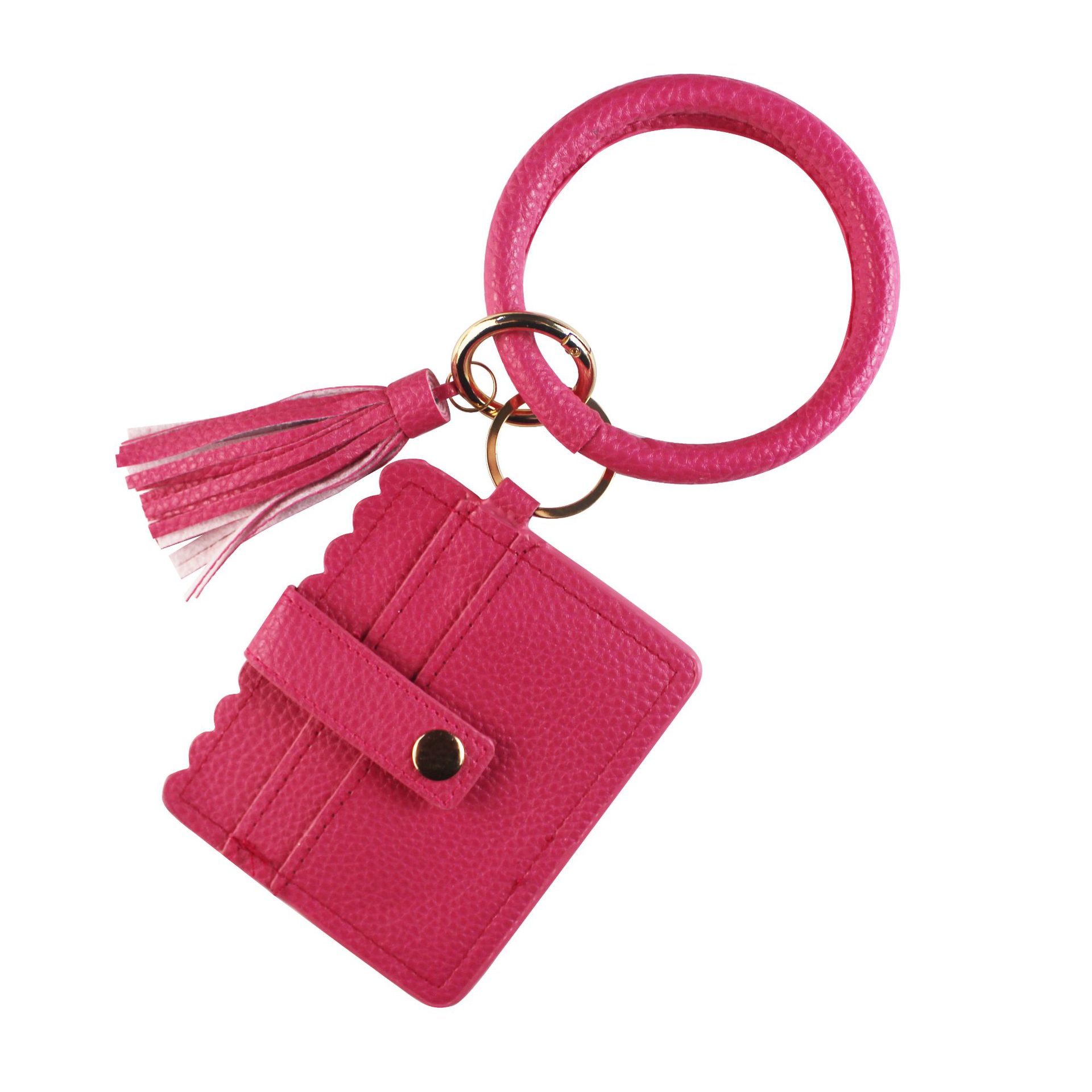 油边手链钱包荔枝纹纯色皮革手环流苏手腕汽车钥匙扣手镯花边卡包