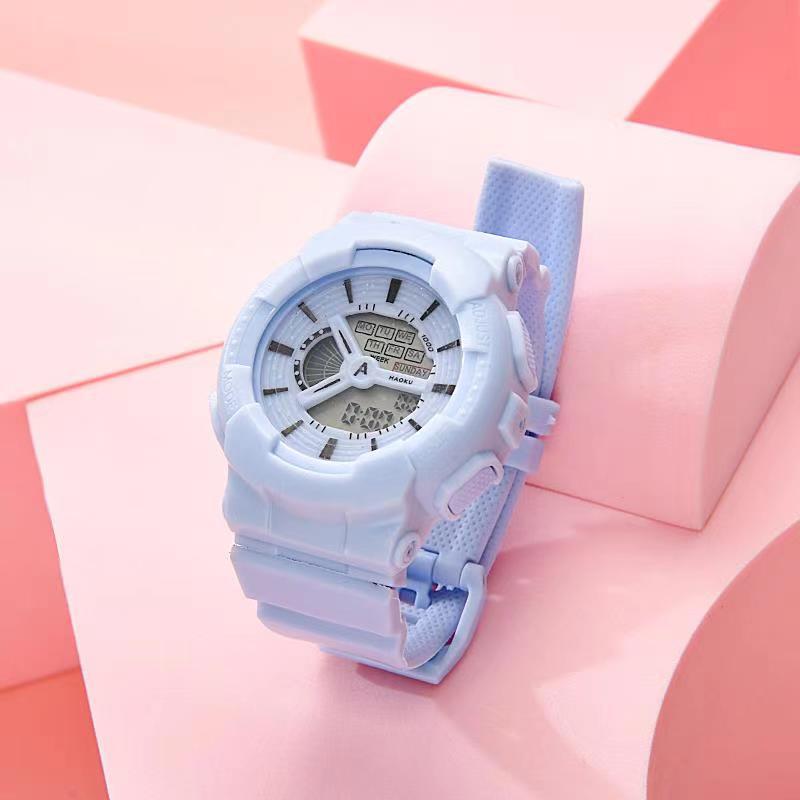 时光煮雨电子表 马卡龙色INS风多功能电子腕表 时尚防水电子显示