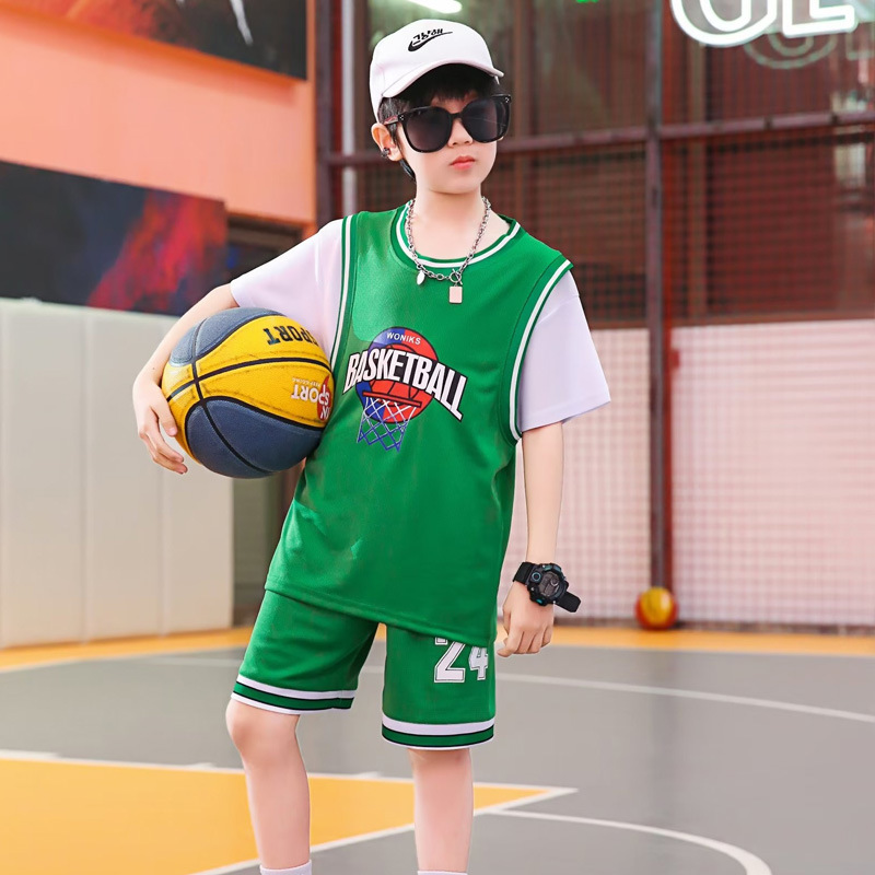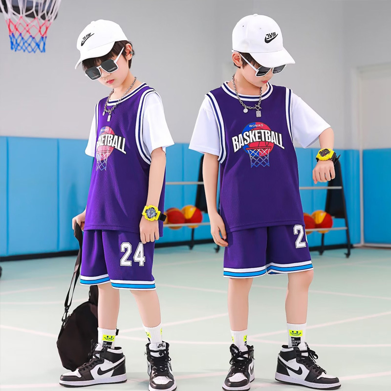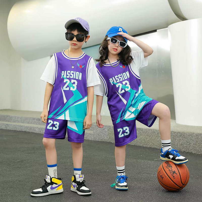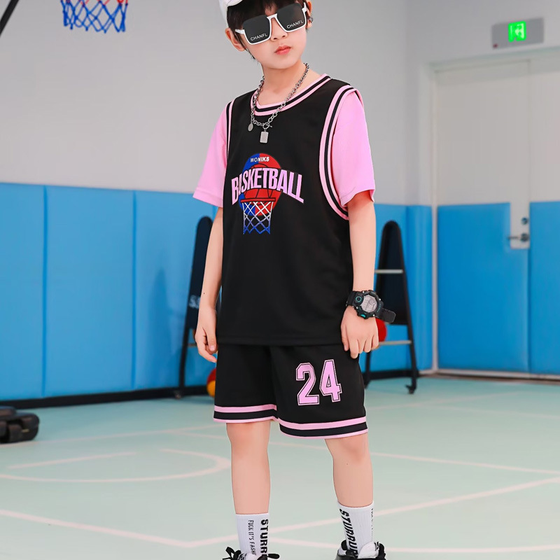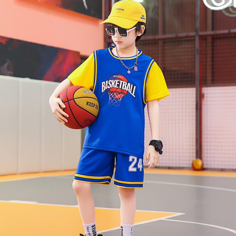 儿童篮球服夏季男女童球服假两件球衣套装短袖运动训练表演篮球衣