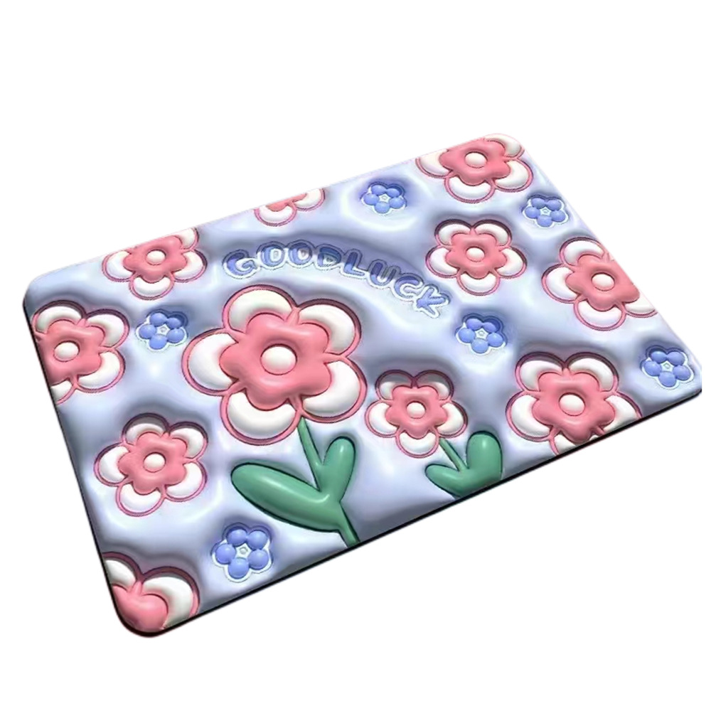 红日3D立体地垫软硅藻泥膨胀花朵浴室地垫沥水垫科技布吸水垫