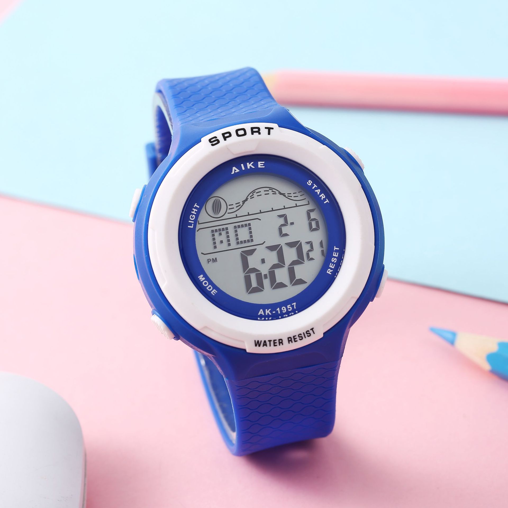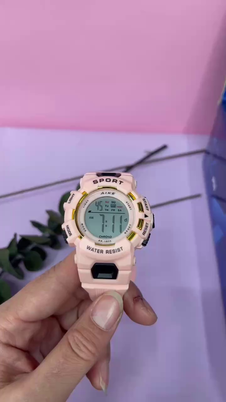 AIKE1957糖果色简约防水电子表学生运动防水表男女韩版大数显手表