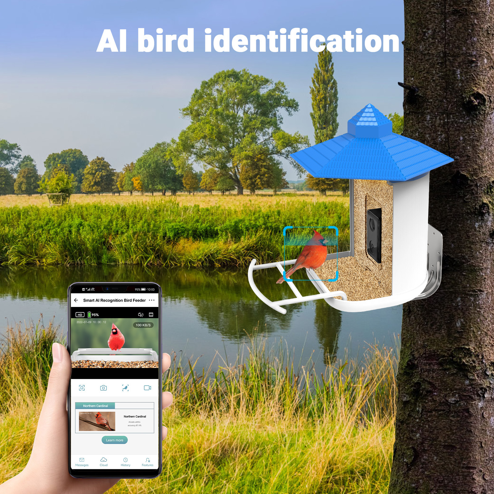 亚马逊爆款智能野生喂鸟器130度广角1080P高清摄像头独立app控制
