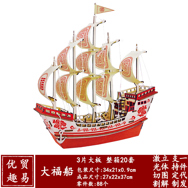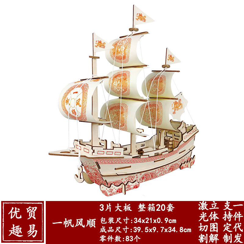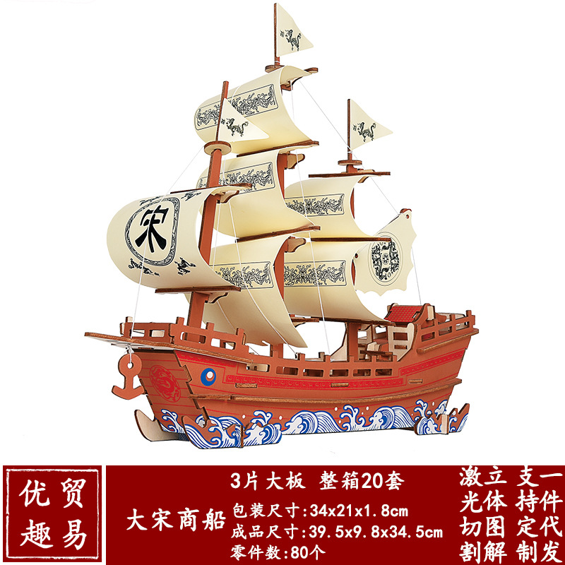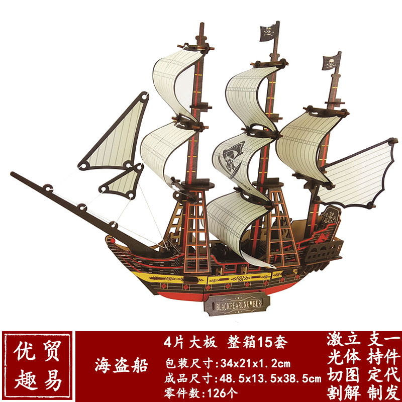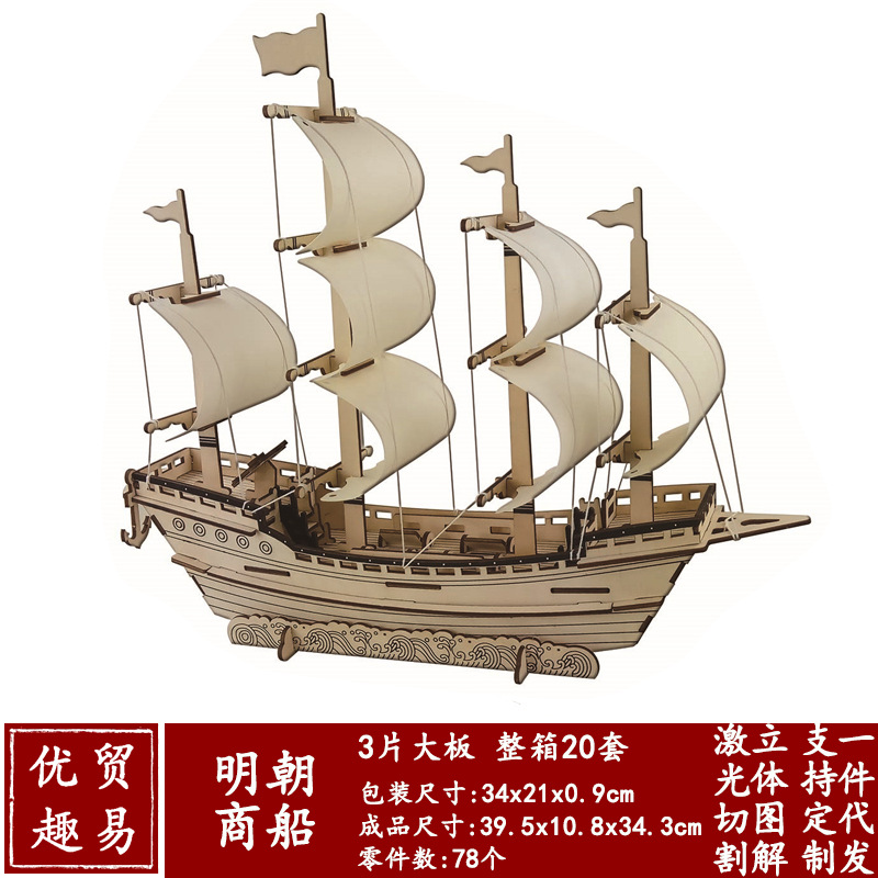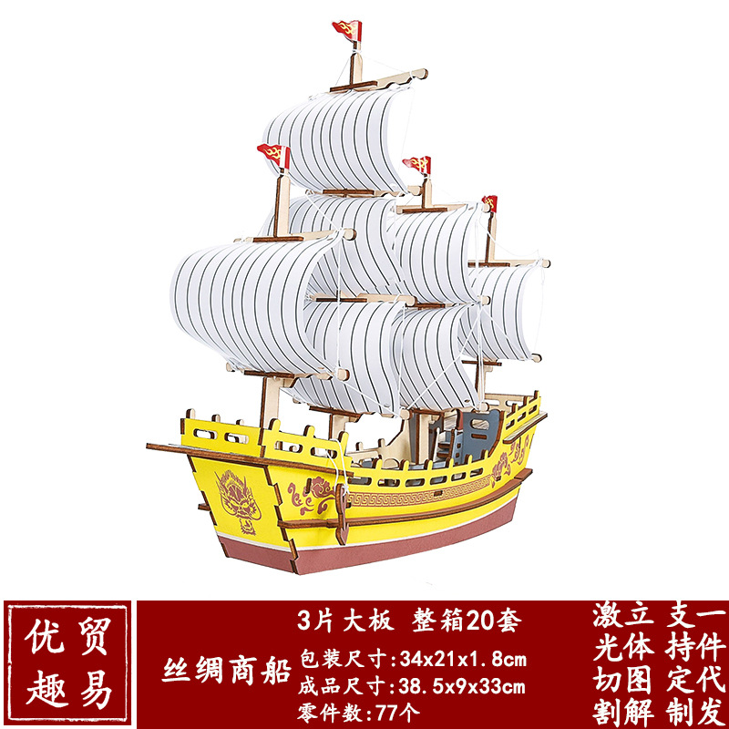 diy木制仿真古帆船模型木质手工拼装丝绸商船成人3d立体拼图玩具